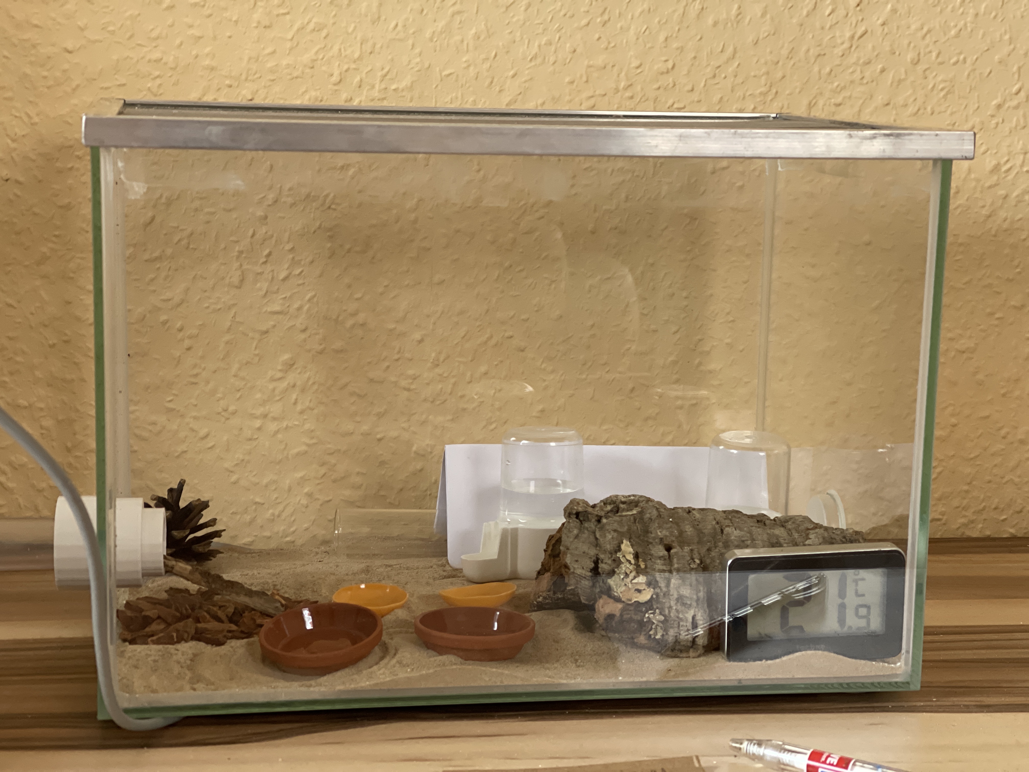 sehen Sie die erste große Erkundungstour. Kaum habe ich das Heizkabel anders platziert und die Arena hat gemütliche 23 Grad klettert eine Arbeiterin quer durch die Arena