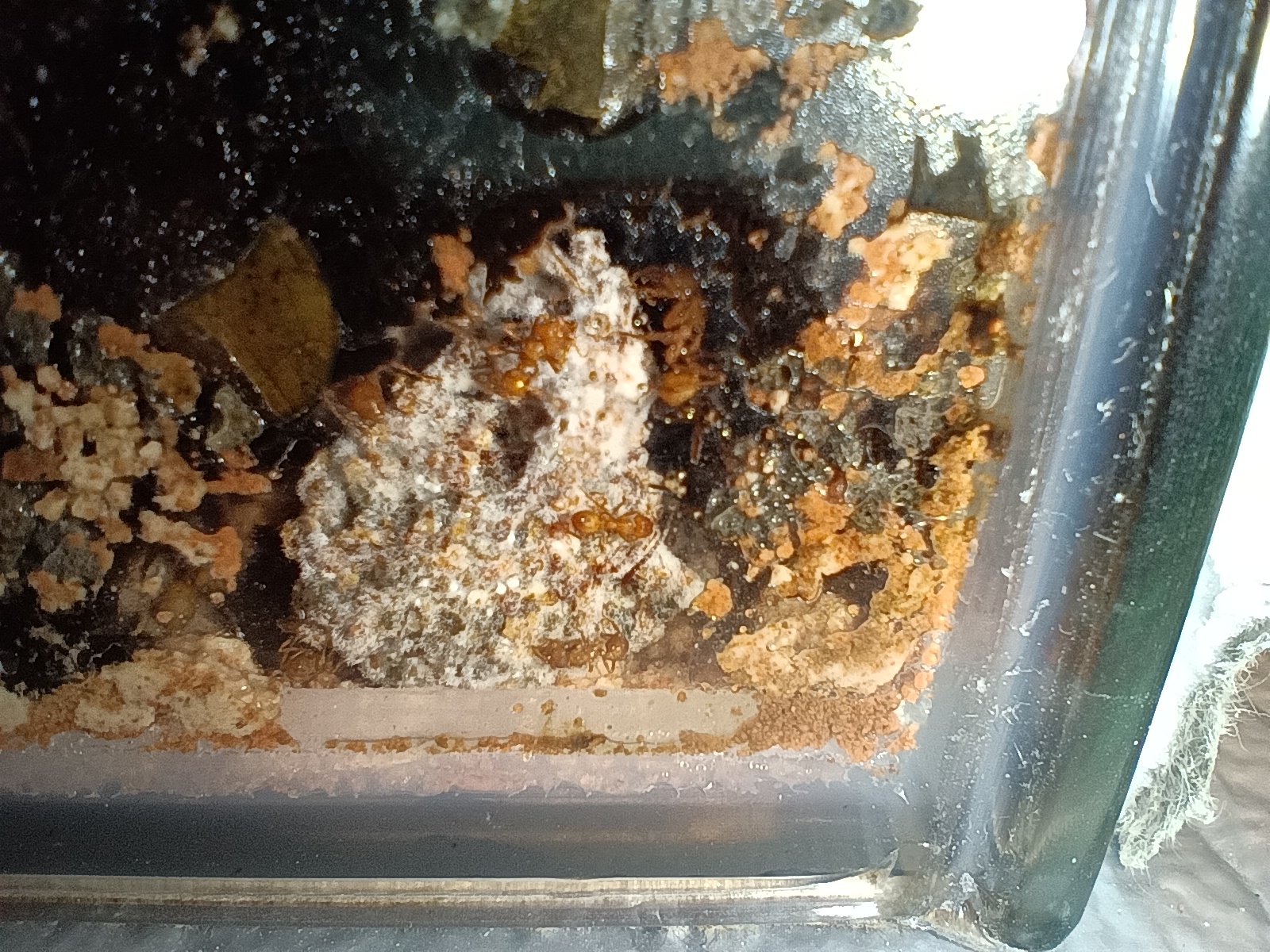 Die Kolonie entwickelt sich super , das schneide verhalten ist Toll, allerdings aktuell er in den Abend/Nachtstunden also sehe ich es aktuell noch sehr selten , allerdings ist jetzt ein der Kammern an der Scheibe scheinbar zur Brutkammer geworden was mich natĂŒrlich riesig erfreut da ich jetzt weiß das alles noch gut lĂ€uft und neue Brut dazu kommt.