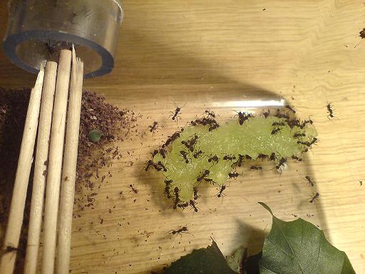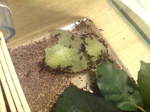 - joa sonst so machen die Ameisen nicht viel nen bissl Buddeln, Schneiden und Pilzpflege so das übliche, die Kolonie ist ca.150 Frau stark (grob geschätzt ich kann halt nicht in den Pilz gucken wo sie hauptsächlich sind) und gestorben sind bisher nur so ca. 10 Pygmäen (und so 5-6 hab ich leider beim Umzug zerquetscht)