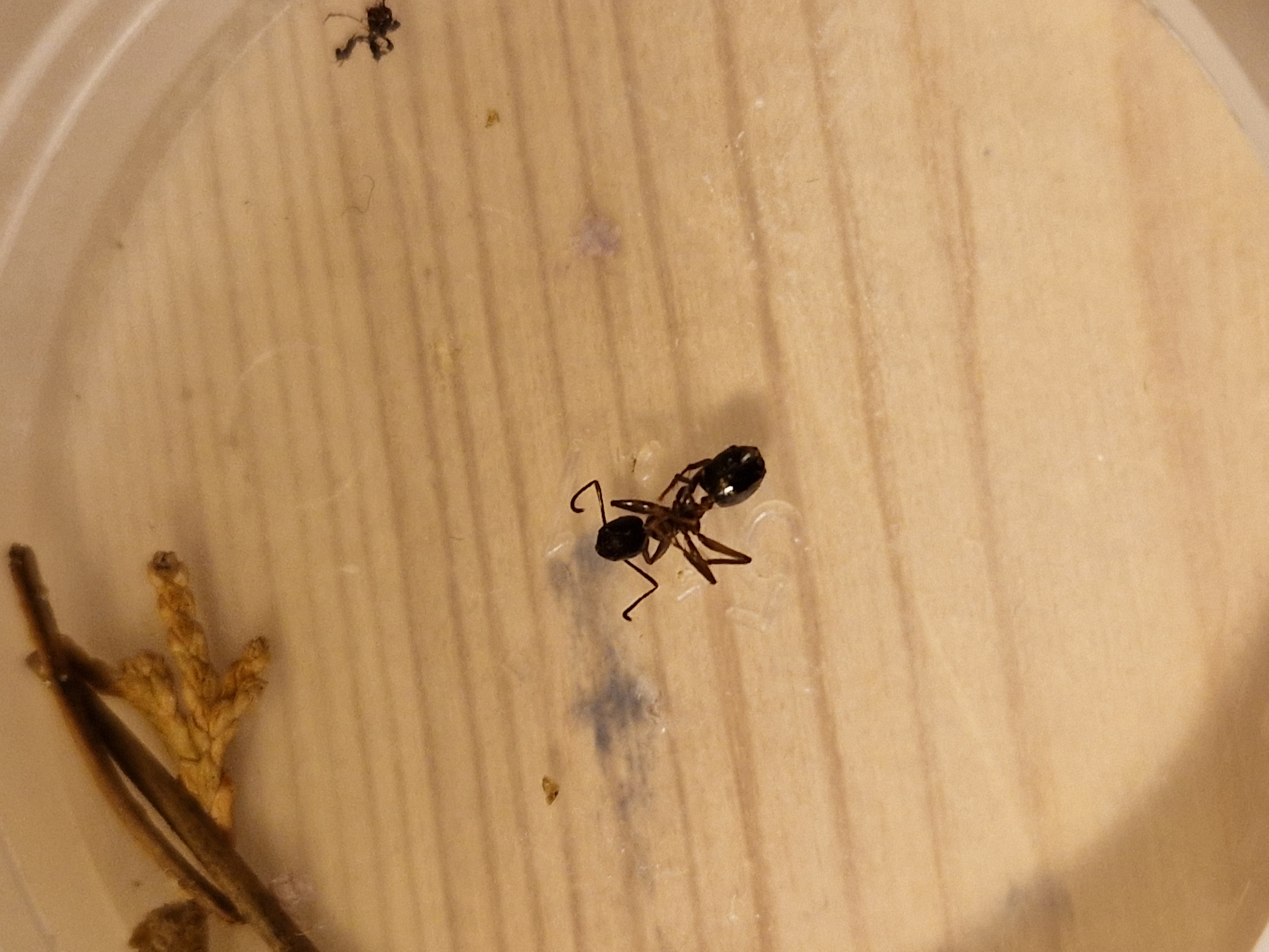 Hab heute leider eine tote ameise zu beklagen. Und hab dann auch gleich mal ins Nest geguckt. Ich hoffe sie können dieses Jahr etwas zulegen. Brut ist ziemlich viel vorhanden und meine Heimchen die ich in 2 Tage Abstand reinlege nehmen sie auch immer sofort an.
