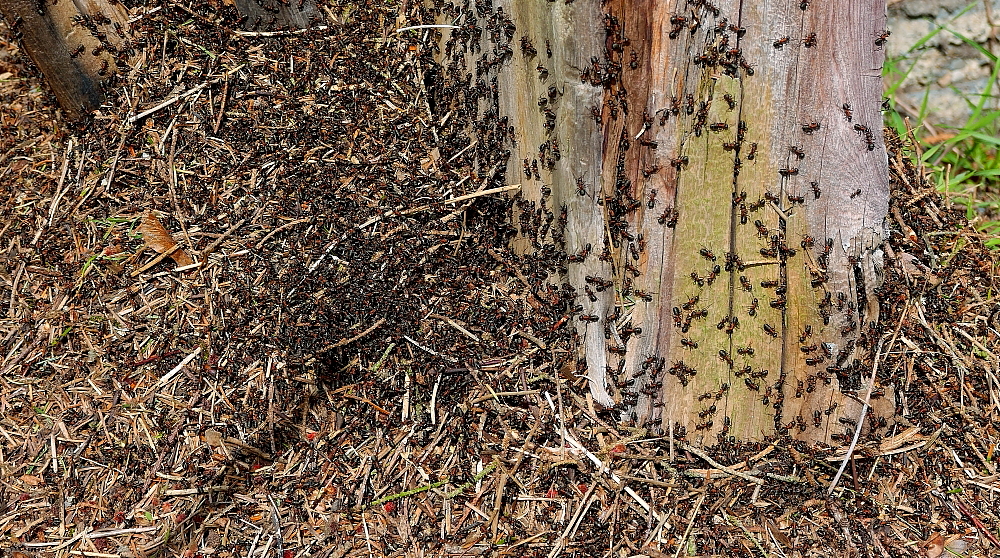 Verdeutlicht durch unzählige, emsige Ameisen auf und im Umfeld ihres Nesthaufens.