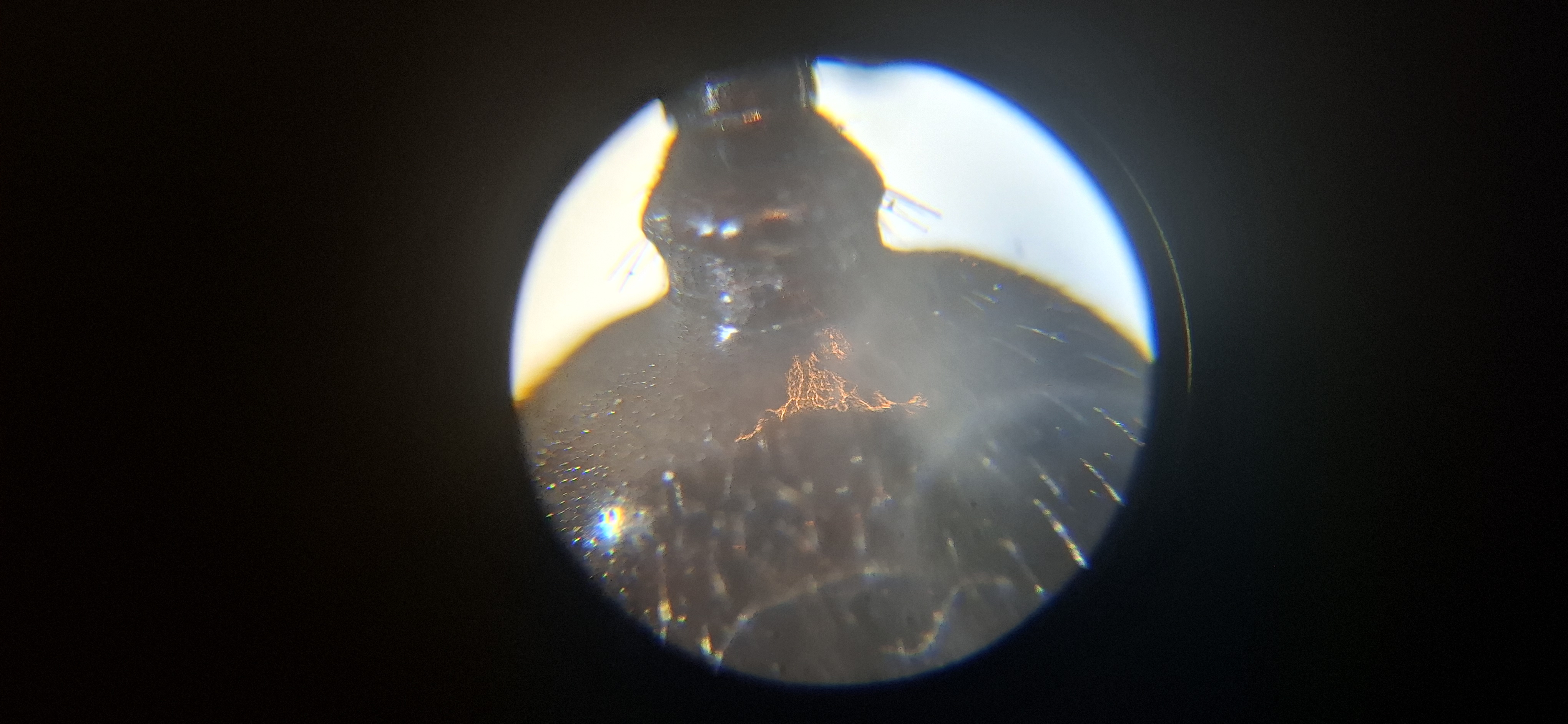 Wie oben schon angesprochen, kann es ein paar Fusel haben. Diese lassen sich leider nicht vermeiden. Das hier ist jetzt ein Kopf einer Messor barbarus Media Arbeiterin, die etwas im Kontrast zur obigen