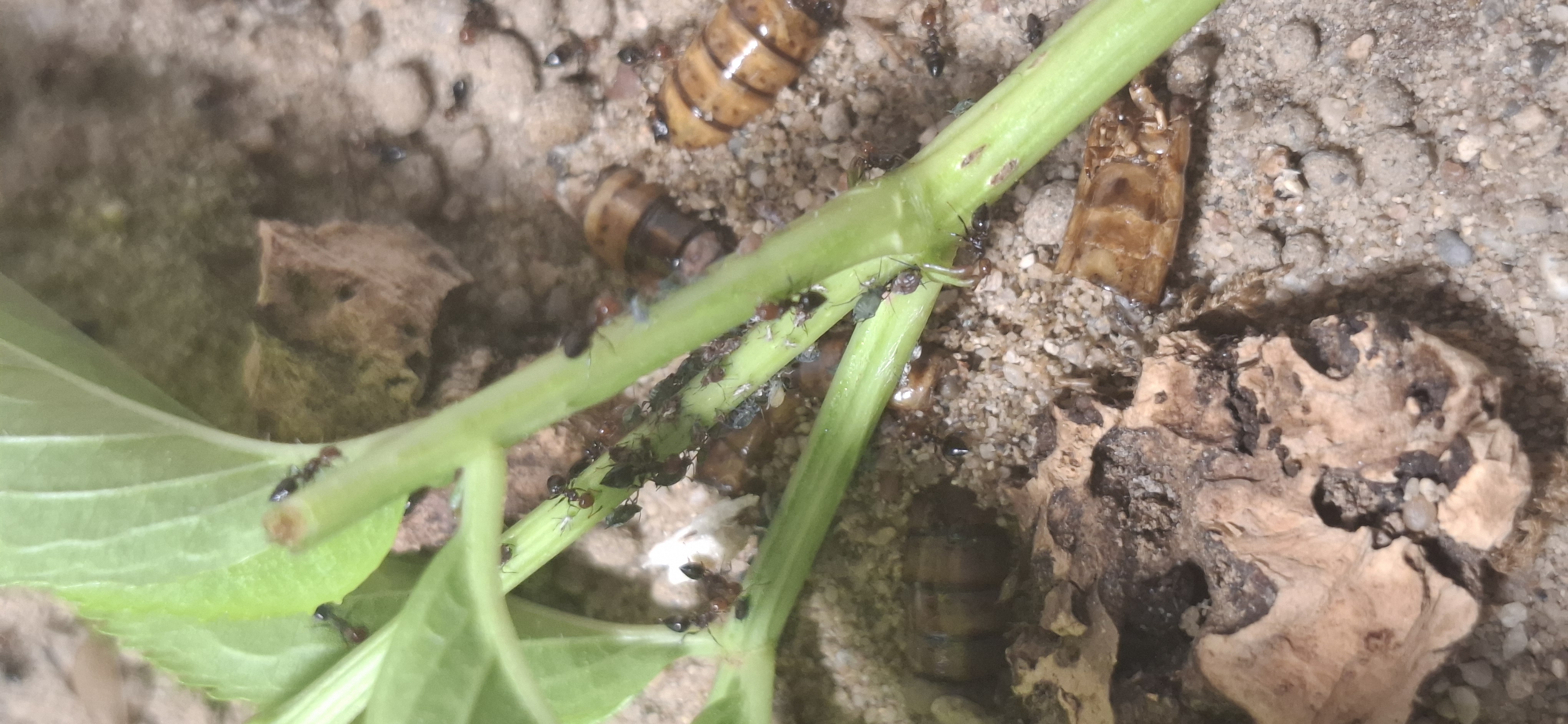 Jeden Sommer wenn die Blattläuse sich beginnen zu vermehren, gebe ich meinen Kolonien einen kleinen Stängel, mit ihnen drauf.