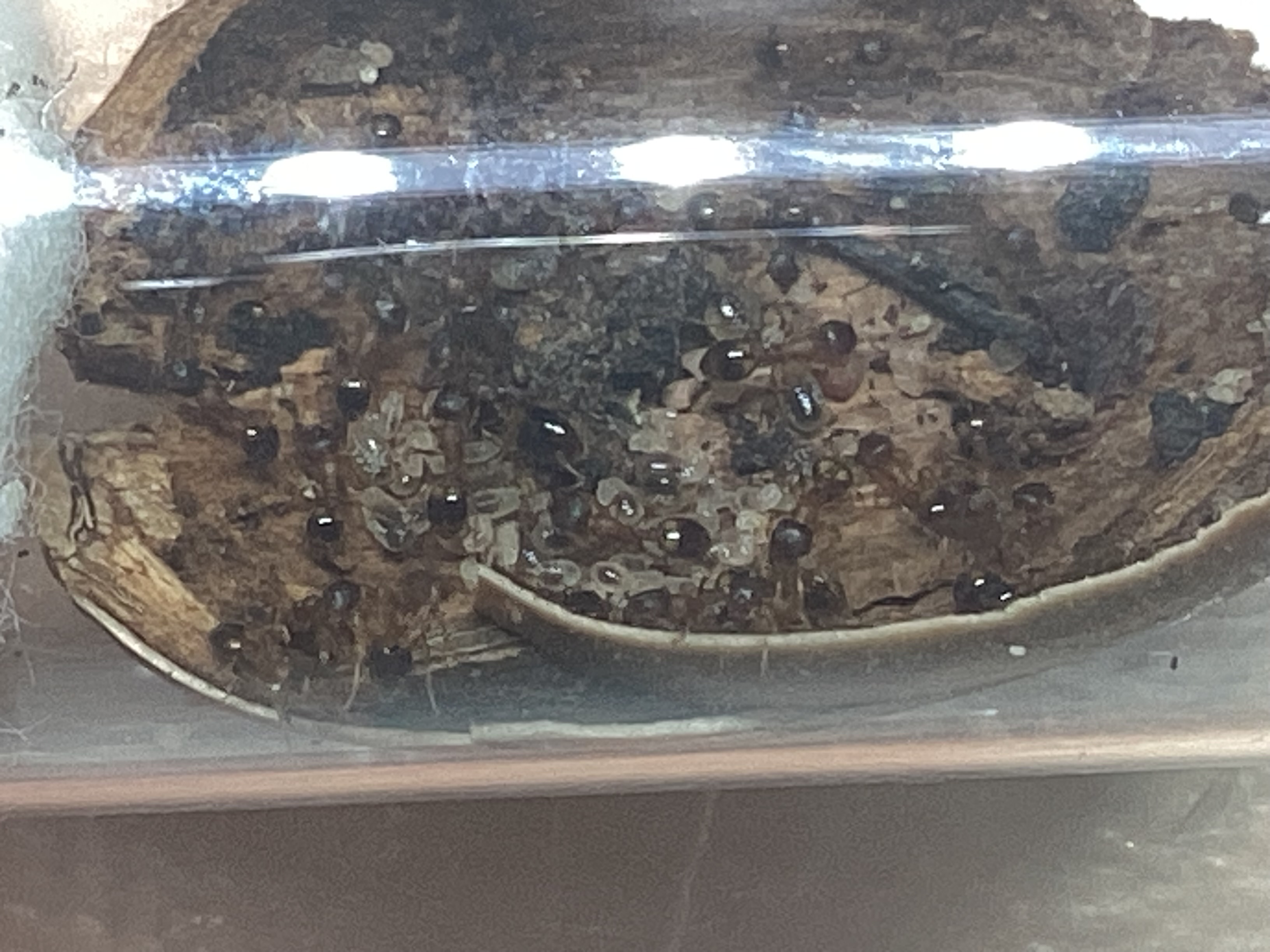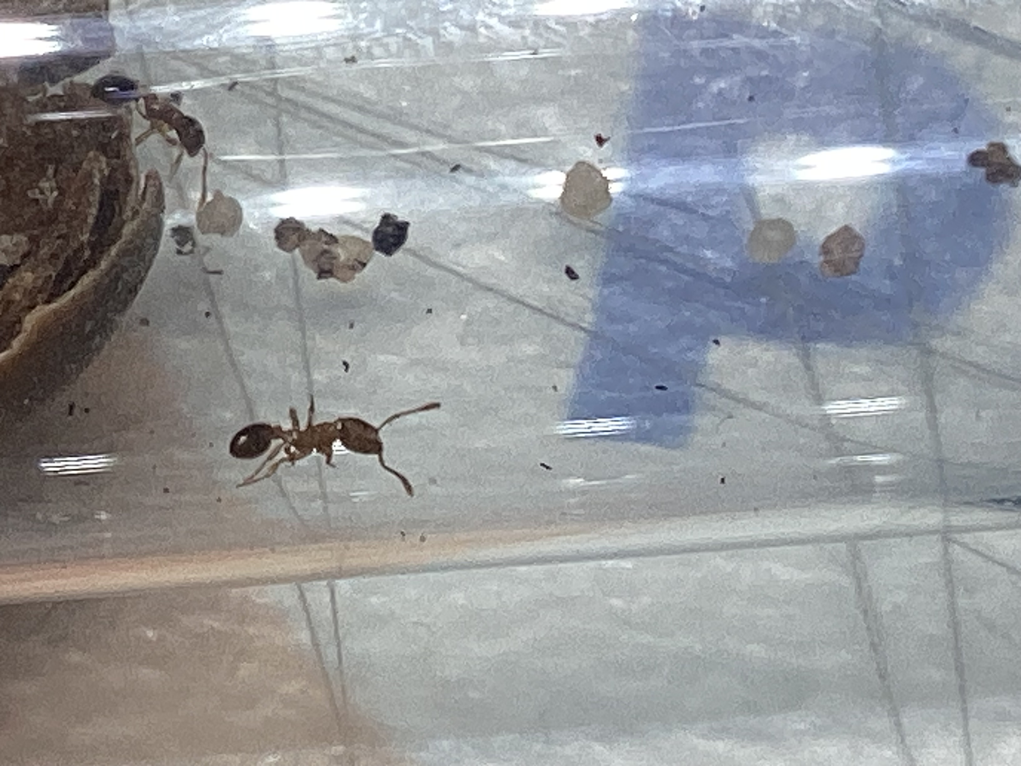 Da aber klar eineKönigin und gut Brut in Form von Larven vorhanden sind, müsste es der Kolonie gut gehen wenn du sie ab und zu mit Kohlenhydraten und Proteinen fütterst. Je nachdem, wo du deine Ameisen gefunden hast, würde ich auch die Haltungsbedingungen anpassen. Beispiel: Wenn sie in einer feuchten Ecke einer Hecke waren, würde ich noch etwas Moos zum halten der Feuchtigkeit in ihr Becken tuen. Sie wählen ja den Ort der ihnen am meisten passt, deswegen sollte es ihnen auch passen wenn du diesen Ort rekonstruierst.