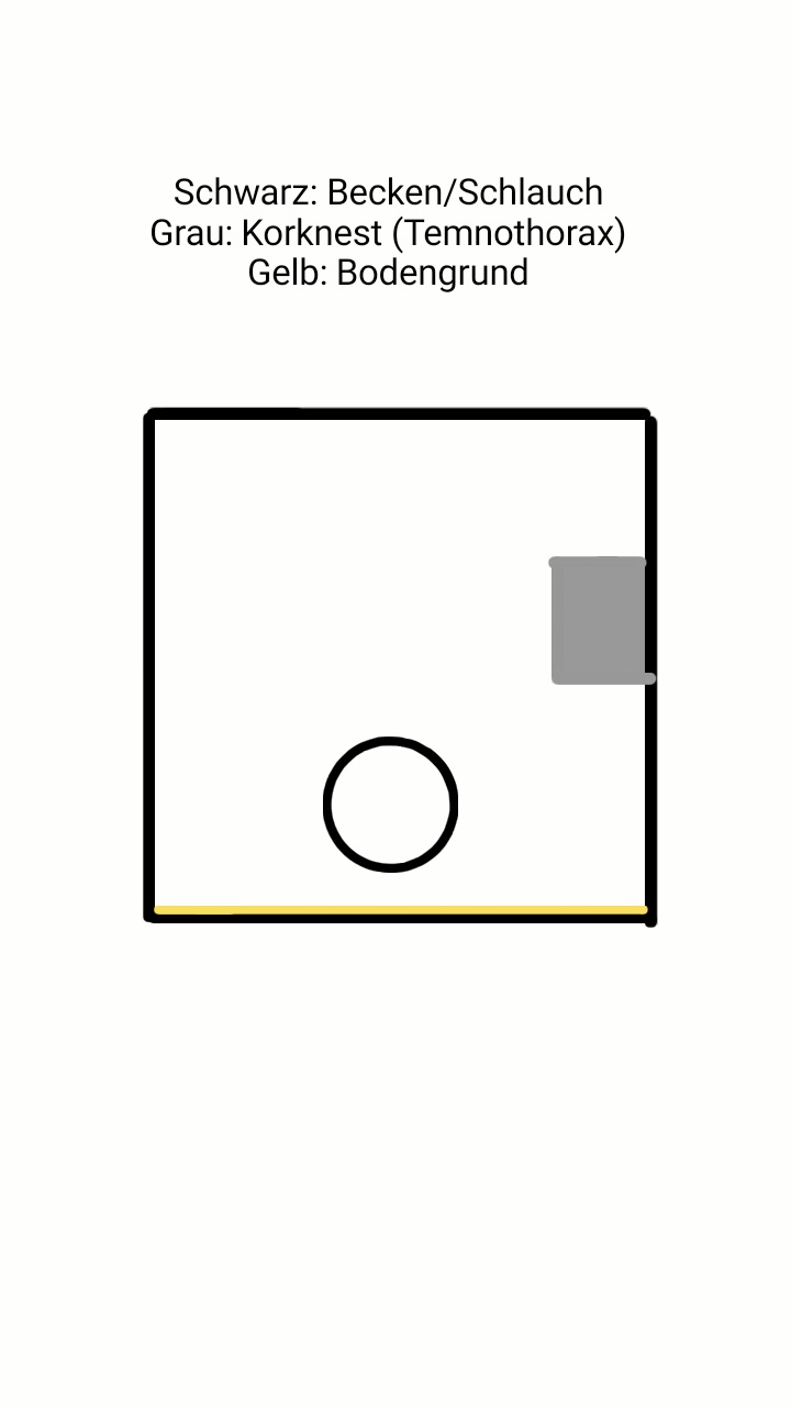 Dafür hatte ich ein kleines Nest (Walnussschale etc., siehe Skizze 1, 2 und 4) und ein Korknest (siehe Skizze 1, 3 und 4) geplant. Das Korknest soll über einen Ast/Stock/ähnliches (Siehe Skizze 1, 3 und 4) erreichbar sein (natürlich könnten sie auch an der Wand des Beckens laufen, doch finde ich die beschriebene Variante dekorativer und gewissermaßen natürlicher).