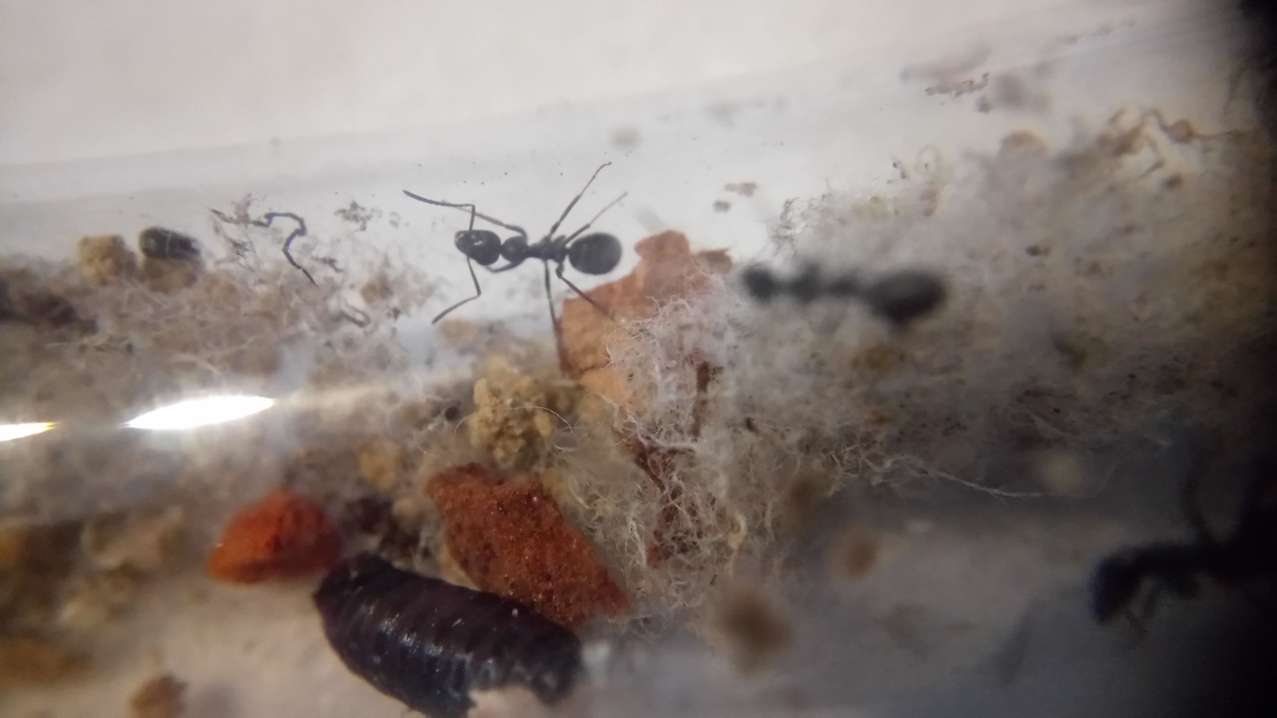 Das Reagenzglas ist relativ voll mit Substrat, Watte, Futterresten und beinhaltet einige Staubläuse. Ich werde vor der