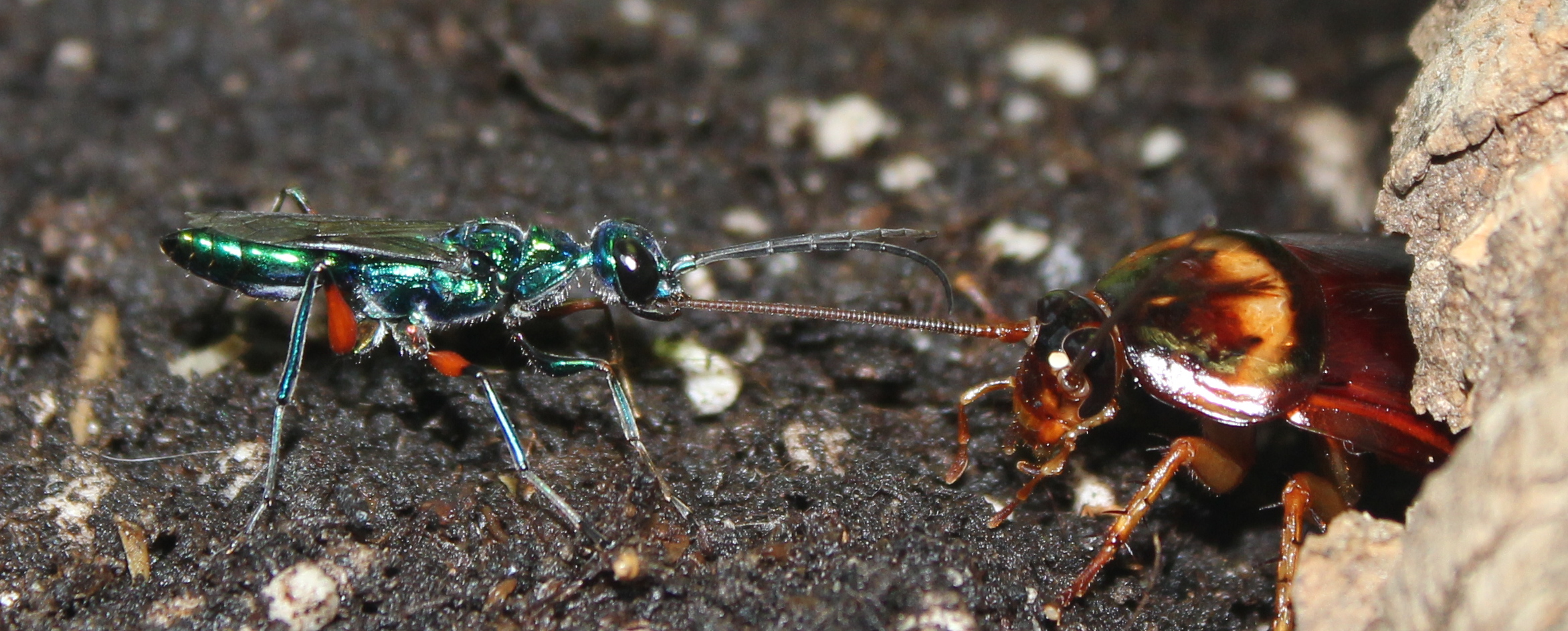 Die Wespen sind bei mir in einem gerĂ€umigen natĂŒrlich eingerichtetem Terraium untergebracht. Was sie bei mir am liebsten machen ist die Schaben oben in die Bromelie zu stopfen.