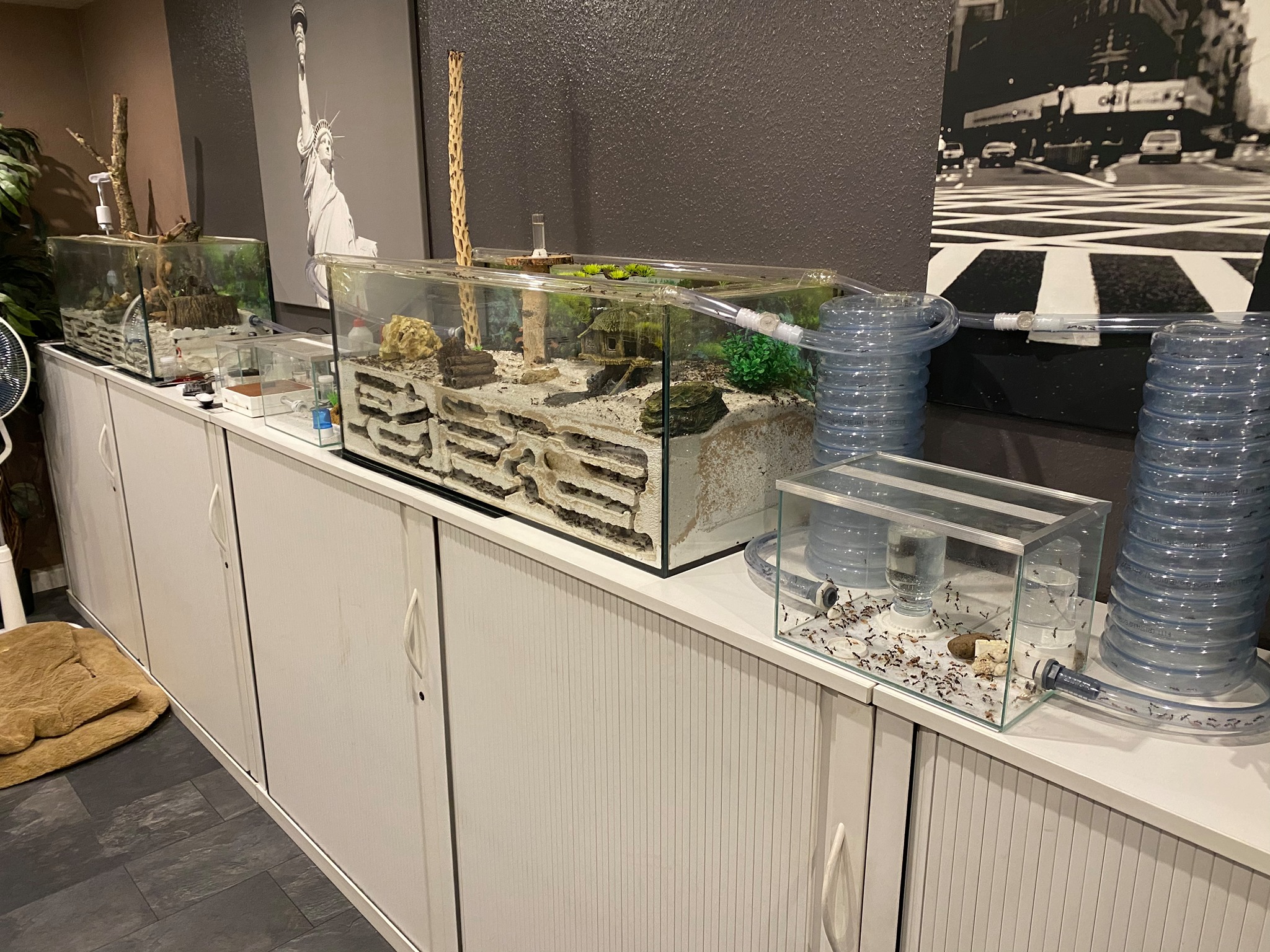 - Möglichst groß sollten die Ameisen sein. Hauptsächlich weil man diese besser beobachten kann und weil ich eine größere Arena eingeplant hätte (120 Becken?). Alternativ (oder zusätzlich) können auch mehrere kleine Becken gestellt werden. Als ehemaliger Aquarianer bin ich es gewohnt, dass das Hobby halt etwas Platz braucht.