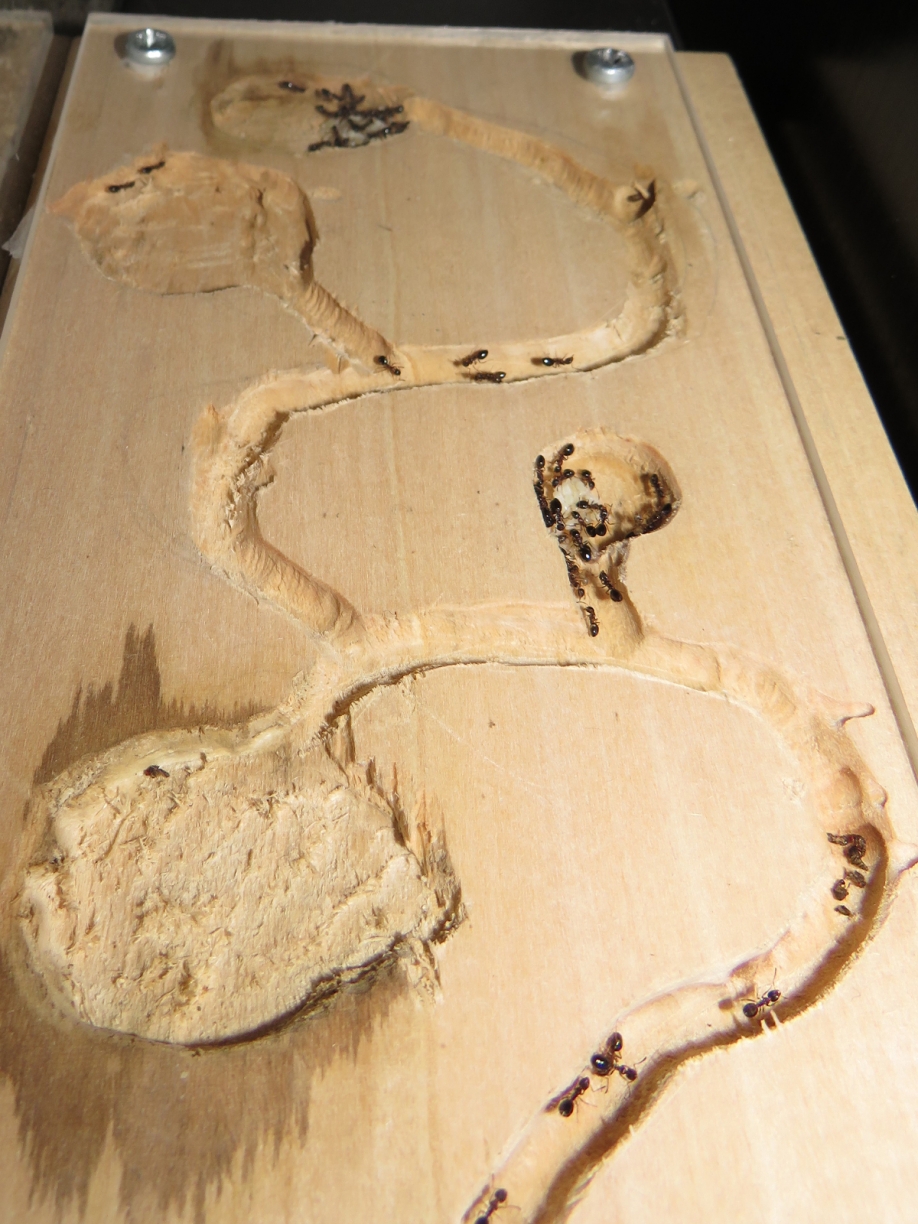 dass Ameisen unbenutzte Kammern als Müllhalde benutzen, sodass das Nest sehr schnell zu schimmeln beginnt.
