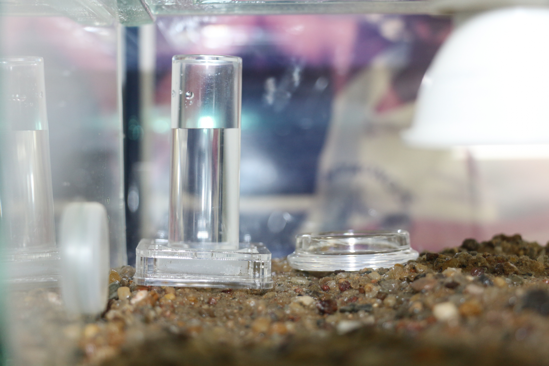 Links die Wassertränke rechts die Tränke für das Honigwasser.