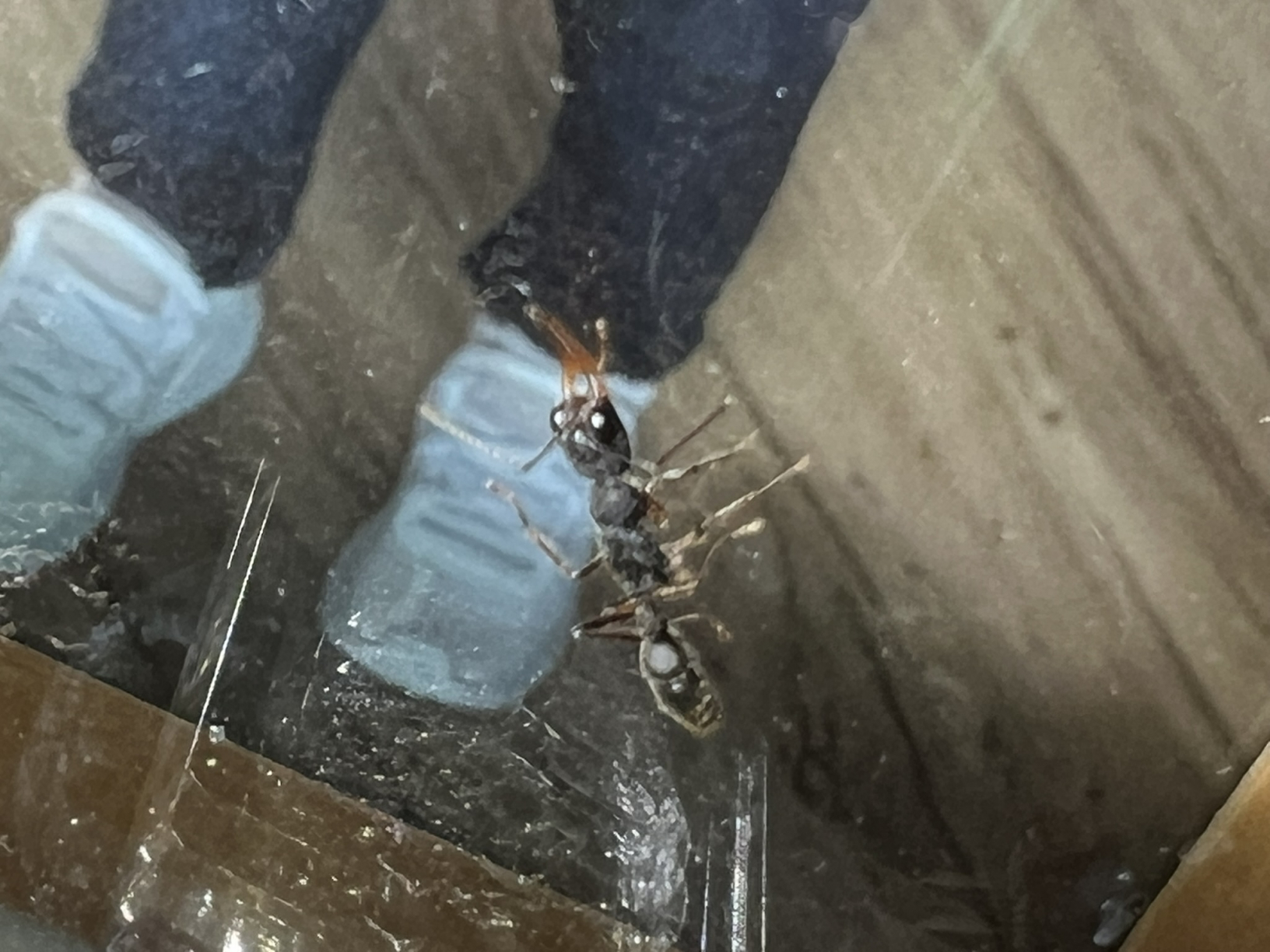 Arbeiterin im Detail die an der Scheibe hoch läuft.