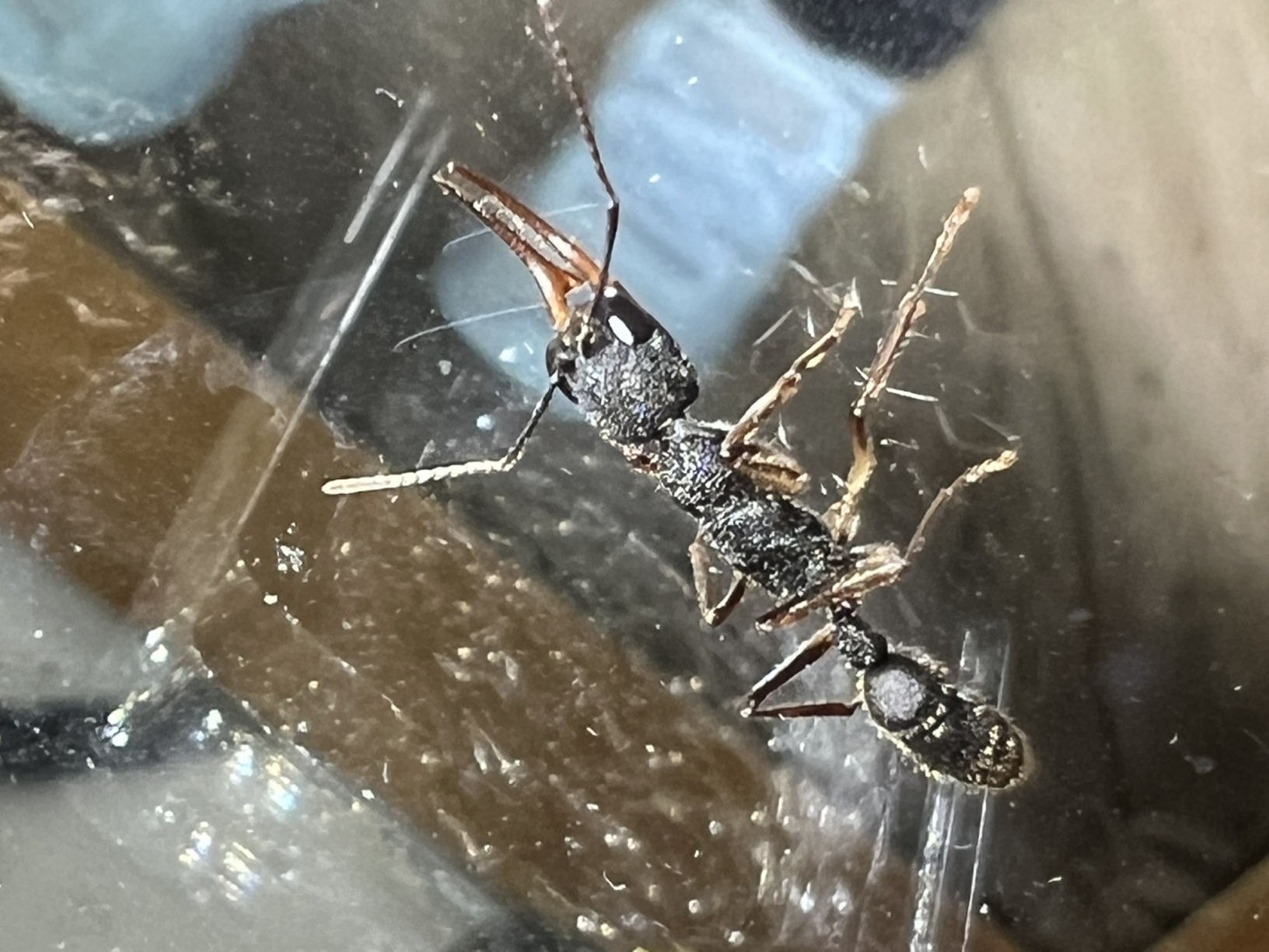 Arbeiterin im Detail die an der Scheibe hoch läuft.