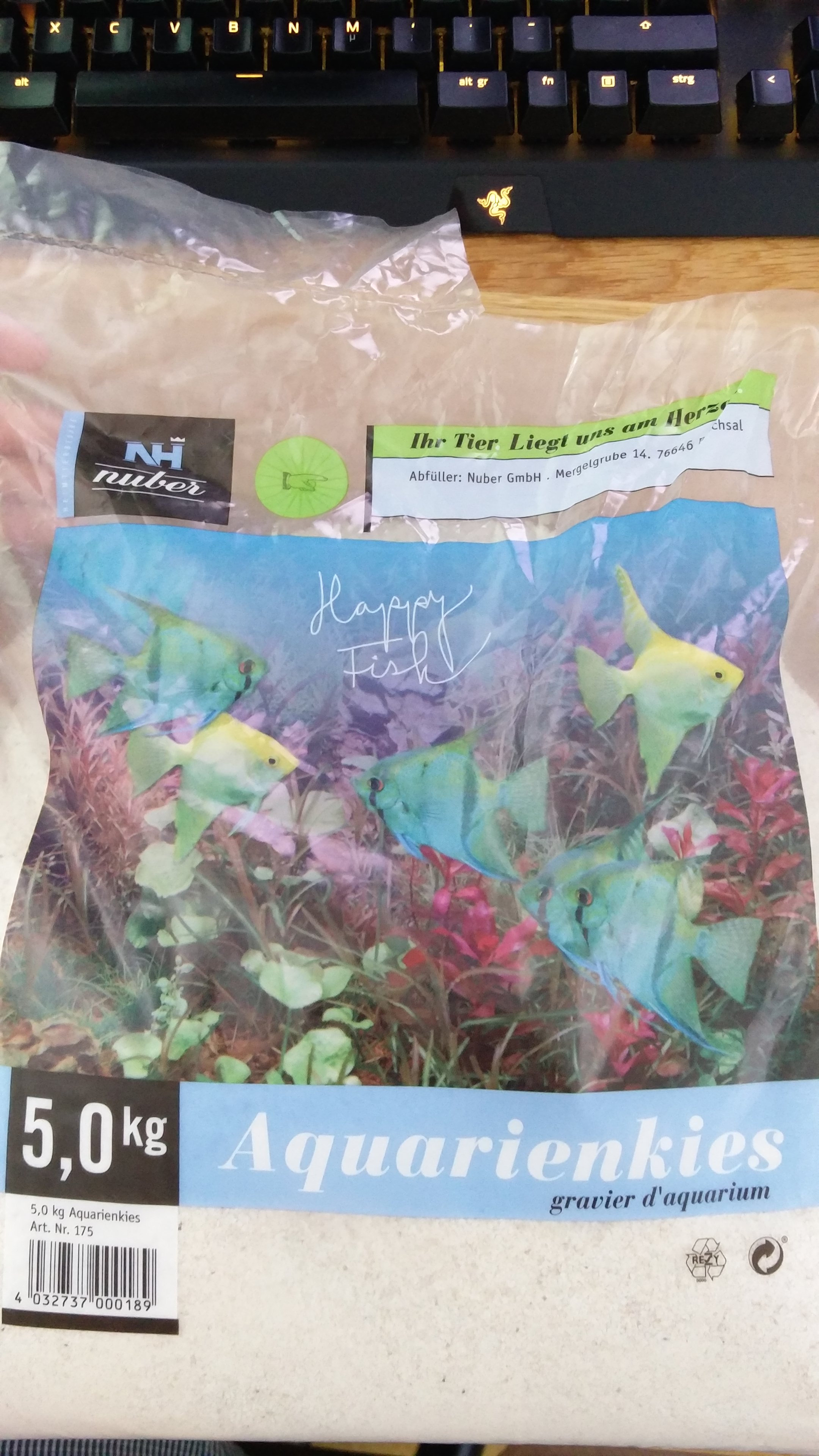 Ich habe mir gerade nochmal die Packung des Aquarienkies genauer angesehen. Auf der RĂŒckseite steht folgendes: