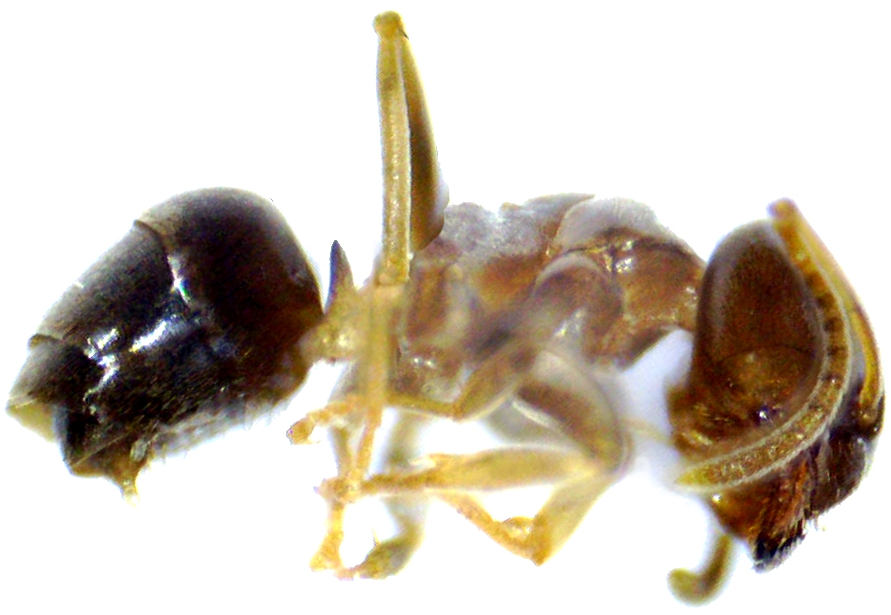 Nun würde ich gerne wissen, um welche Spezies es sich handelt, hoffentlich sind die Fotos für eine Bestimmung geeignet (die Farben sind nicht ganz original, in Realität ist der Hinterkürper schwarz, der Körper bräunlich). Die größere der beiden Arbeiterinnen (auf dem zweiten Bild) ist 3 mm lang.