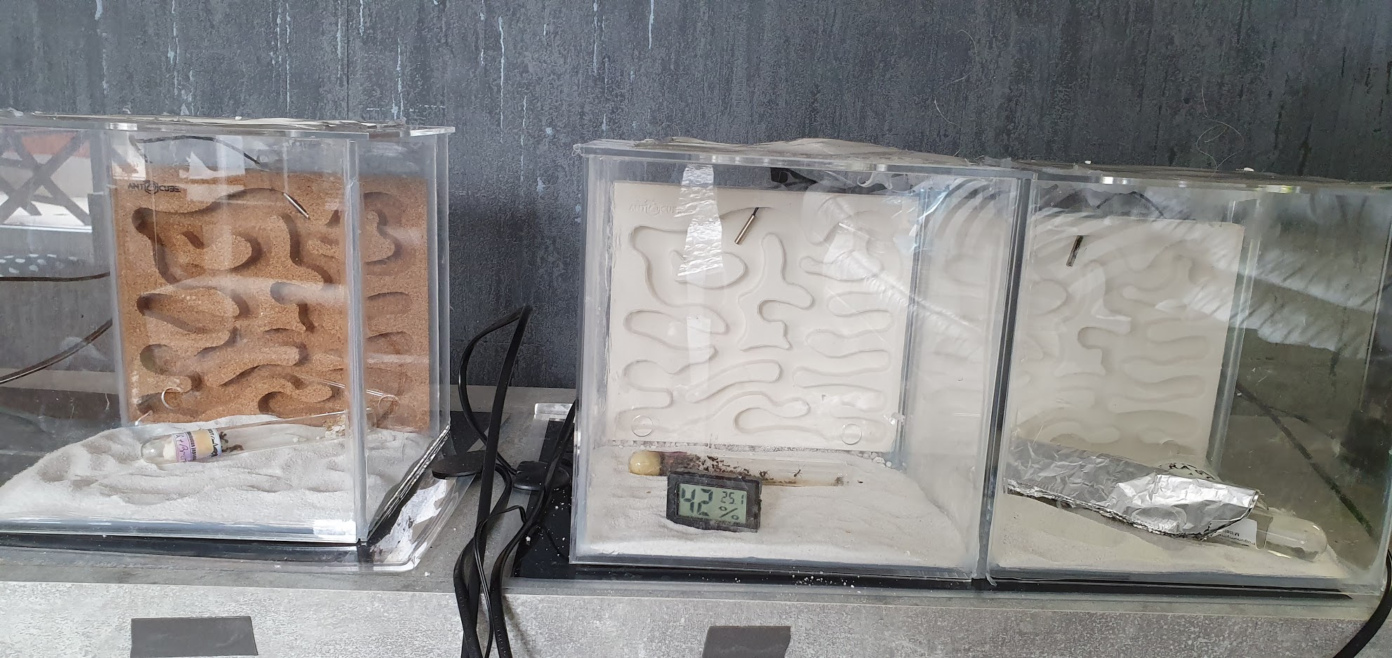 ) ,jedoch da die Kolonien so klein sind (C.japonicus 11w, C.nicobarensis 50w,Pogonomyrmex barbatus 1w) leben sie noch in den RGs und werden von unten mittels einer groĂźen 20W Heizmatte beheizt (temperatur ist auch reguliert) bis sie freiwillig aus ihrem RG ausziehen wollen