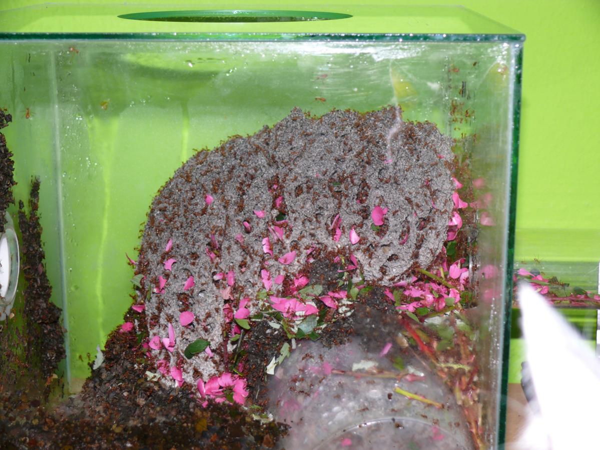 Hallo chrissi: Das mit dem Kleberand kenne ich auch, gefällt mir persönlich aber optisch nicht. Geht bestimmt auch bei einigen Arten gut, nur bei Blattschneider ist das dauerhaft keine Möglichkeit. Am Ende sieht dass dann immer so aus wie auf dem ersten hochgeladenen Bild. Die anderen beiden zeigen unsere Atta cephalotes.