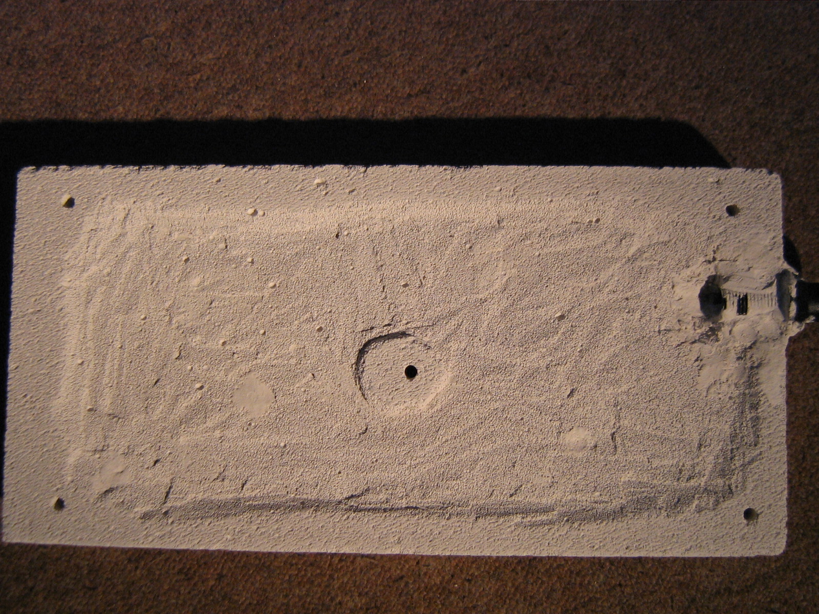 Bild 7: Gipsversiegelung der Ritzen zwischen Plexiglas und Porenbeton
