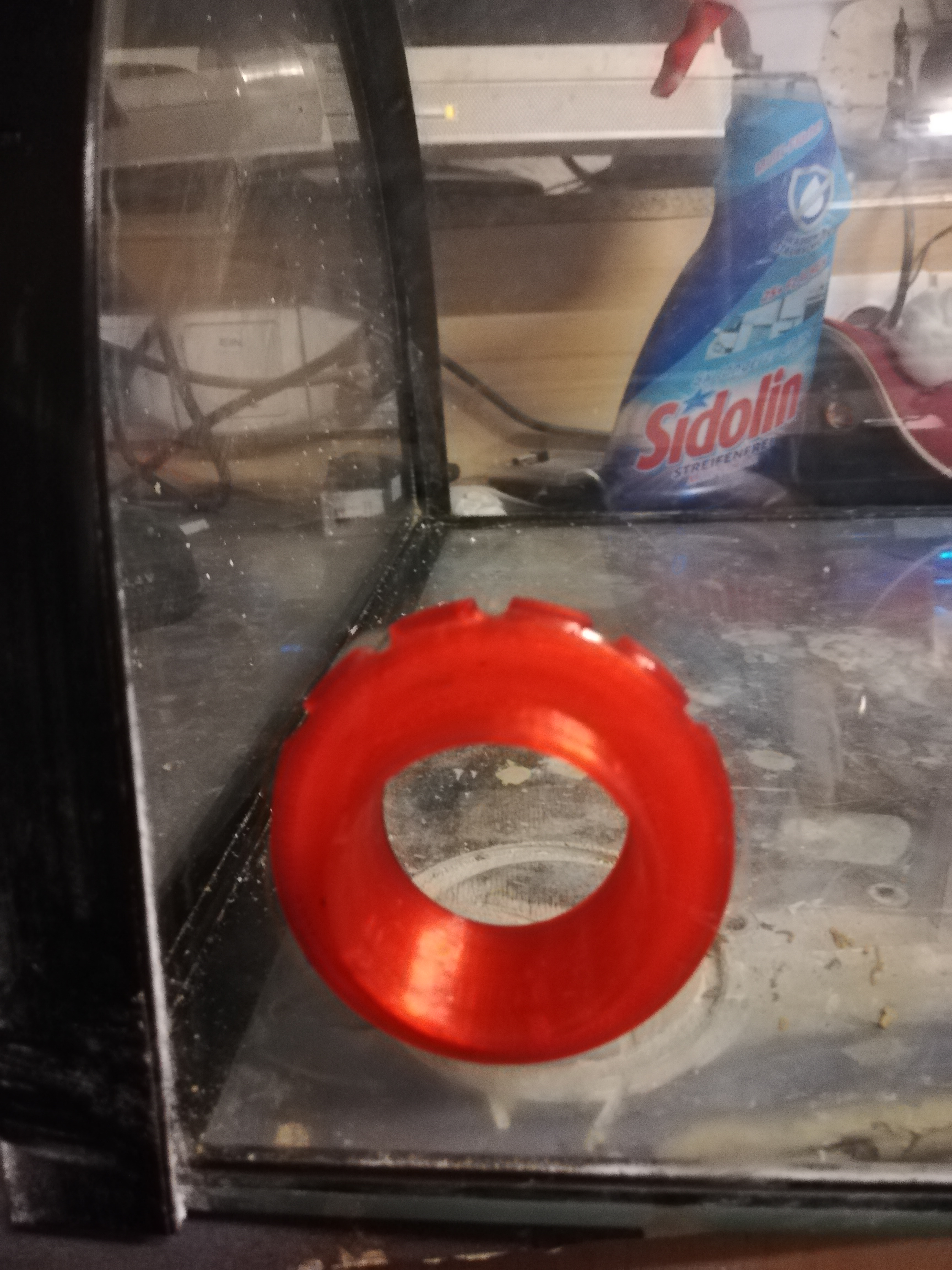 Die Planung steht, der Drucker läuft jetzt jetzt im Dauerbetrieb(sofern ich da bin zum wieder neu starten) die Freundin weiß jetzt definitiv, dass es kommen wird ;) Sie hat ihren bissigen Kommentar schon abgelassen, das bedeutet im Normalfall war nicht abgemacht, aber mach doch und das tue ich^^ Das halbrunde Becken steht schon gebohrt und gereinigt mit dem Rohradapter an dem Platz wo es hin soll. Auch der Müllplatz (schade um den Nanocube^^) steht schon fast an seinem Platz. Muss zwischendurch noch Blenden drucken für die anderen zwei Becken der Rufos und er Sanguineas damit es endgültig passt. Es fehlen knappe 2cm. Jetzt muss ich noch 4 Becken kaufen von dem eines zu Deckeln zerschnitten wird. Ich mag es nicht funktionierende Teile zu zerstören weil der eigentliche Beschaffungsweg (Glaserei) zu teuer wäre. Aber nun ja...ist halt so! Die anderen 3 Becken werden ja für den Pilz sein. Mich beschäftigte es wie ich den Ausbruchschutz an den einzelnen Becken gewährleiste. Dazu hatte ich Martin H. befragt und wir kamen überein, dass die Fragen besser hier her gehören, damit andere auch etwas davon hatten. Stimmt, ist natürlich besser. Ich Liste die Fragen mal nach Nummern auf dann muss man zum Beantworten nur schreiben "zu 3" oder so.