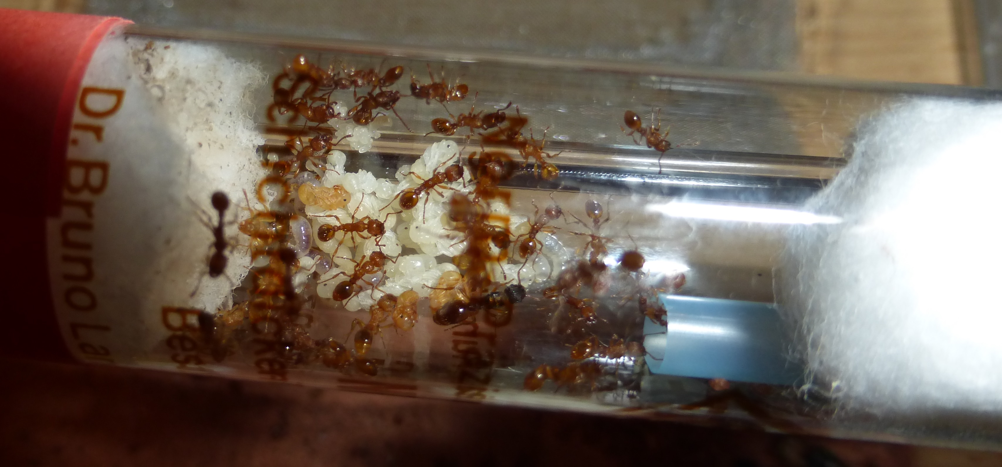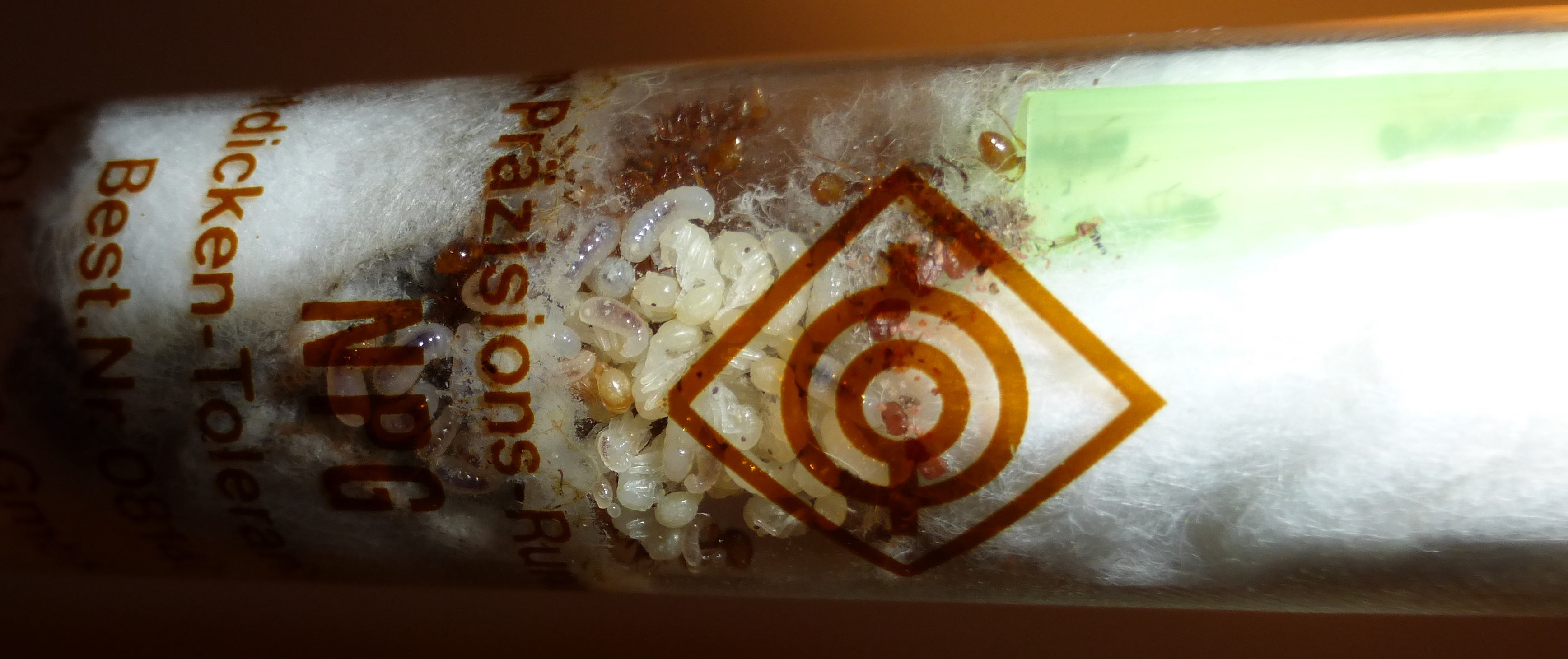 Und hier sind die Ameisen, in ihrem Reagenzglas.