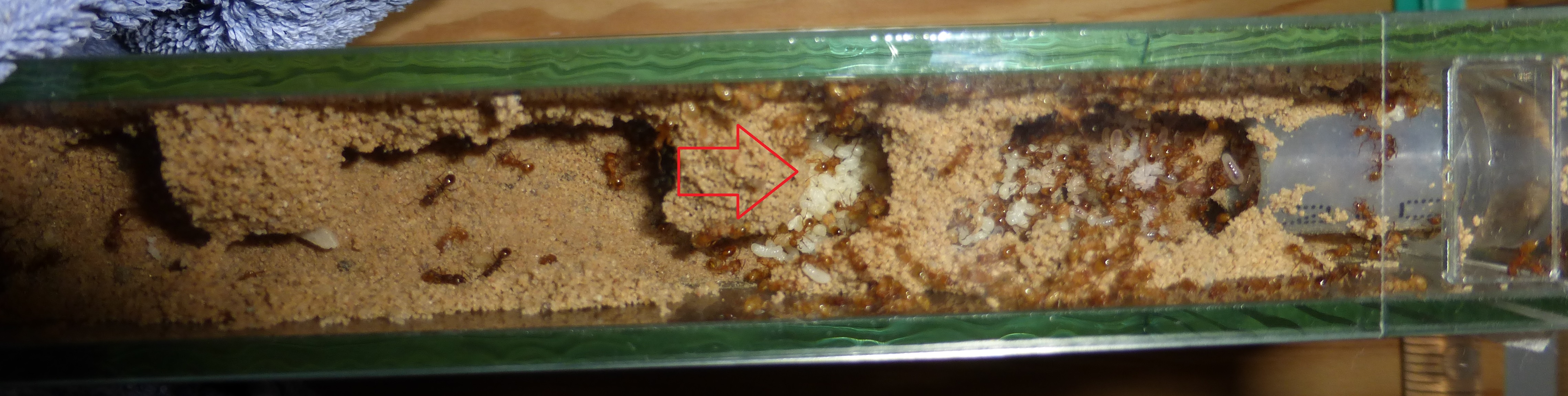 Die Ameisen wurden ein wenig schneller und aktiver im Becken, aber ich denke es macht keinen wirklich groĂźen Unterschied.