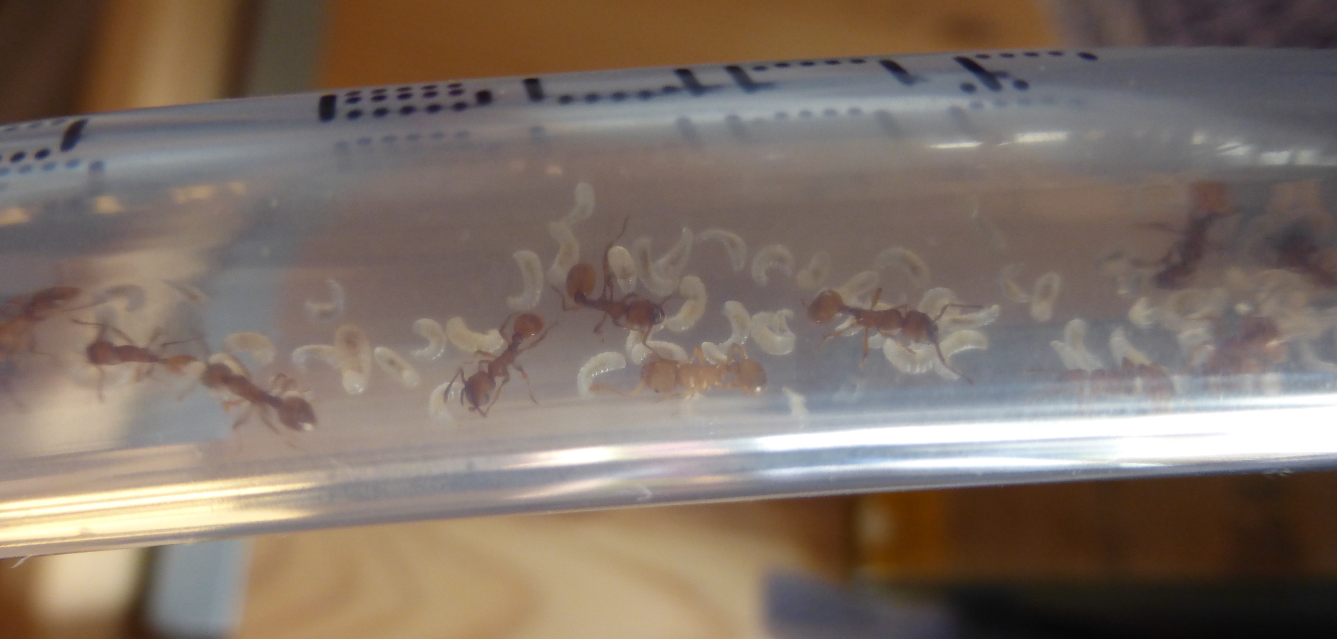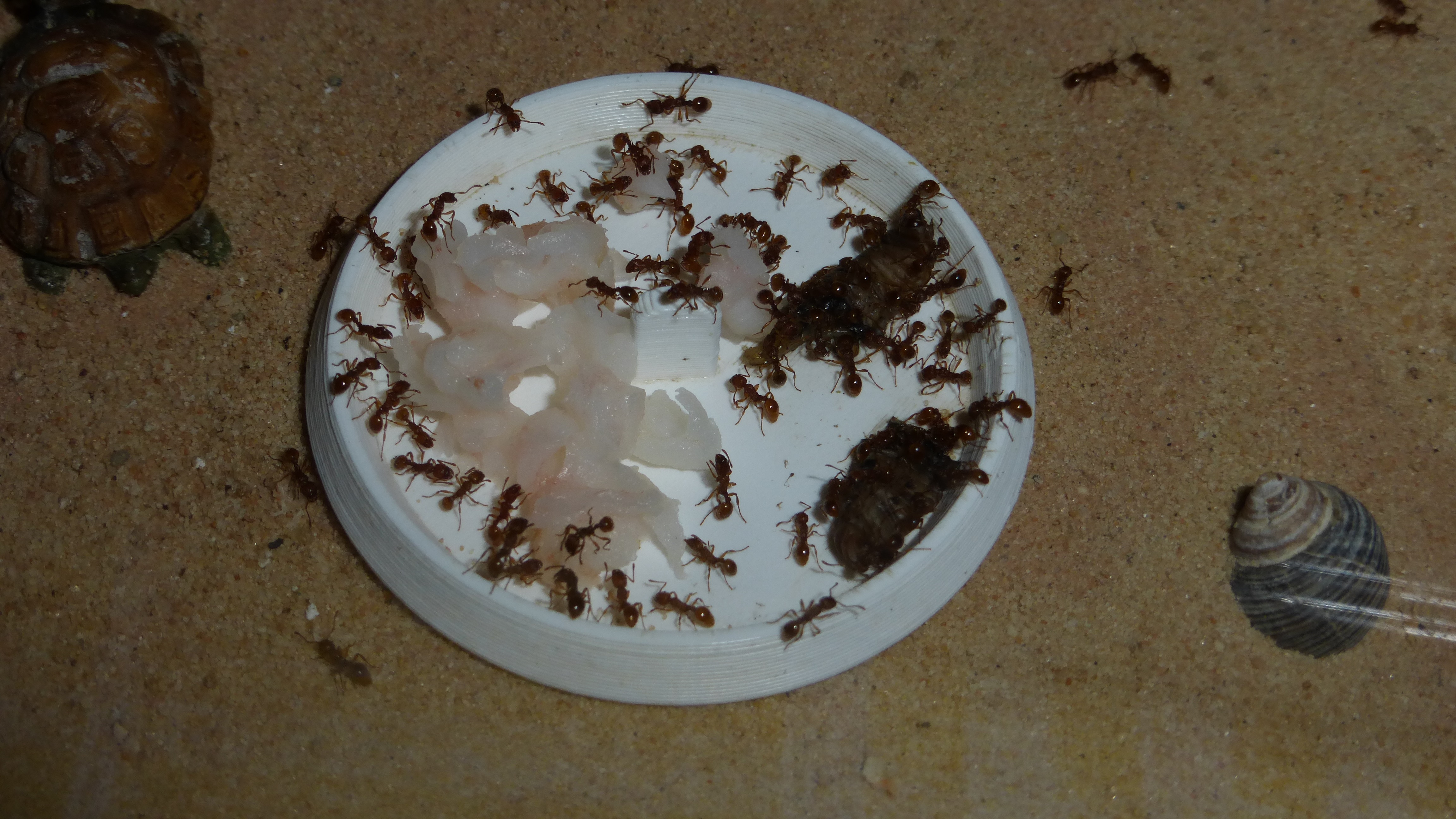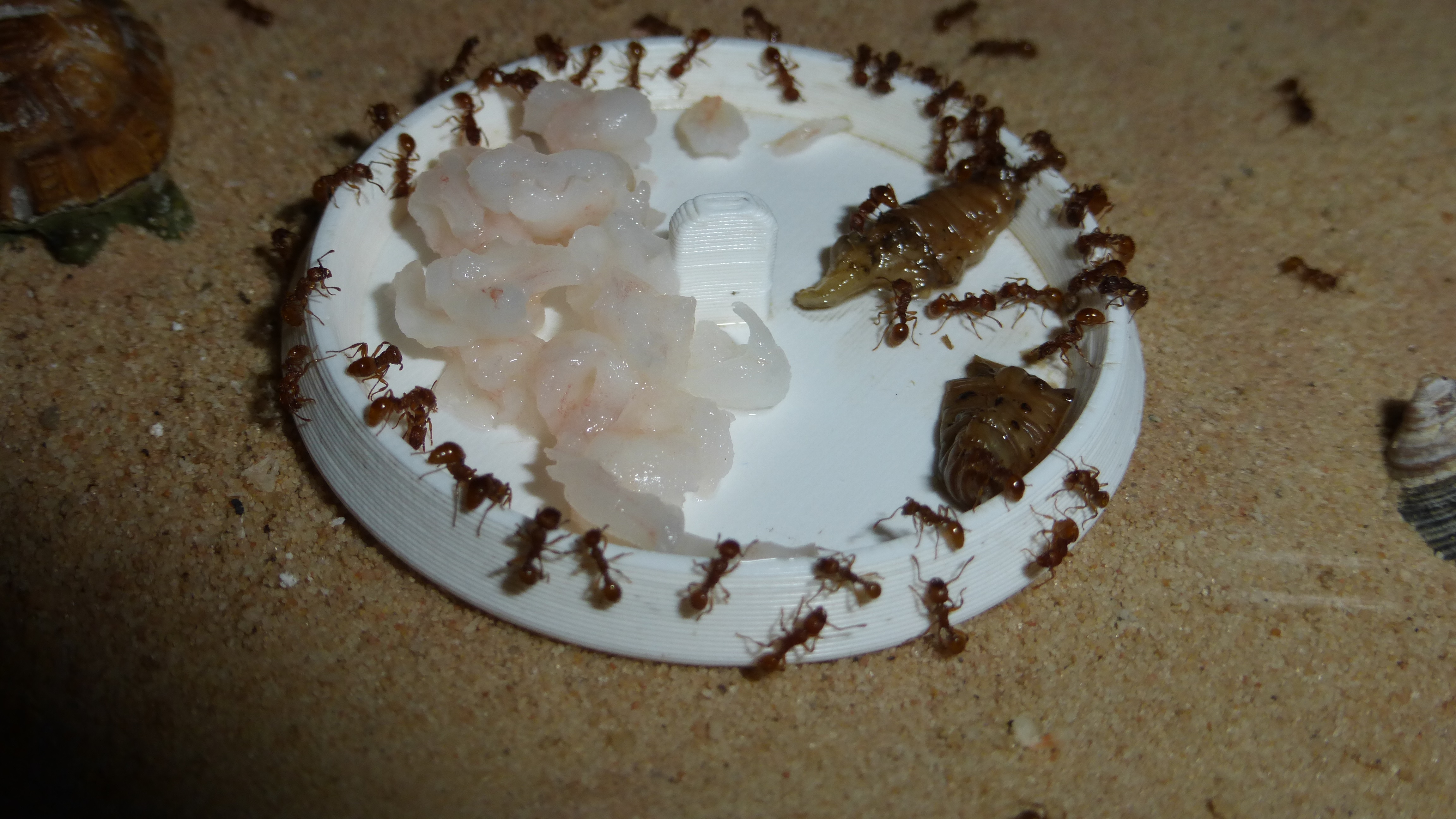 Diese Woche haben sie Schrimpies bekommen (wie ĂĽblich) und eine Wachsmottenlarven, die sehr begehrt war.