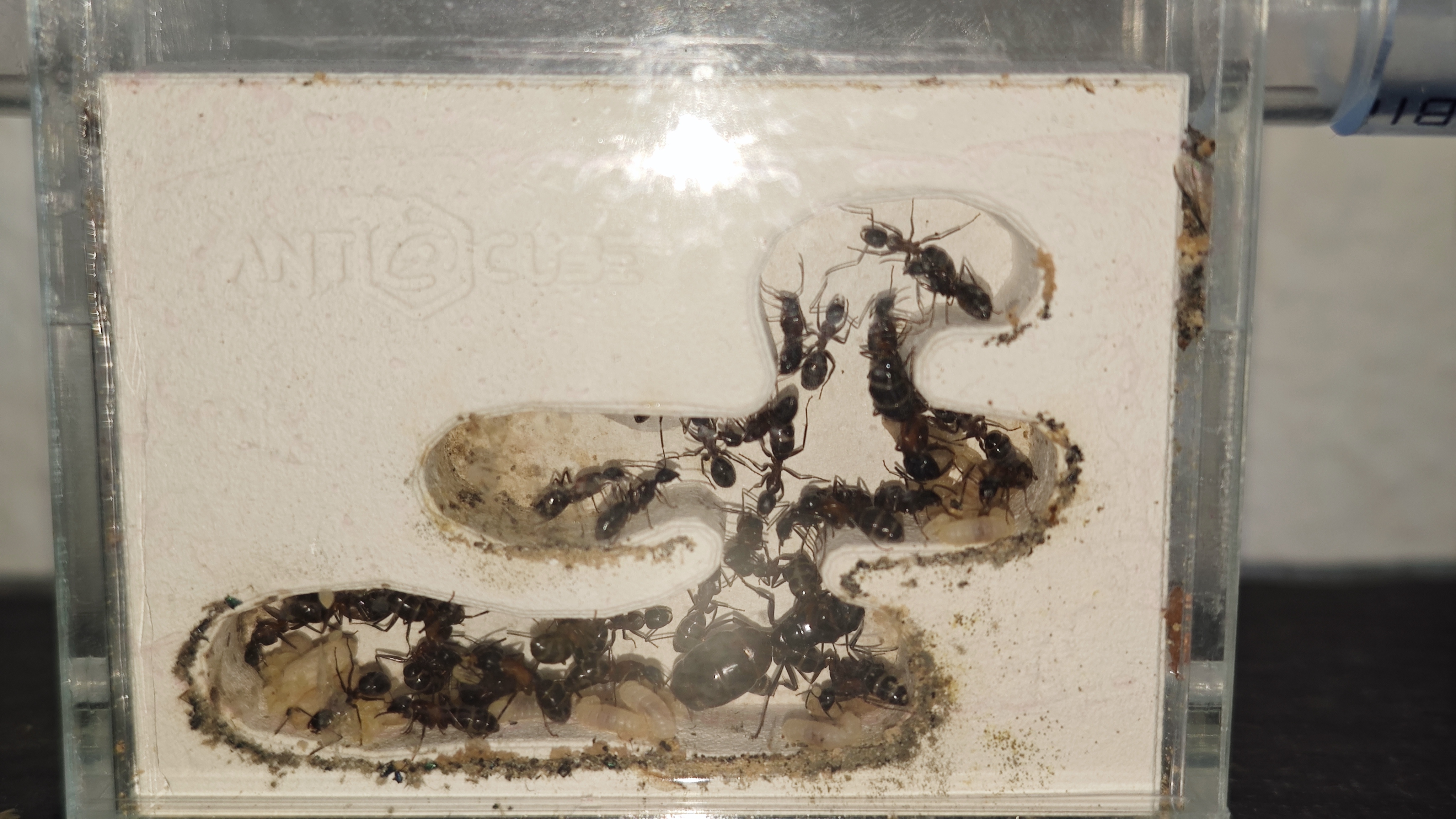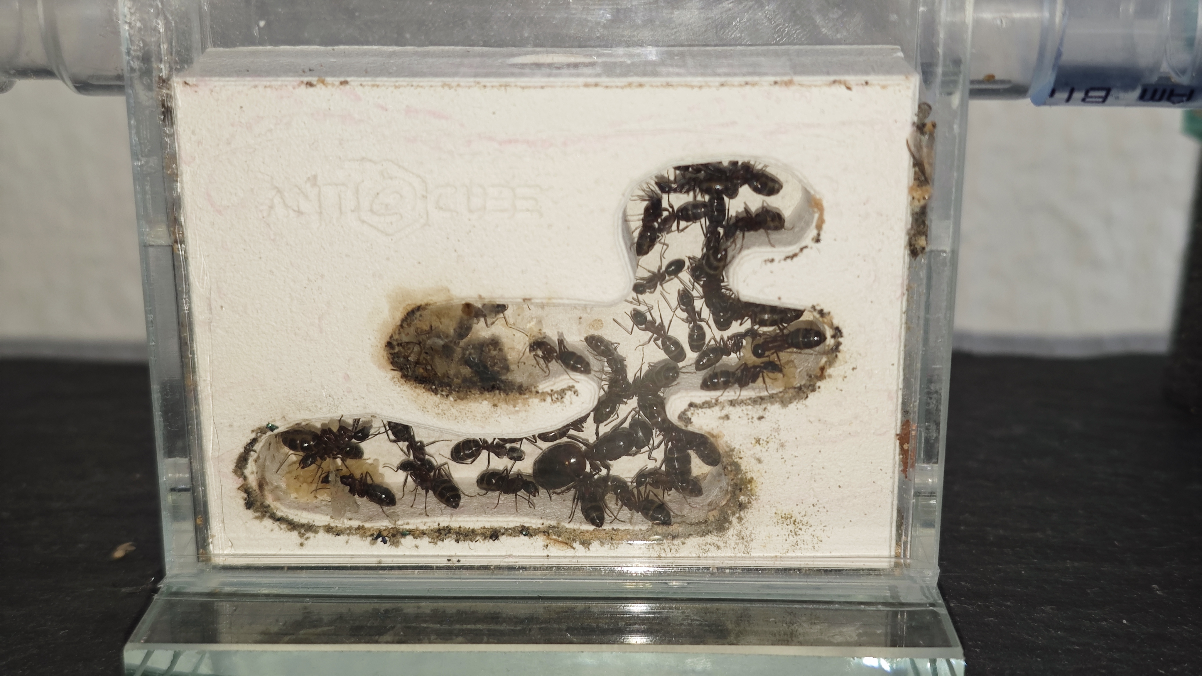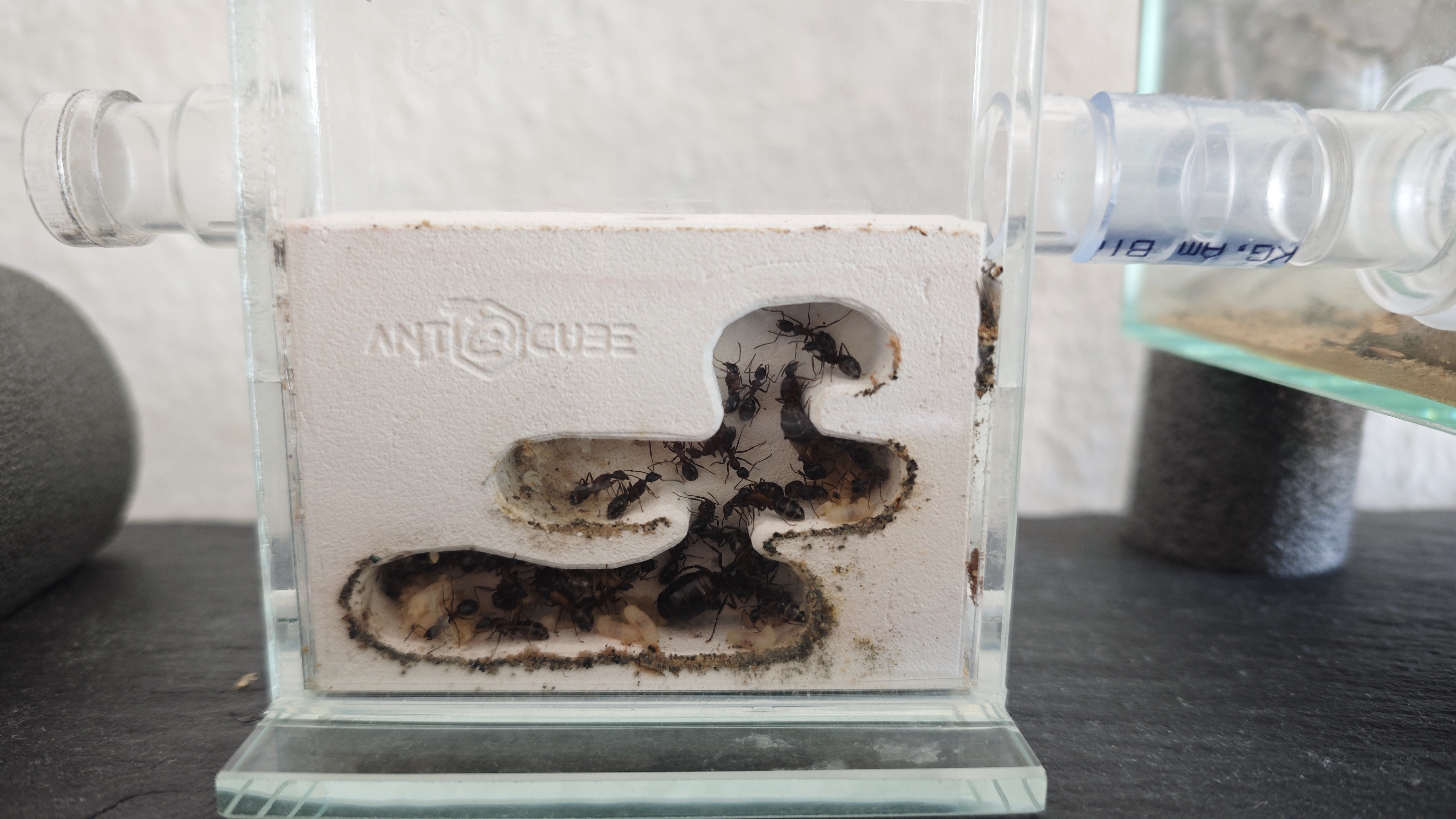 Eine erste Majore ist aufgetaucht. Sie ist fast doppelt so groĂź wie eine normale Arbeiterin. Leider im Nest nicht richtig erkennbar.
