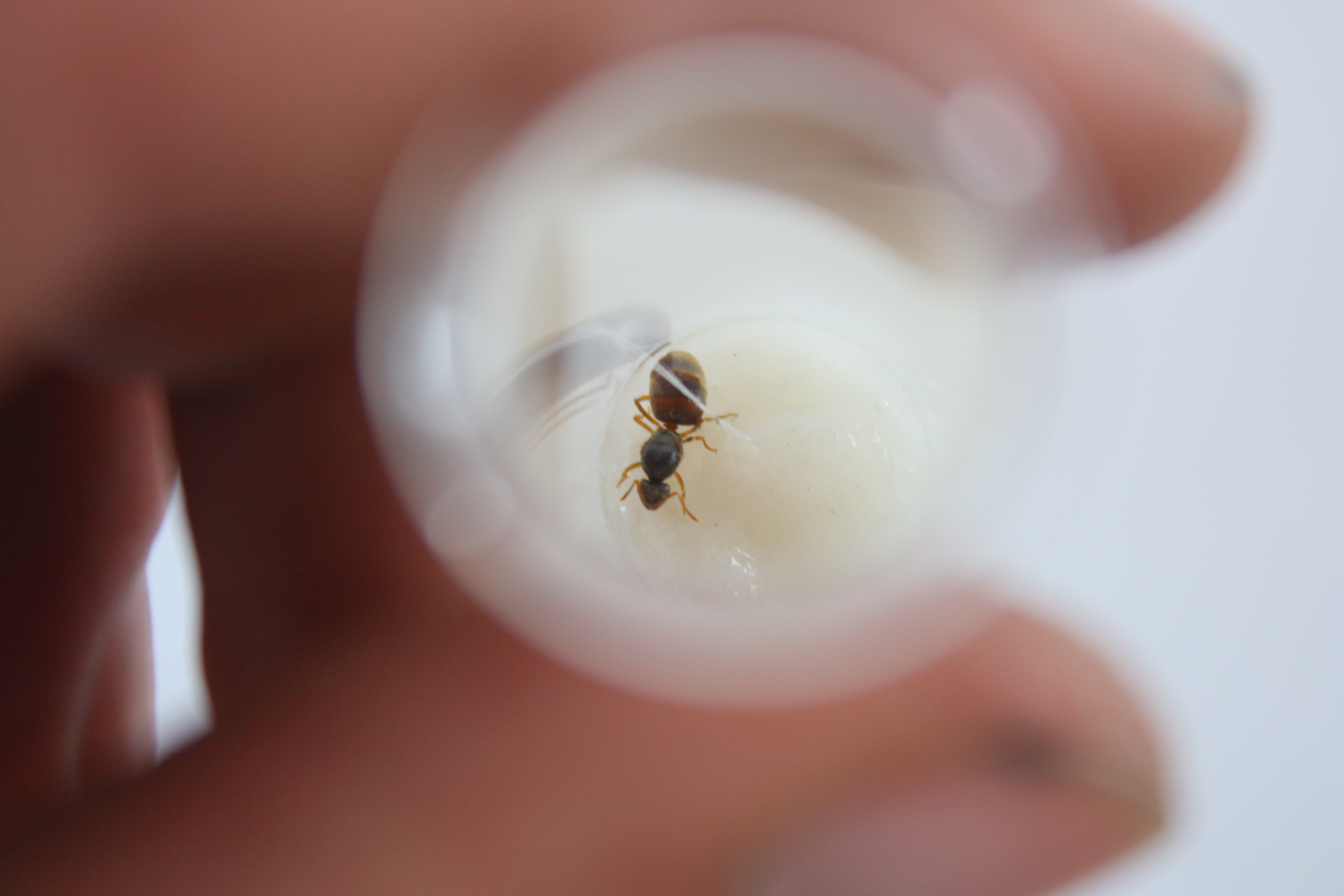 Gyne mitten auf unserem Hof (Pflastersteine, kein Schatten - direkte Sonneneinstrahlung) gefangen. Und hoffe, dass mir jemand eine vage Bestimmung zukommen lassen kann. Das Tier ist etwa 7mm groĂ. In der Draufsicht, sprich am RĂŒcken dunkelbraun und wird auf der Unterseite immer heller - fast gelb. Ich lebe in Bayern, circa 50 Km östlich vom Flughafen MĂŒnchen. Momentan haben wir circa 25°C hier. Vielen Dank im Vorraus und ich hoffe die angehĂ€ngten Fotos sind qualitativ ausreichend.