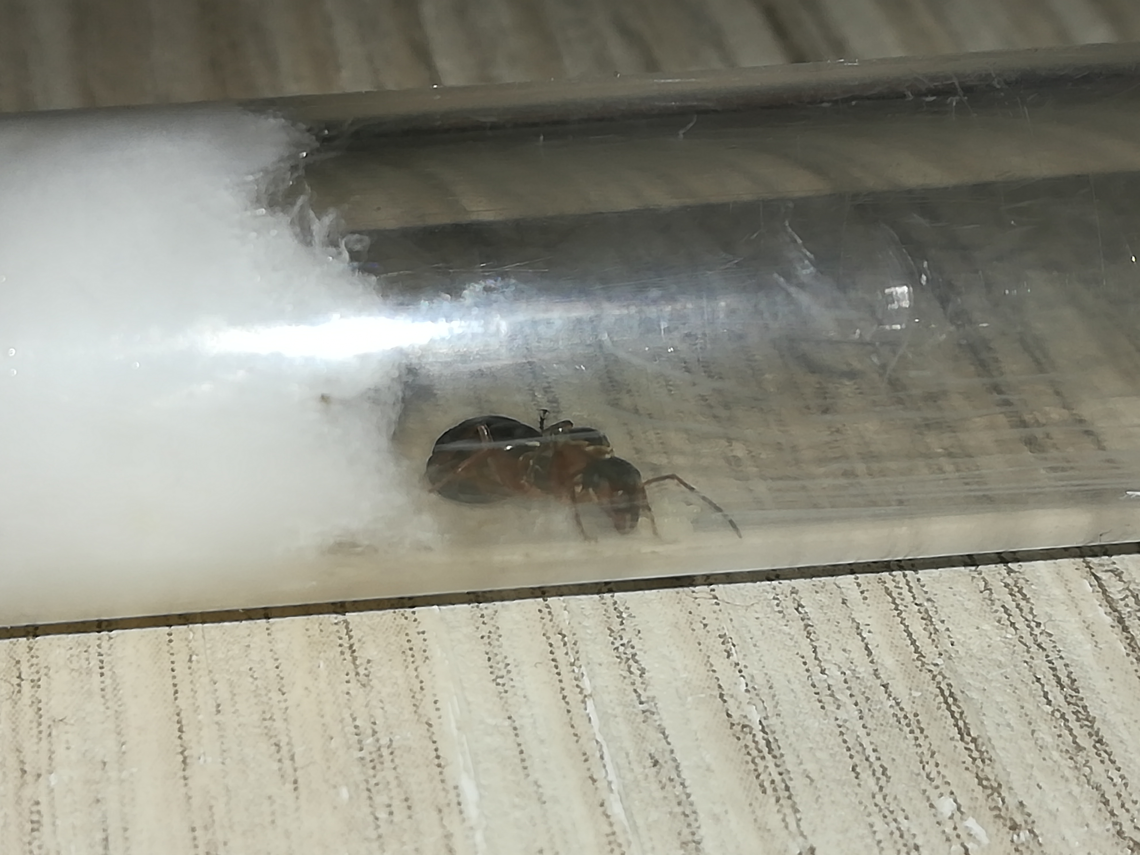 Die größte vor den dreien, sehr schnell für eine Königin, lange Beine, teilweise rötlich gefärbt, auffällig sind auch die Zacken am Petiolus. ca 15mm