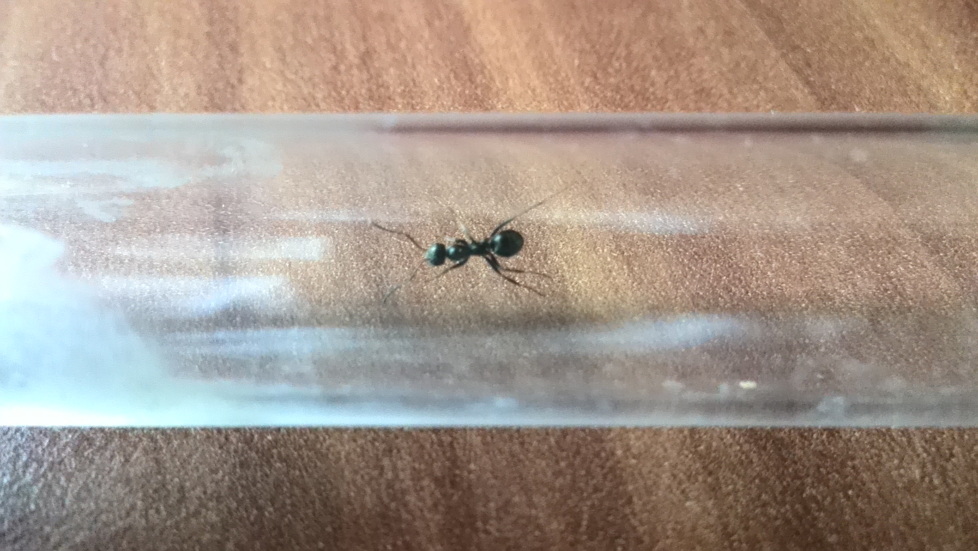 Auf den 3 Bildern ist Ameisen 2 zu sehen. Ganz schwarz und ca. 10-11mm groß. Verdammt schnell und schwer zu fangen immer in Bewegung aber ängstlich. ich konnte auch nur eine entdecken.