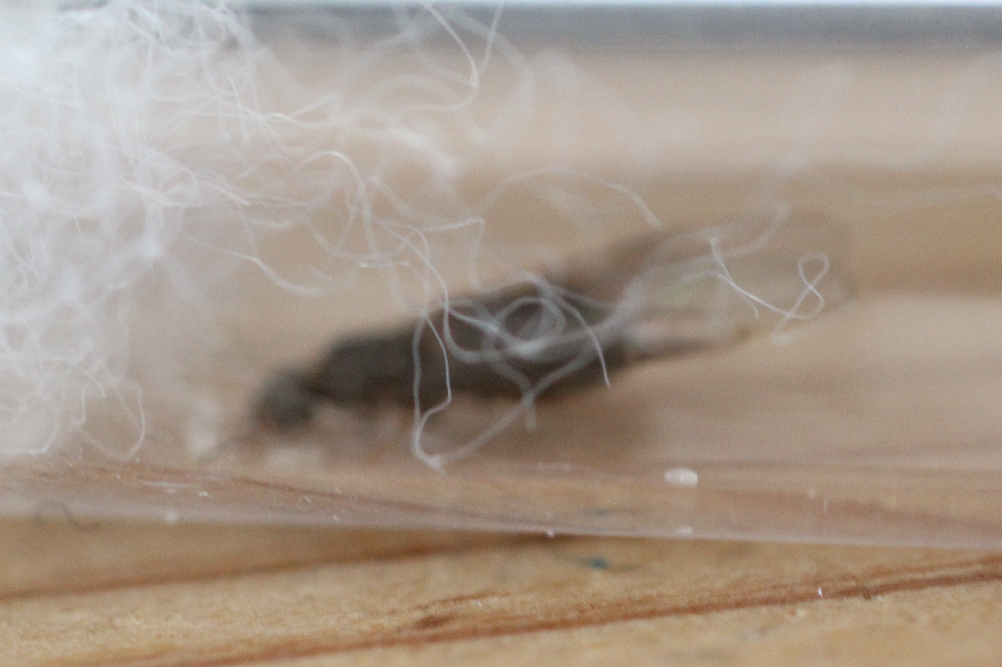 Jetzt nach etwa vier Tagen hat sie ein paar Eier gelegt.