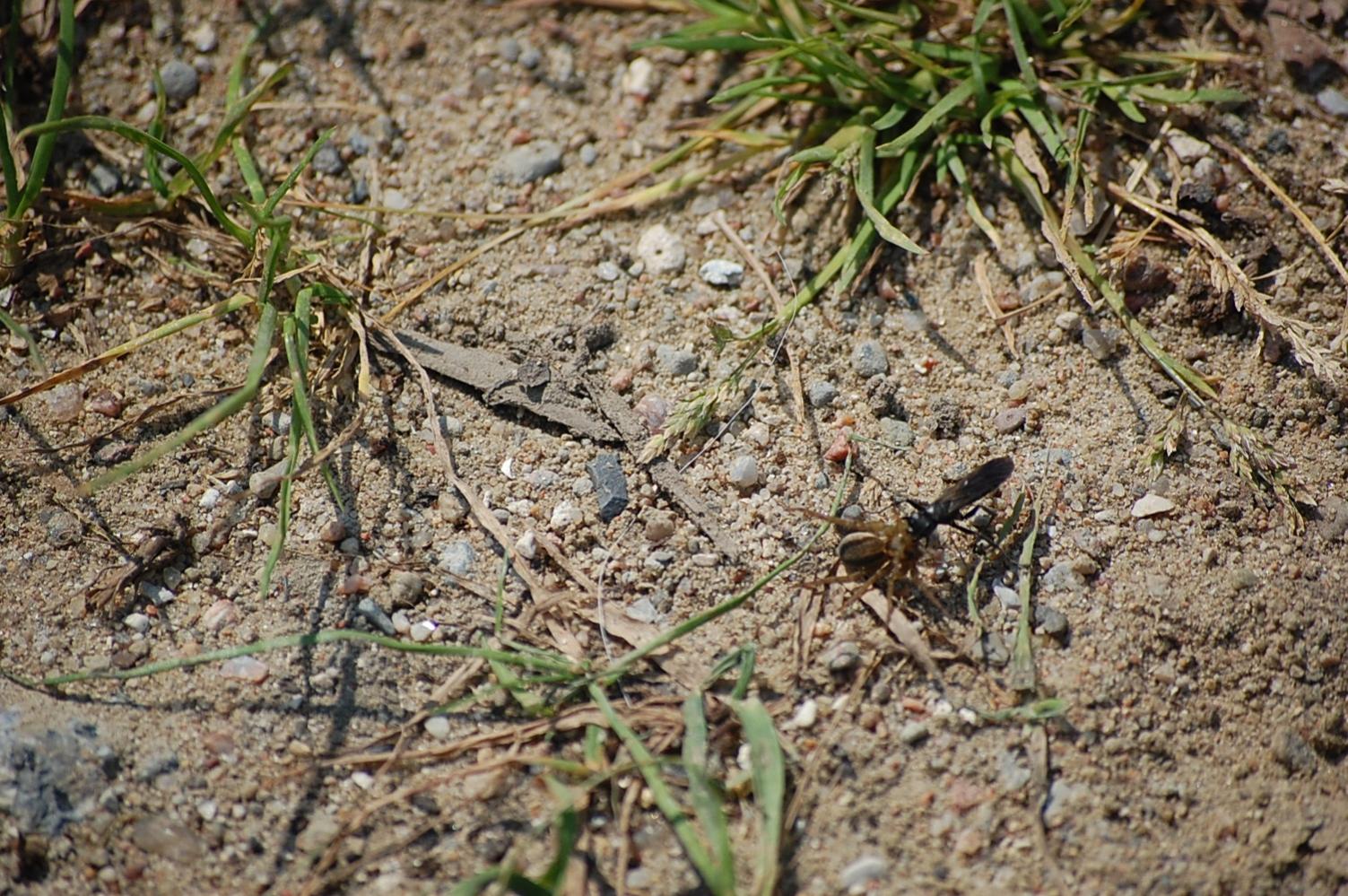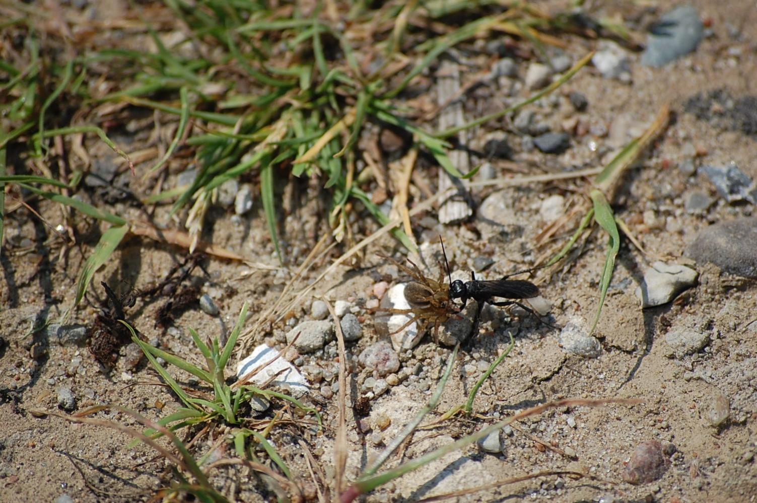 Bestimmungshilfe: Insekt schleppt Spinne ab