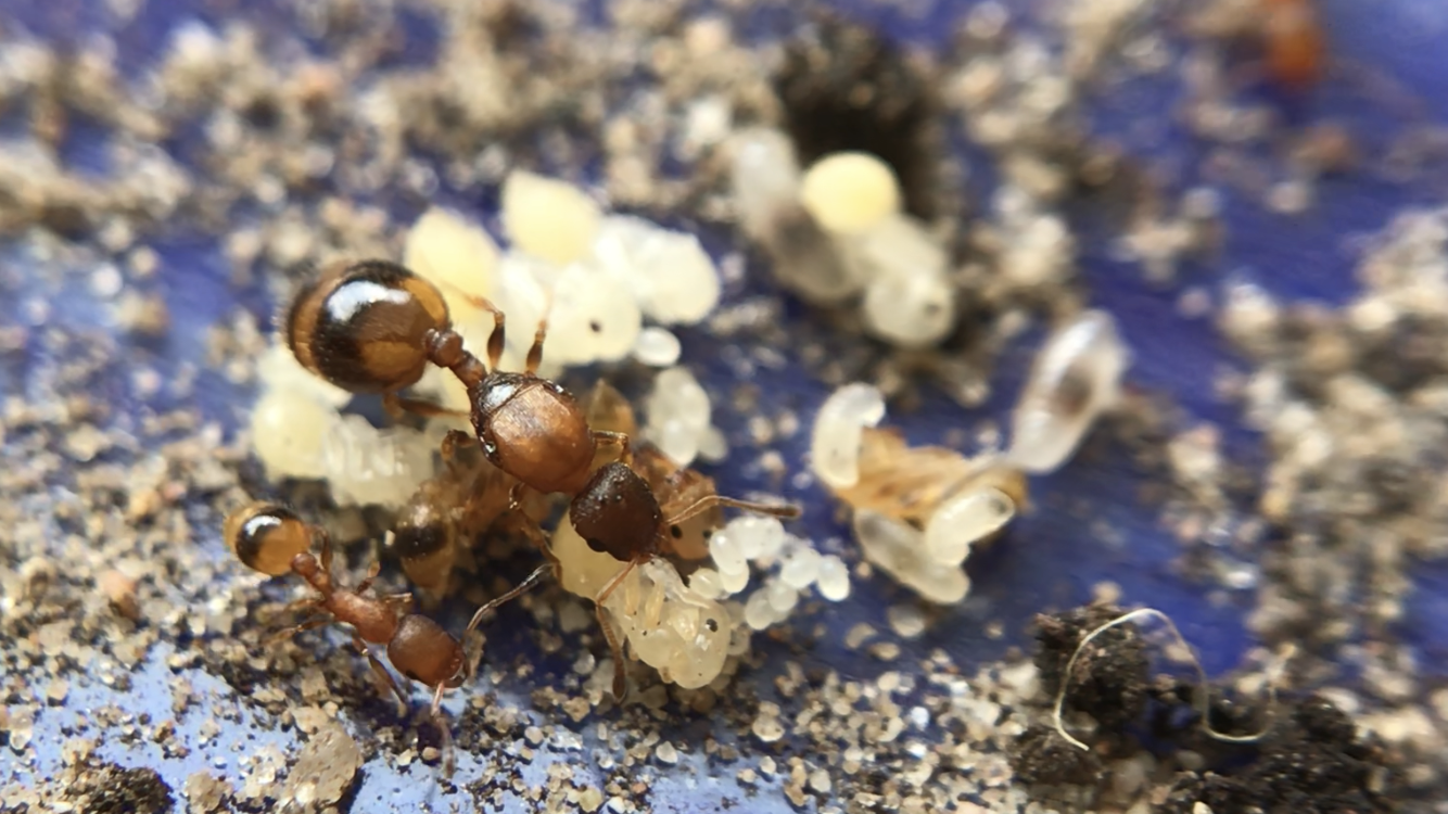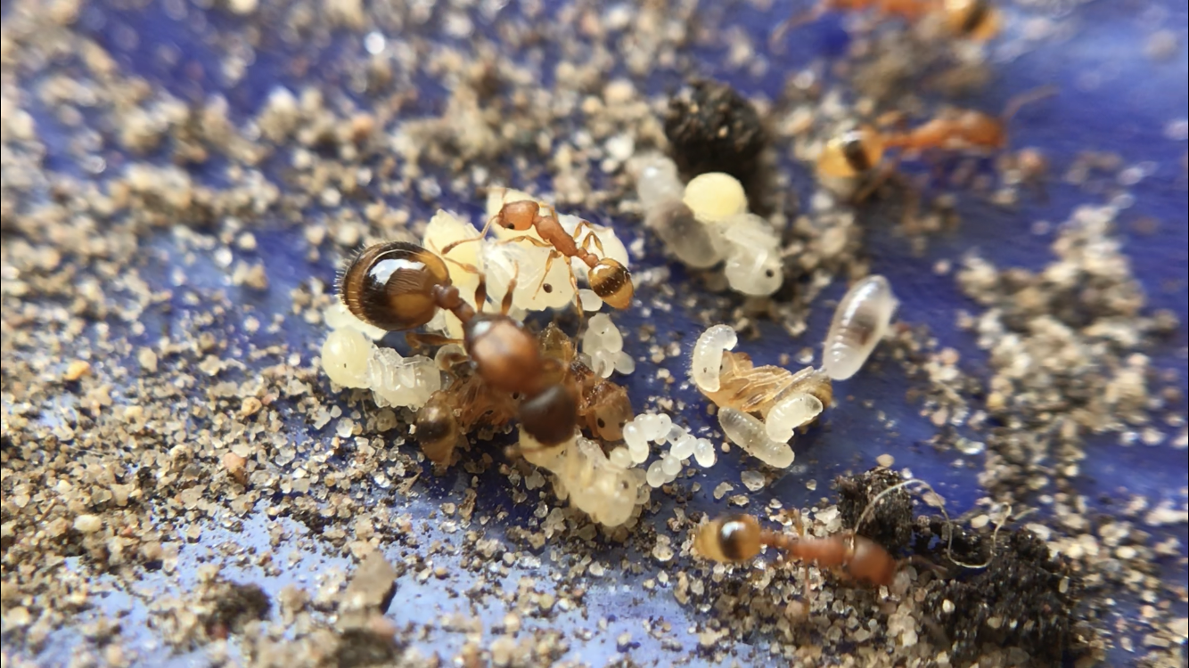 Myrmica-Königin mit Brut .