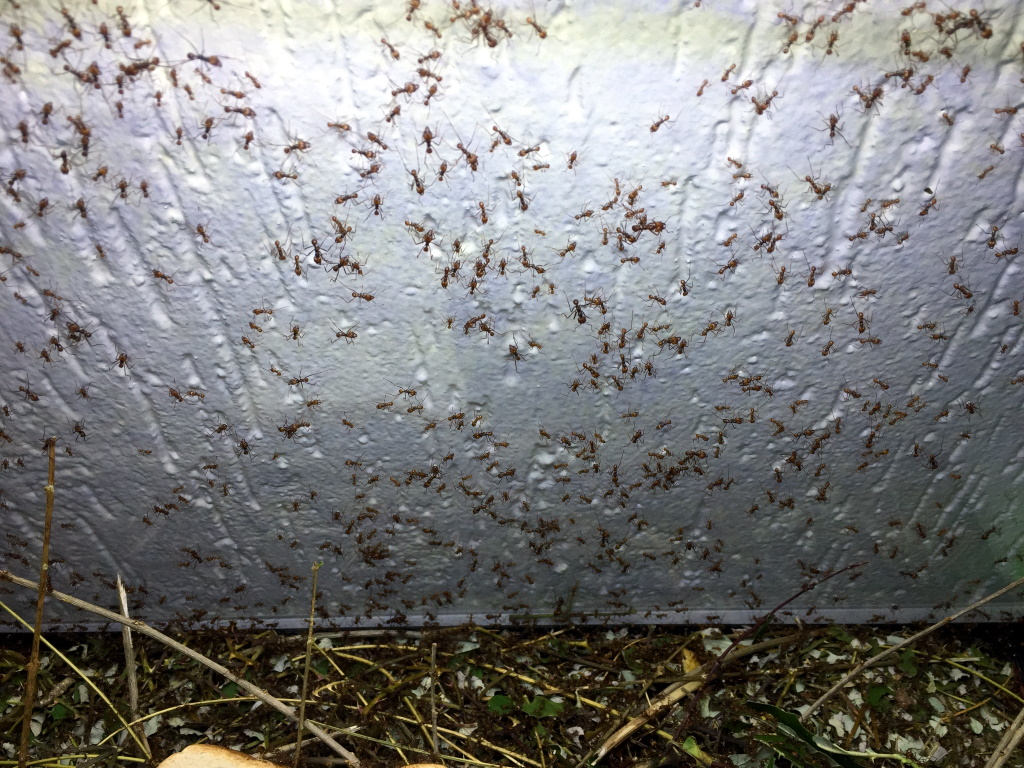 Dieser Winzling ist nun die dritte Generation, die bei mir lebt. Um die 7 großen Gottesanbeterinnen von den Kleinen fernzuhalten (die Art gilt als quasi nicht kannibalisch, aber bei großem Größenunterschied kommt es doch vor), werde ich nun ein zweites Terrarium für die Neuankömmlinge einrichten.