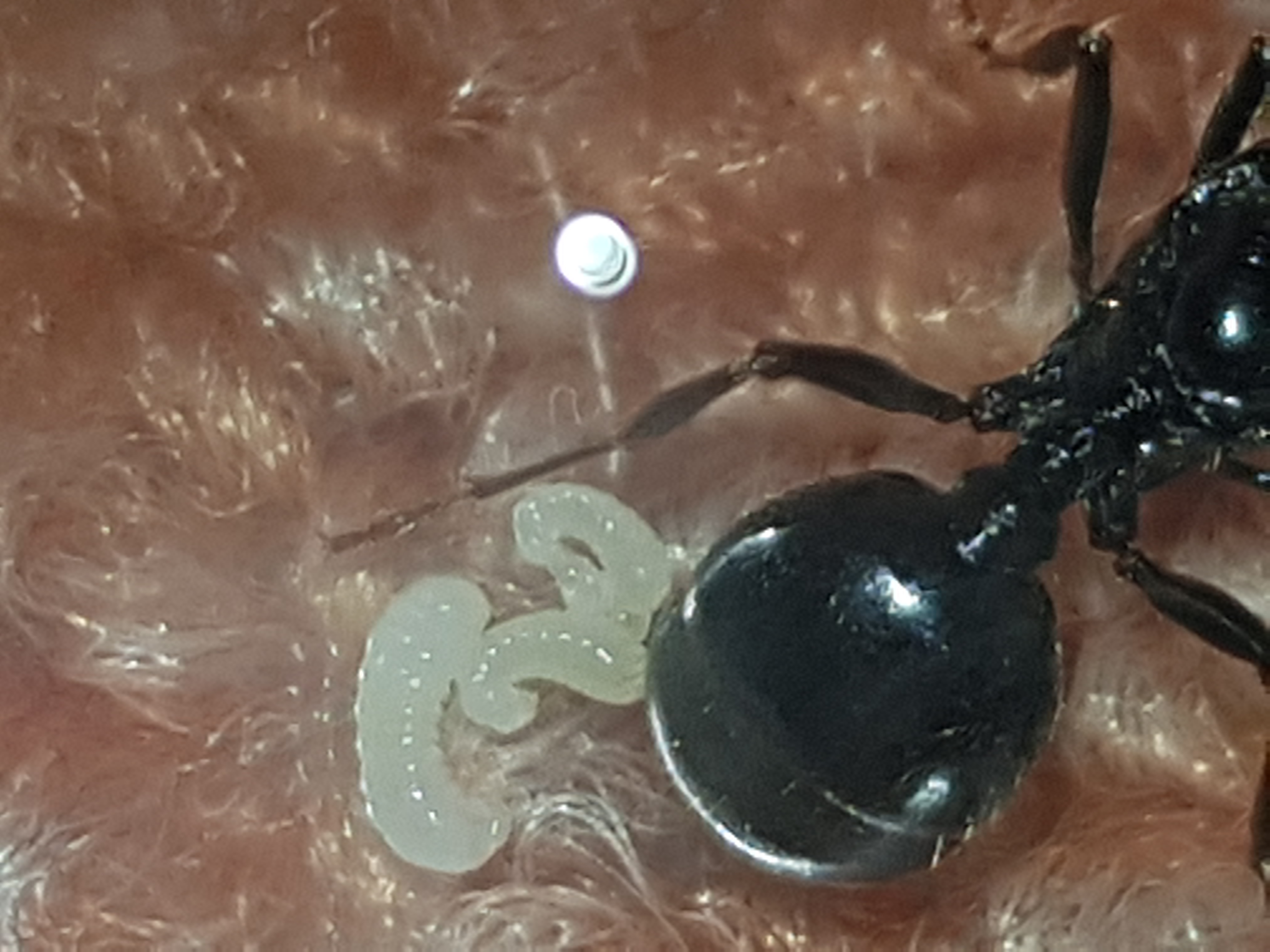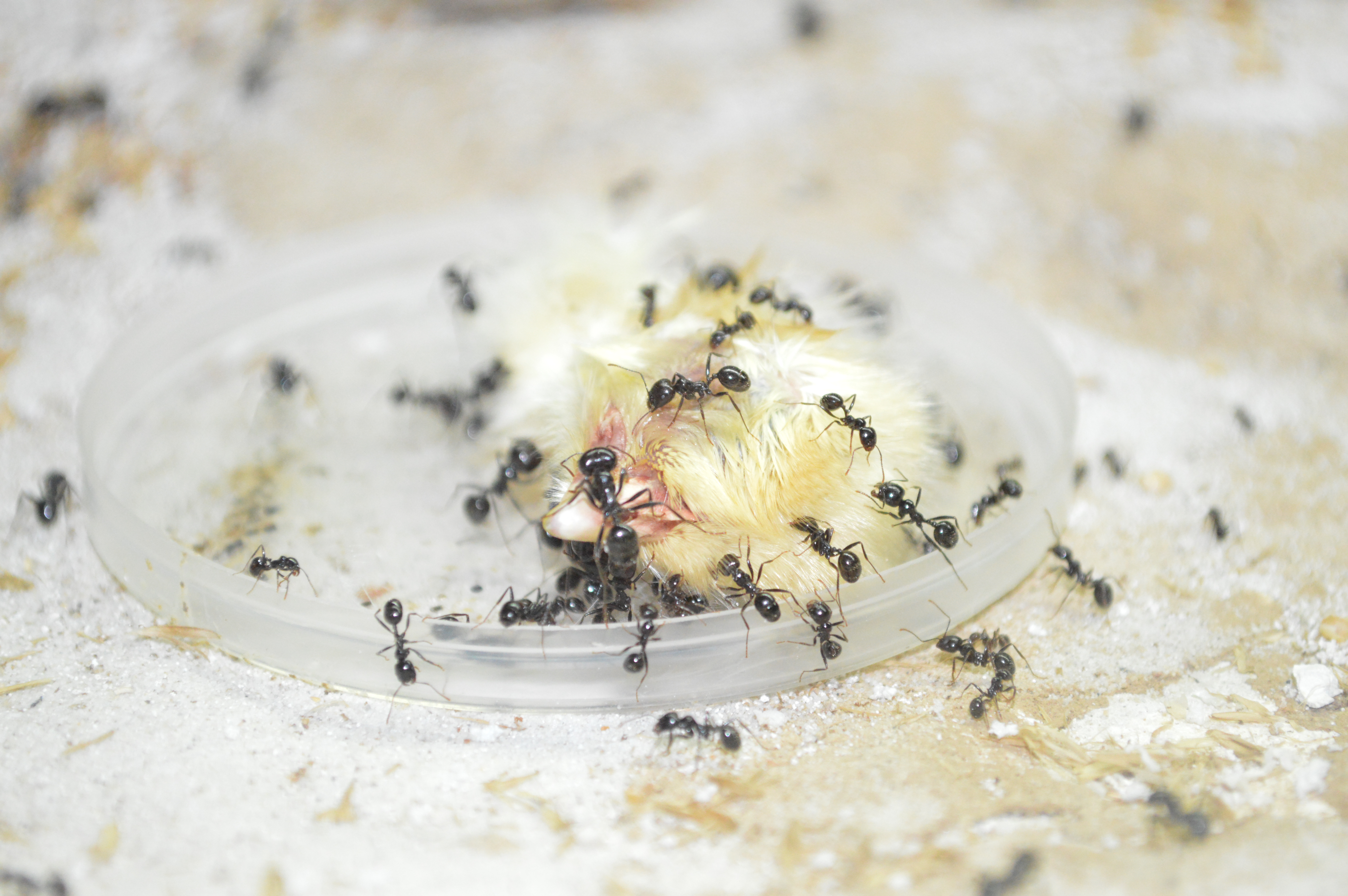 Mein Hund ist leider vor einigen Wochen im Alter von 18 gestorben ....nun hatte ich noch BARF ĂĽbrig, so gab es fĂĽr meine Messor barbarus mal ein EintagskĂĽken.