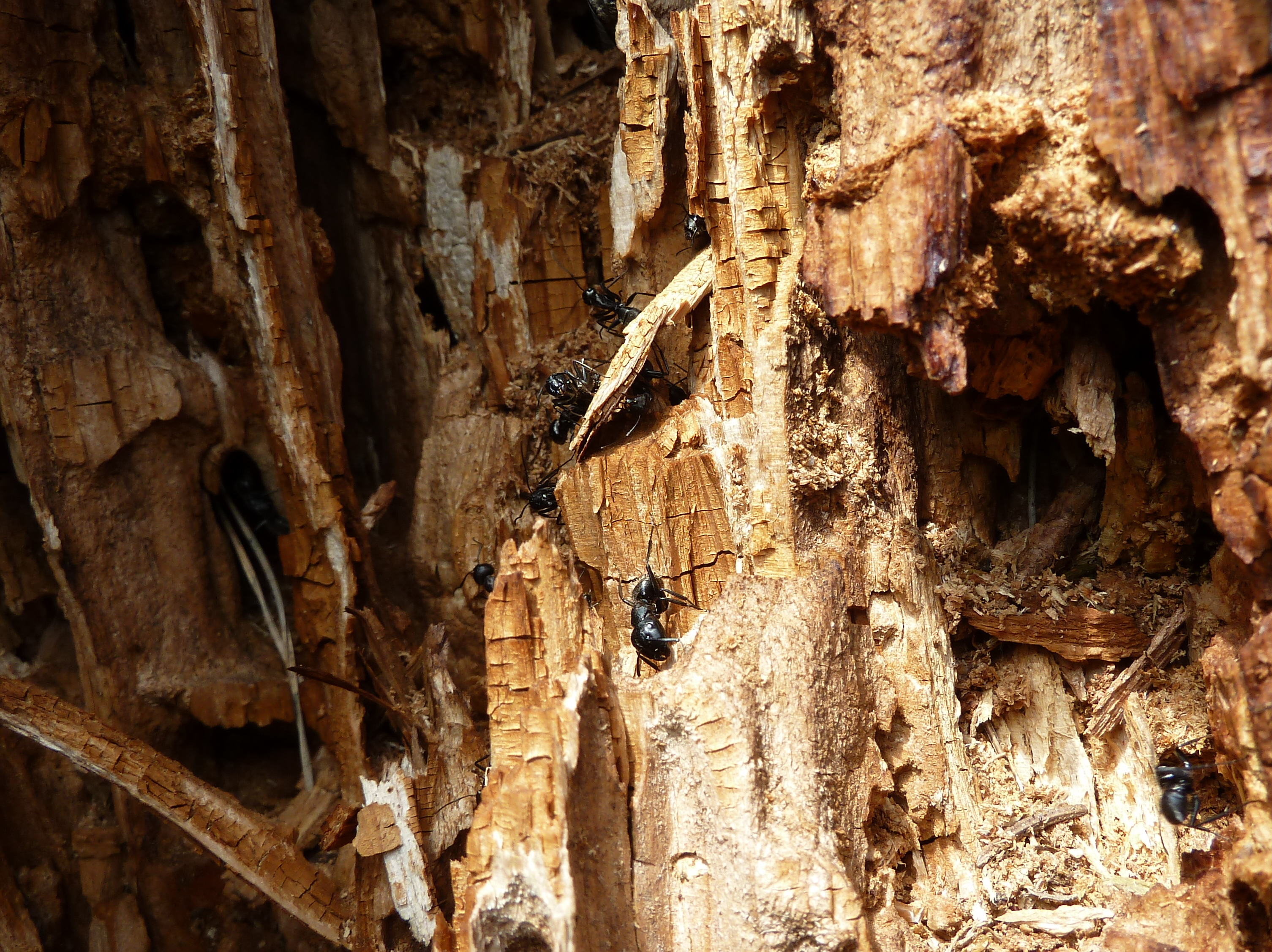 Camponotus vagus in einem alten Baumstumpf. Entweder sind mir die frĂĽher einfach nie aufgefallen oder es gibt hier immer mehr Kolonien von denen.