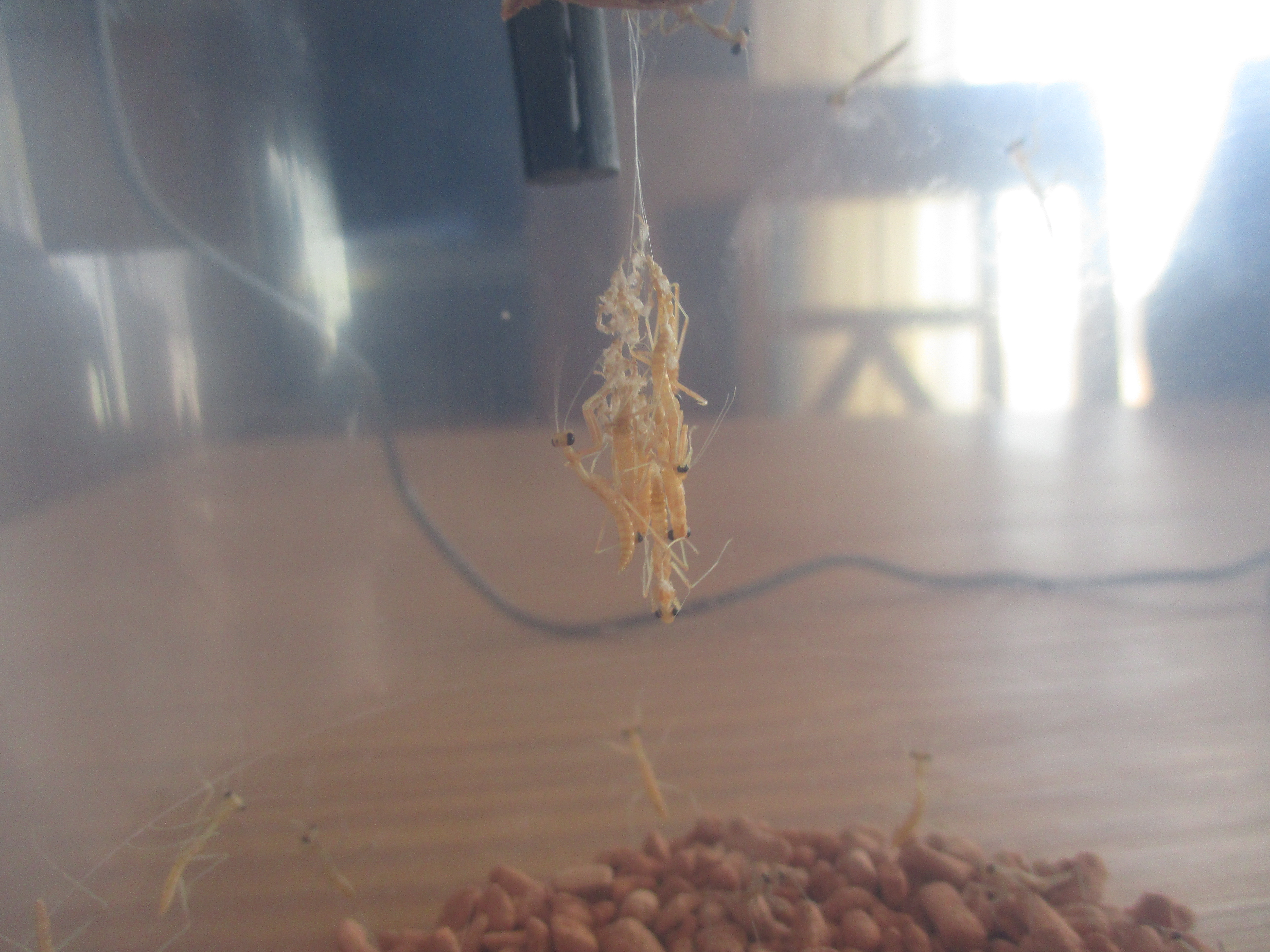 Nach 7 Wochen langer Inkubation, war es am Freitag und Samstag soweit, die Ootheke meiner indischen Riesengottesanbeterin brach auf und viele, seeeeehr viele kleine Krabbler kamen zur Welt