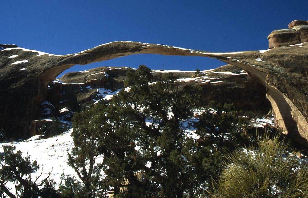 Hier ist es der "Landscape Arch" im Arches National Park in Utah, USA, Anfang März 1997.