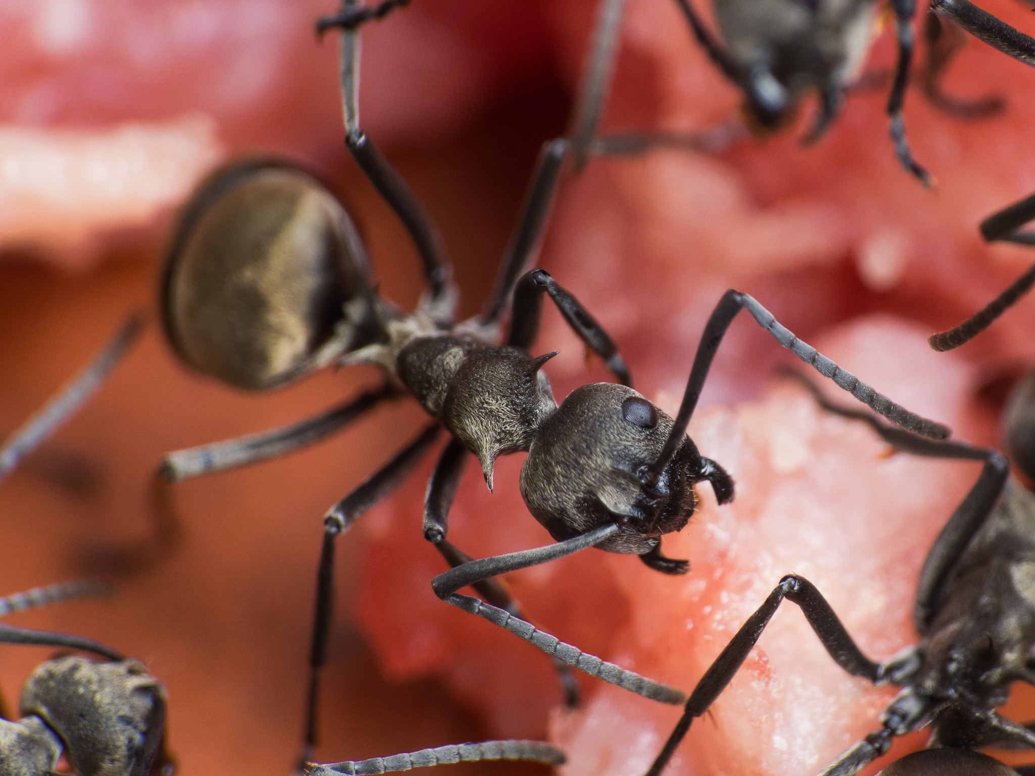 Polyrhachis dives fressen so ziemlich alles. Auch Hackfleisch wird sehr gerne angenommen. Dass Hackfleisch kein geeignetes Futter für Ameisen sein soll, sehe ich nicht so.