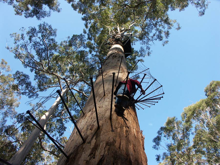 Ein paar besonders hohe Eukalyptus-Bäume hat man als „Feuertürme“ ausgebaut; von oben kann man den Wald weithin überblicken.