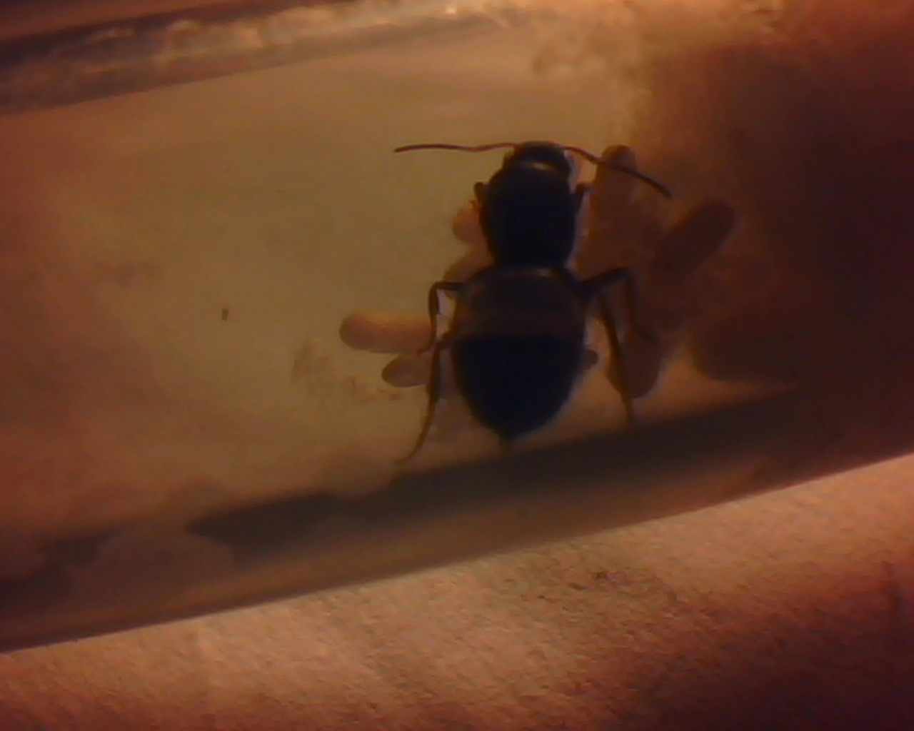 2. Andere Gynen die ich zur selben Zeit gesammelt habe(selbe Stelle zwei Tage früher) und bei gleichen Bedingungen halte(RG-Nest, selbe Schublade) , verhalten sich wie ich es erwartet habe; Eierpakete gelegt, halten die