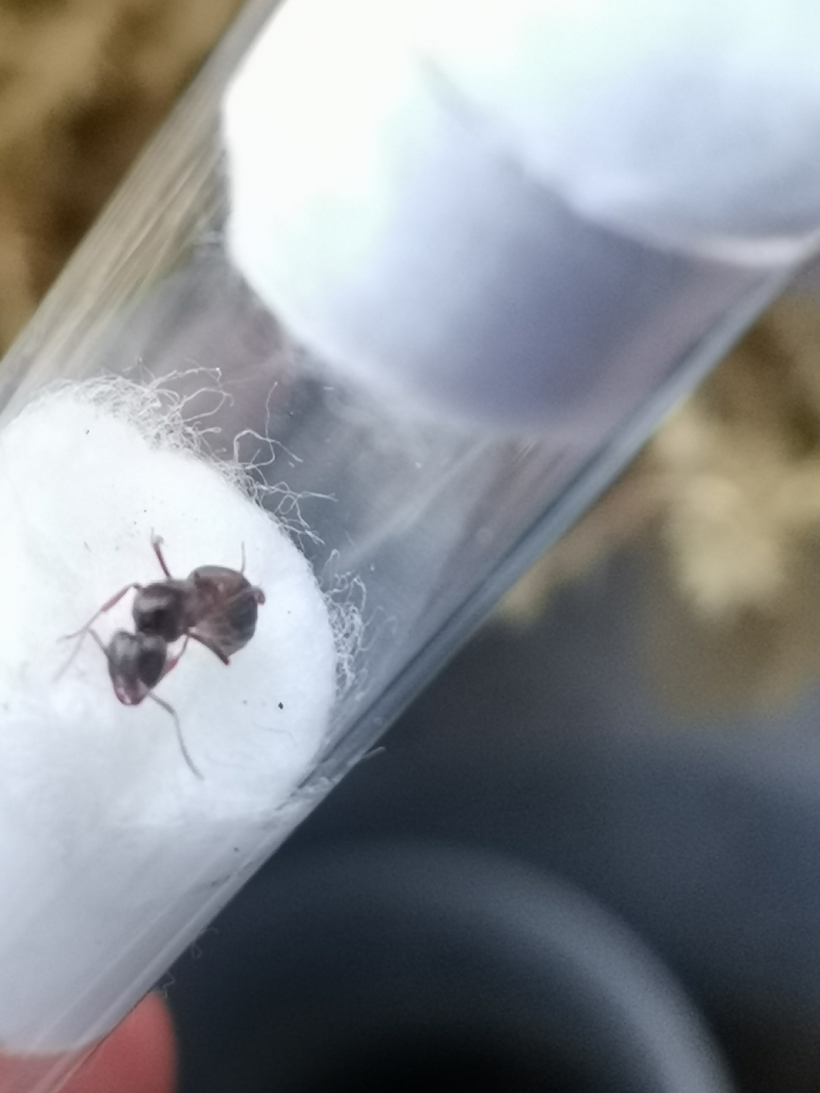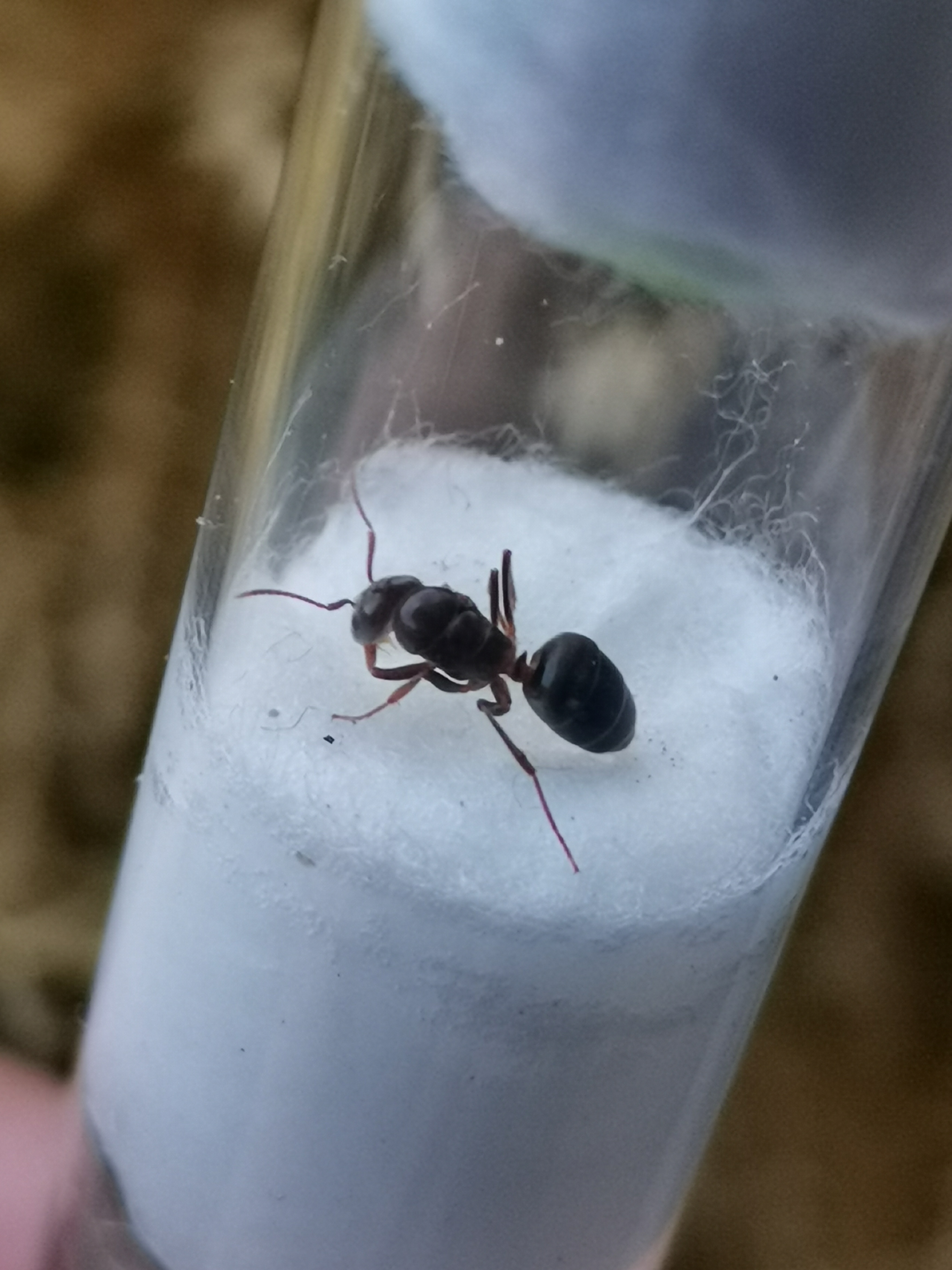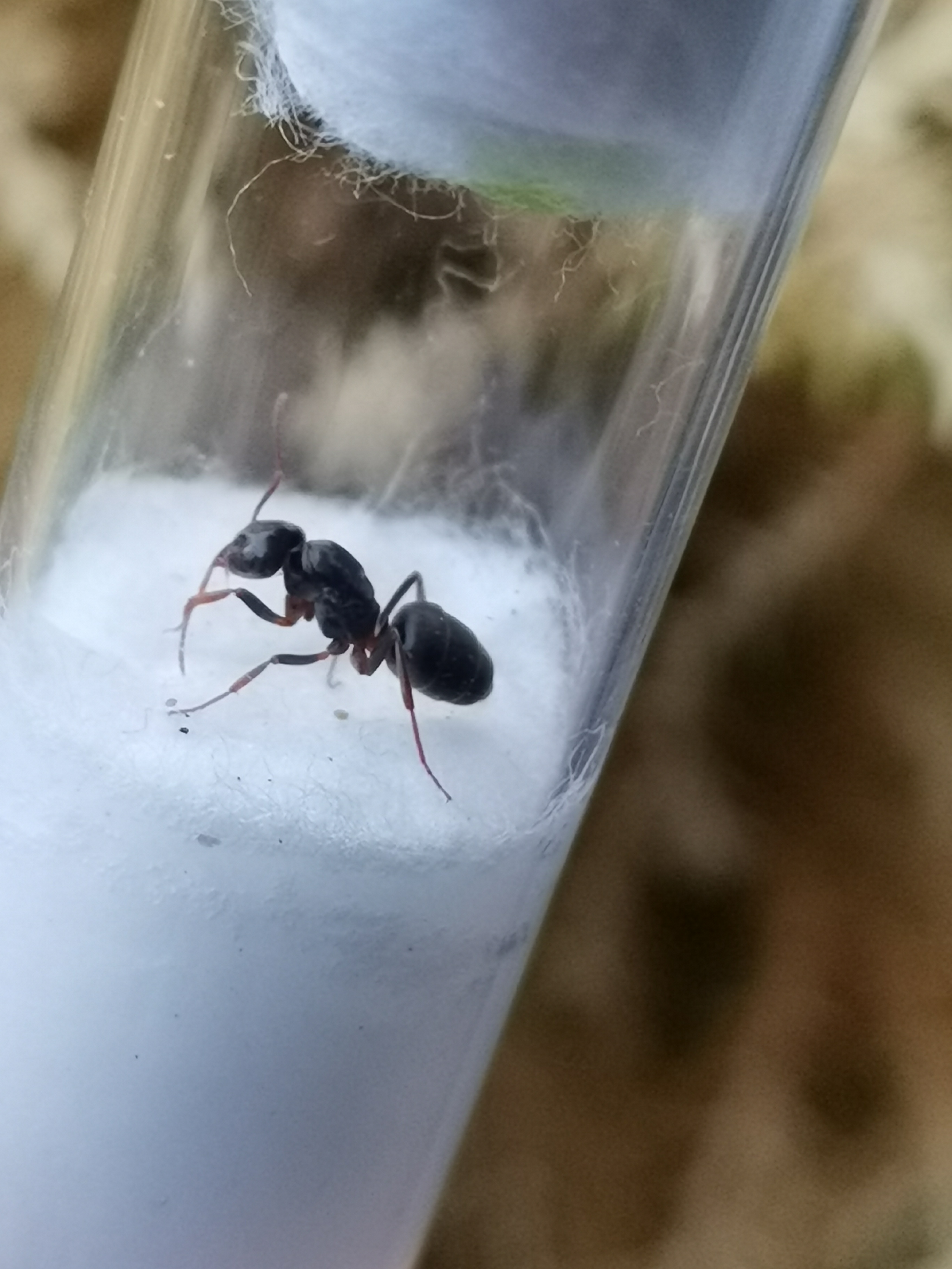 Zack tot. Die Arbeiterin hat keine 5 min. überlebt. Damit hab ich dann Lasius als auch sozialparasitär ausgeschlossen. Nach weiterer Recherche schien mir was anderes als naheliegend. Ich hab mir die Vermutung aber nicht aufgeschrieben und vergessen. Formica fusca vielleicht? :/