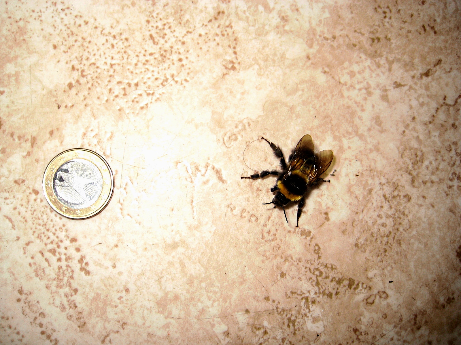 Die Fotos mit dem ein Euro Stück sind ein sehr schlechter Größenvergleich, die Hummel war Größer als es die Bilder vermitteln.