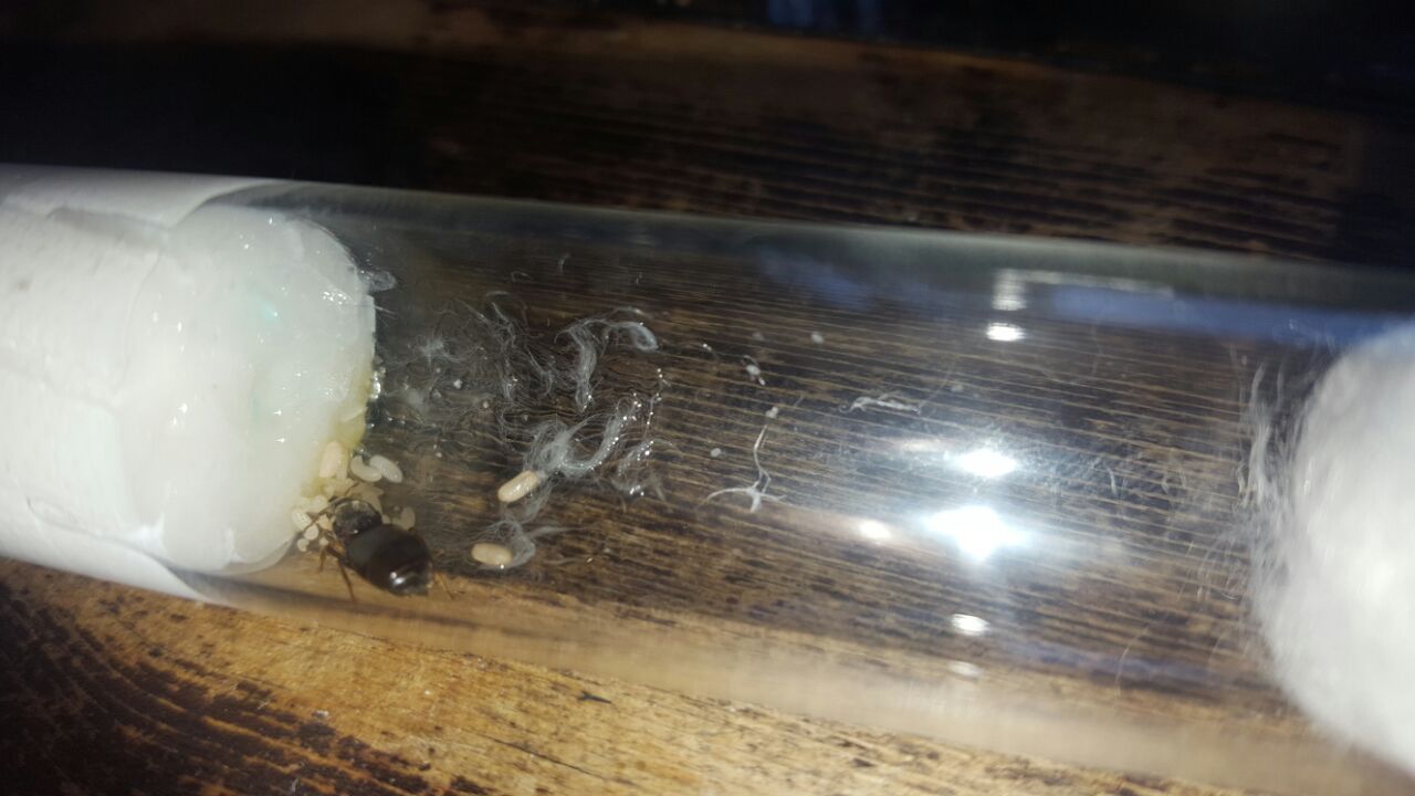 Gyne wäre, nur ein kleines Holzstück hinzutun (nicht bis zum Ende reinschieben, sondern erstmal vorn an der Watte ablegen). Dieser sollte natürlich entkeimt sein im Ofen z.B.! So mach ich das schon seit Jahren. Hat den Vorteil, dass sie sich auf das Floß retten kann, sollte es mal zu feucht werden.