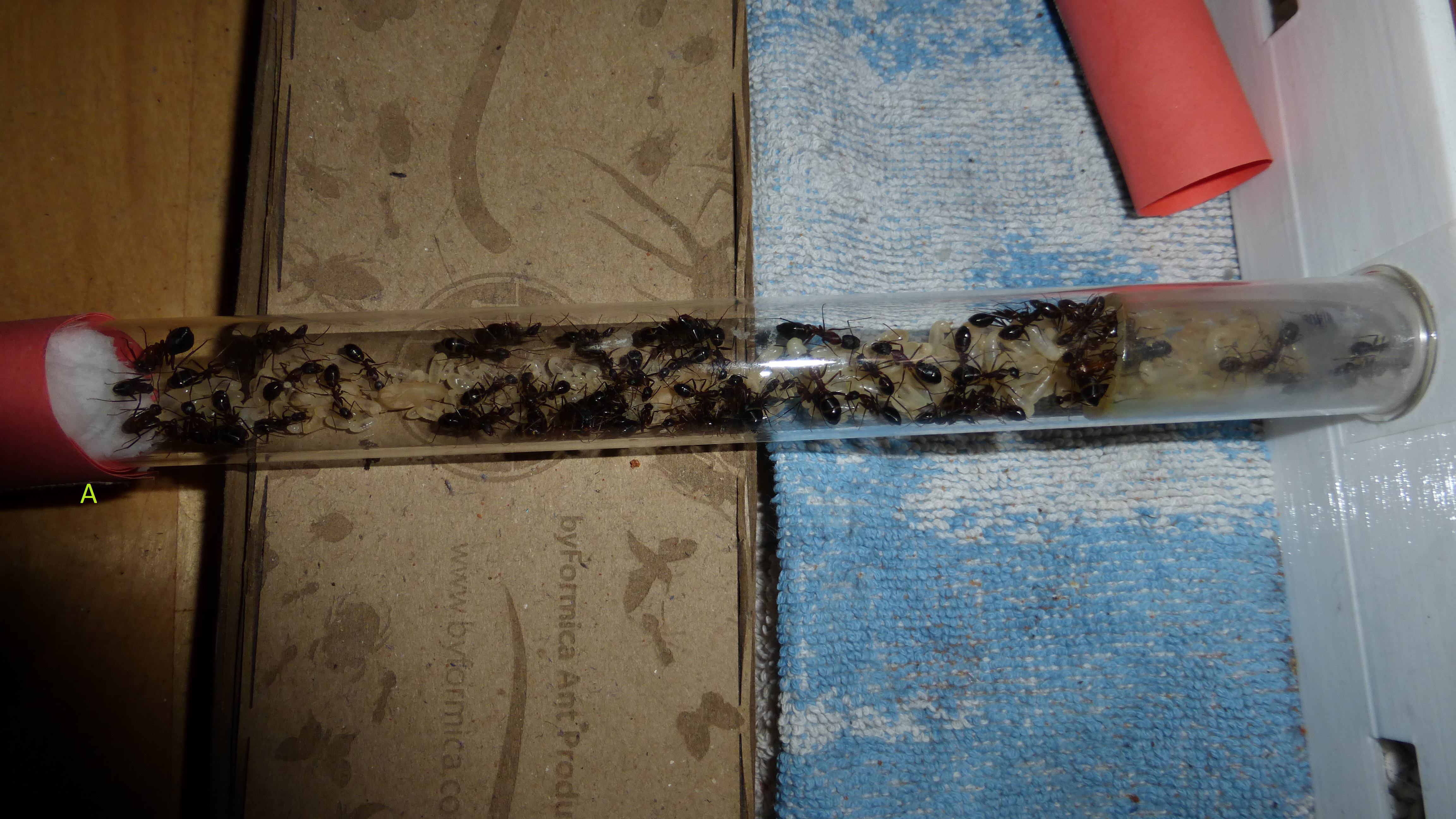 In den Arenen näher am Hauptnest fiel das dagegen ziemlich bald auf und es versammelten sich schnell einige aufgebrachte Arbeiterinnen um die Watte aus den Schläuchen zu zupfen.