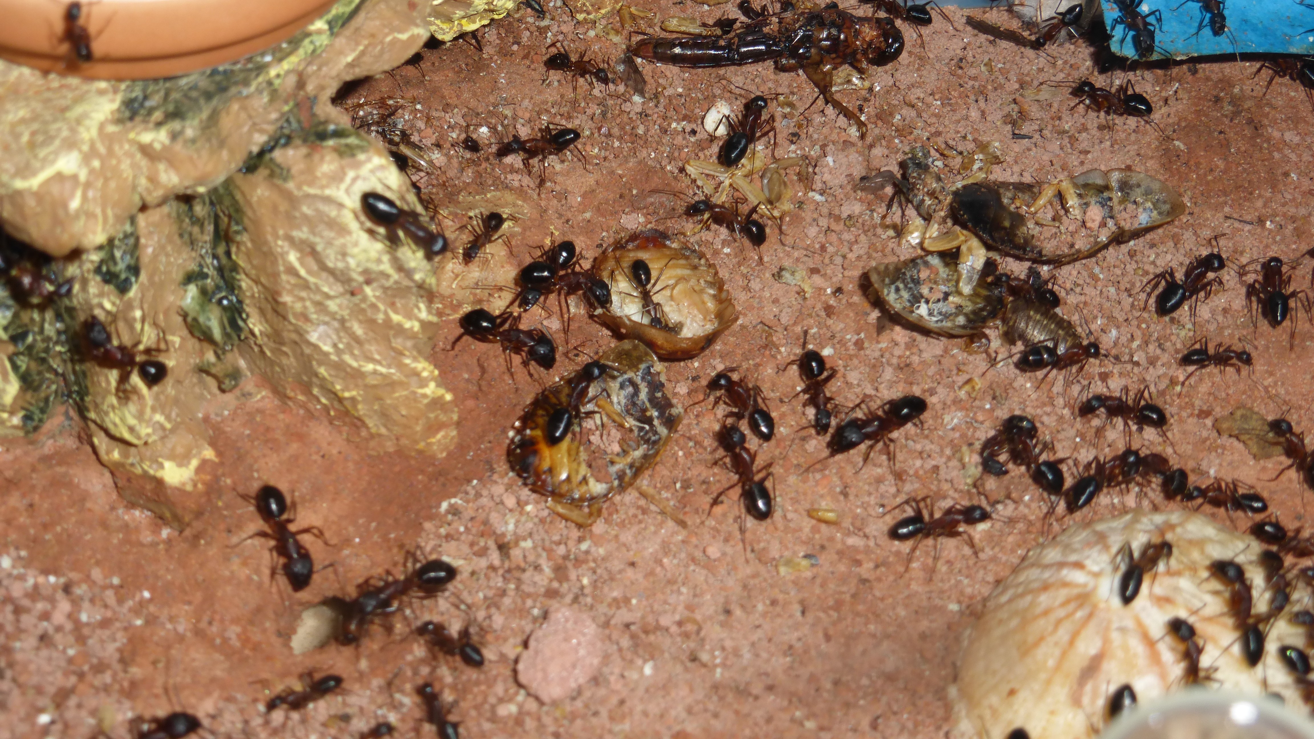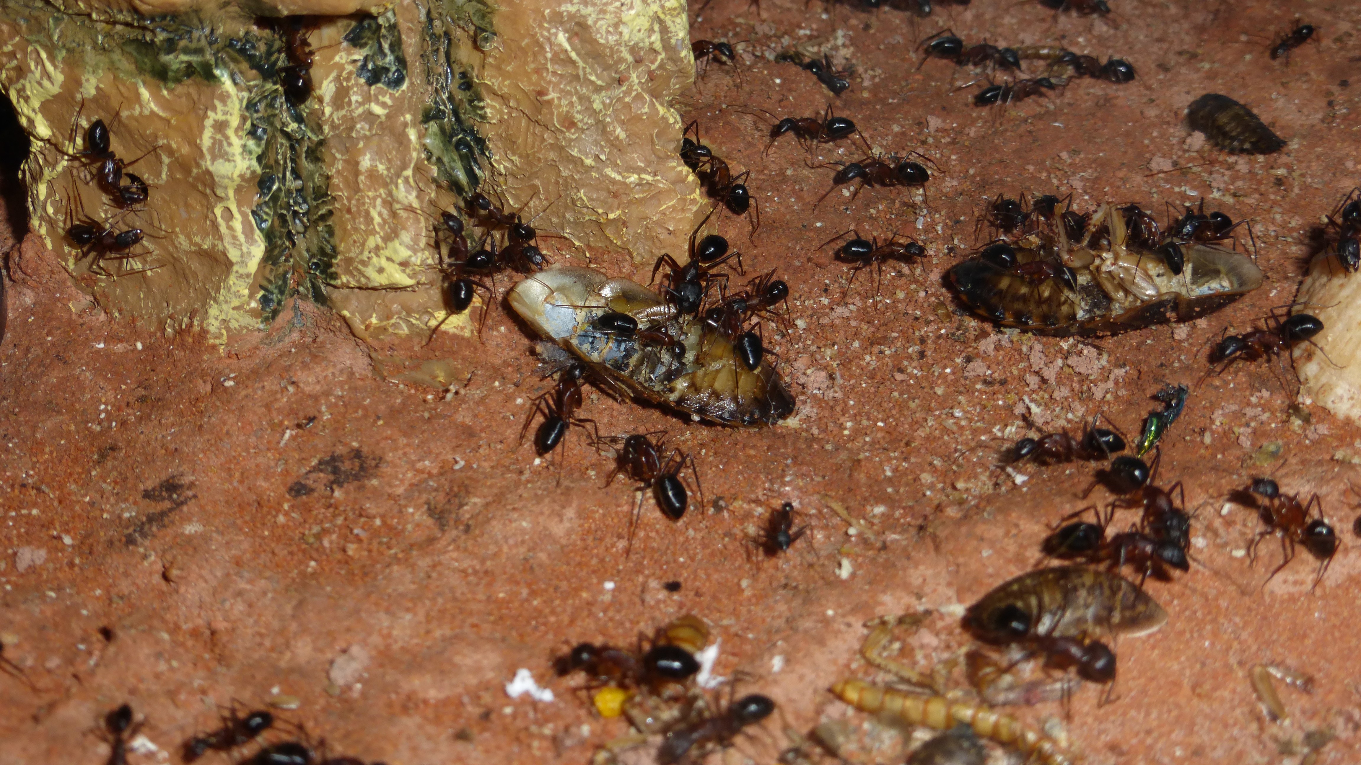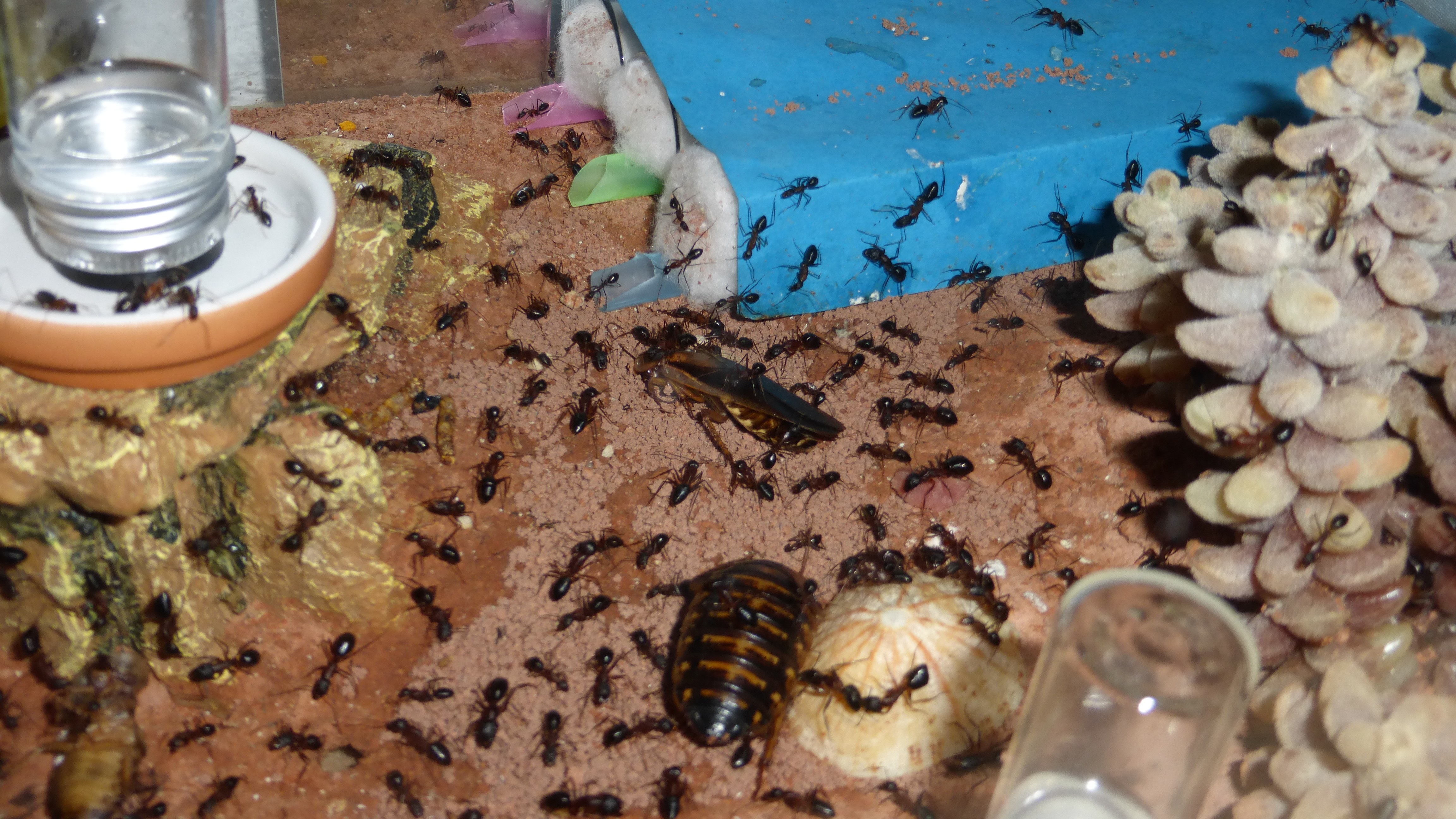 Sie fangen an den Appetit der Ameisen zu überflügeln, wobei die Ameisen in letzter Zeit doch wieder deutlich hungriger geworden sind (sie essen so 5-6 größere Schaben pro Tag, wobei sie die ganz großen nicht sonderlich mögen).