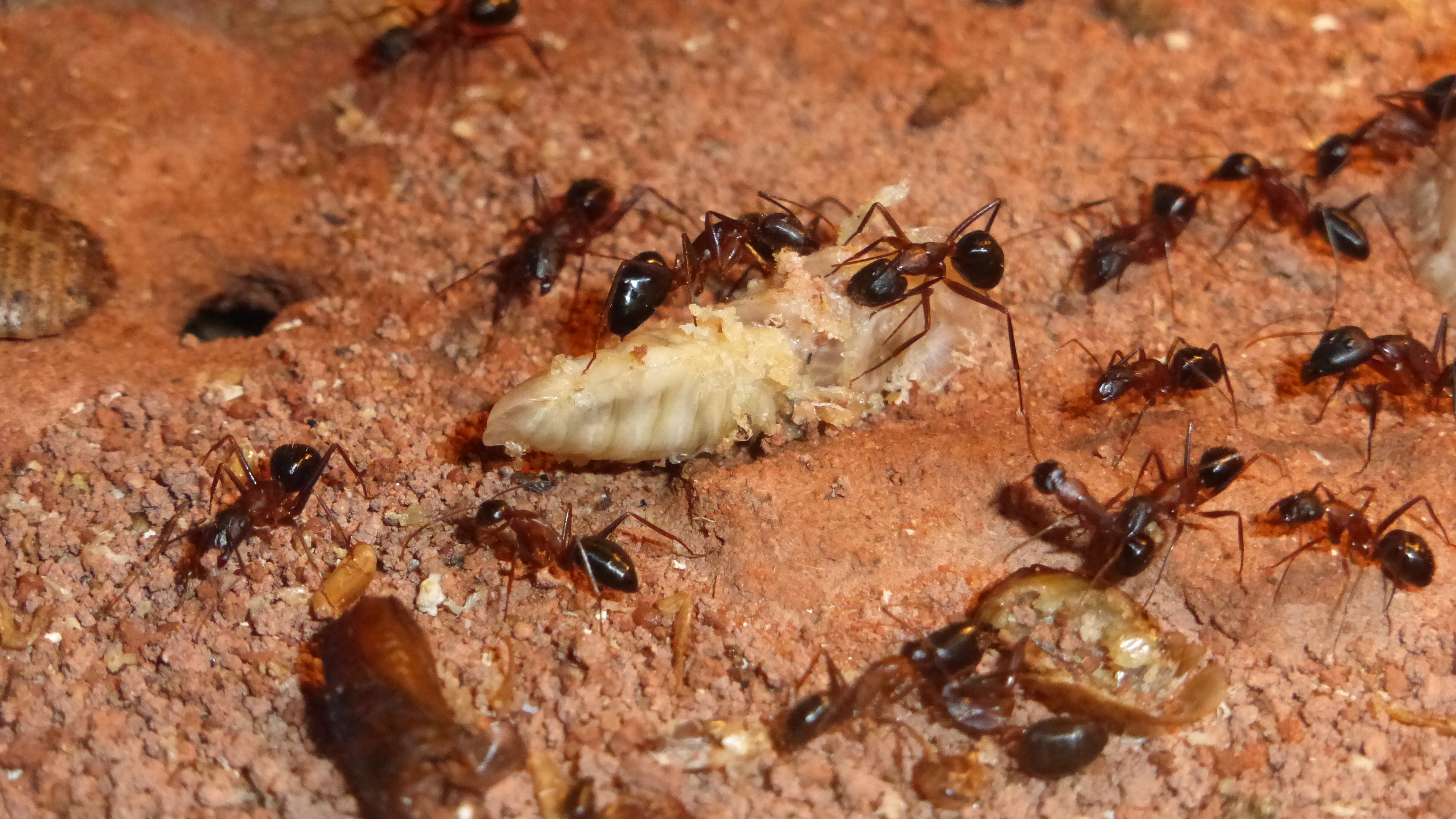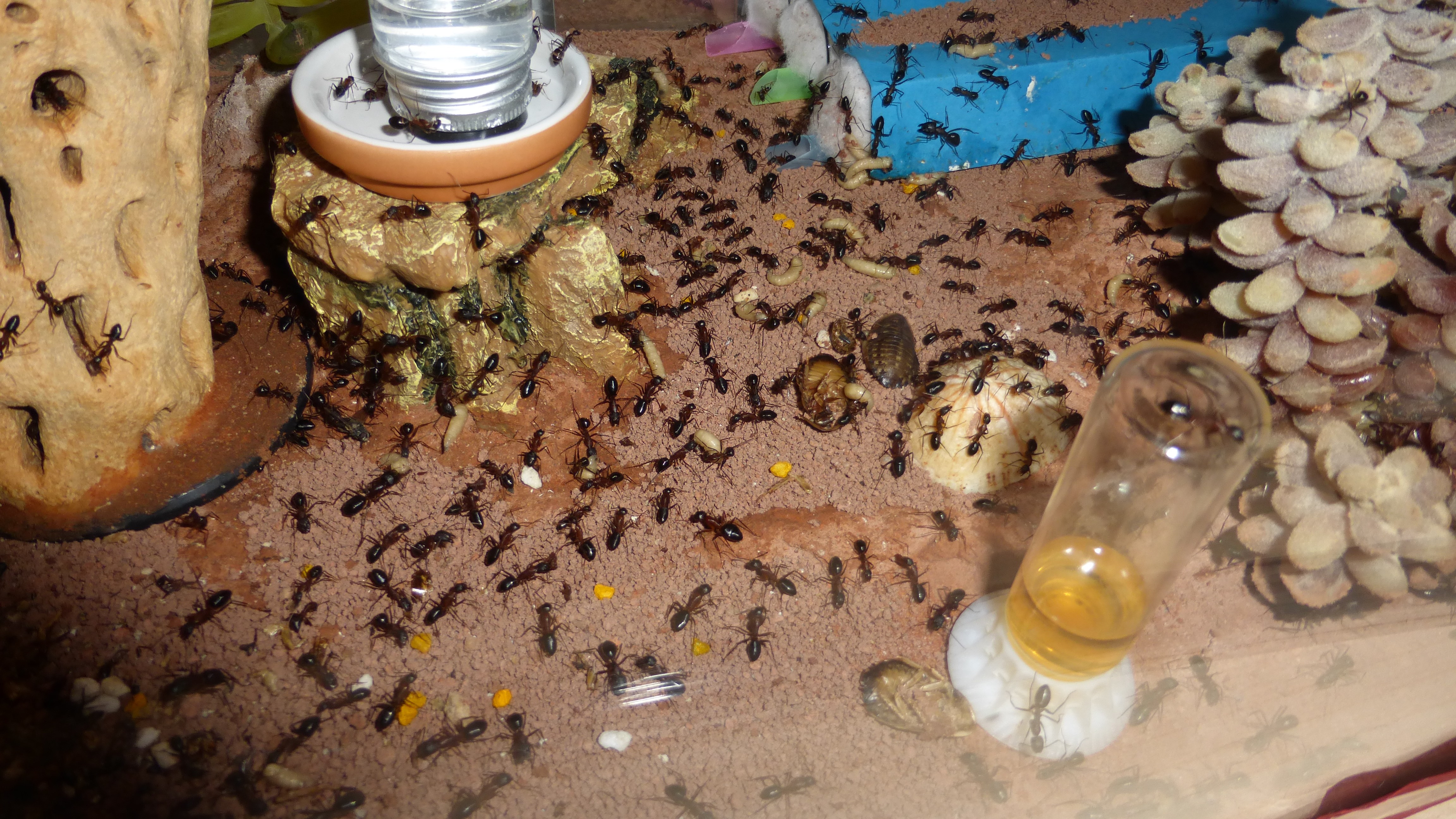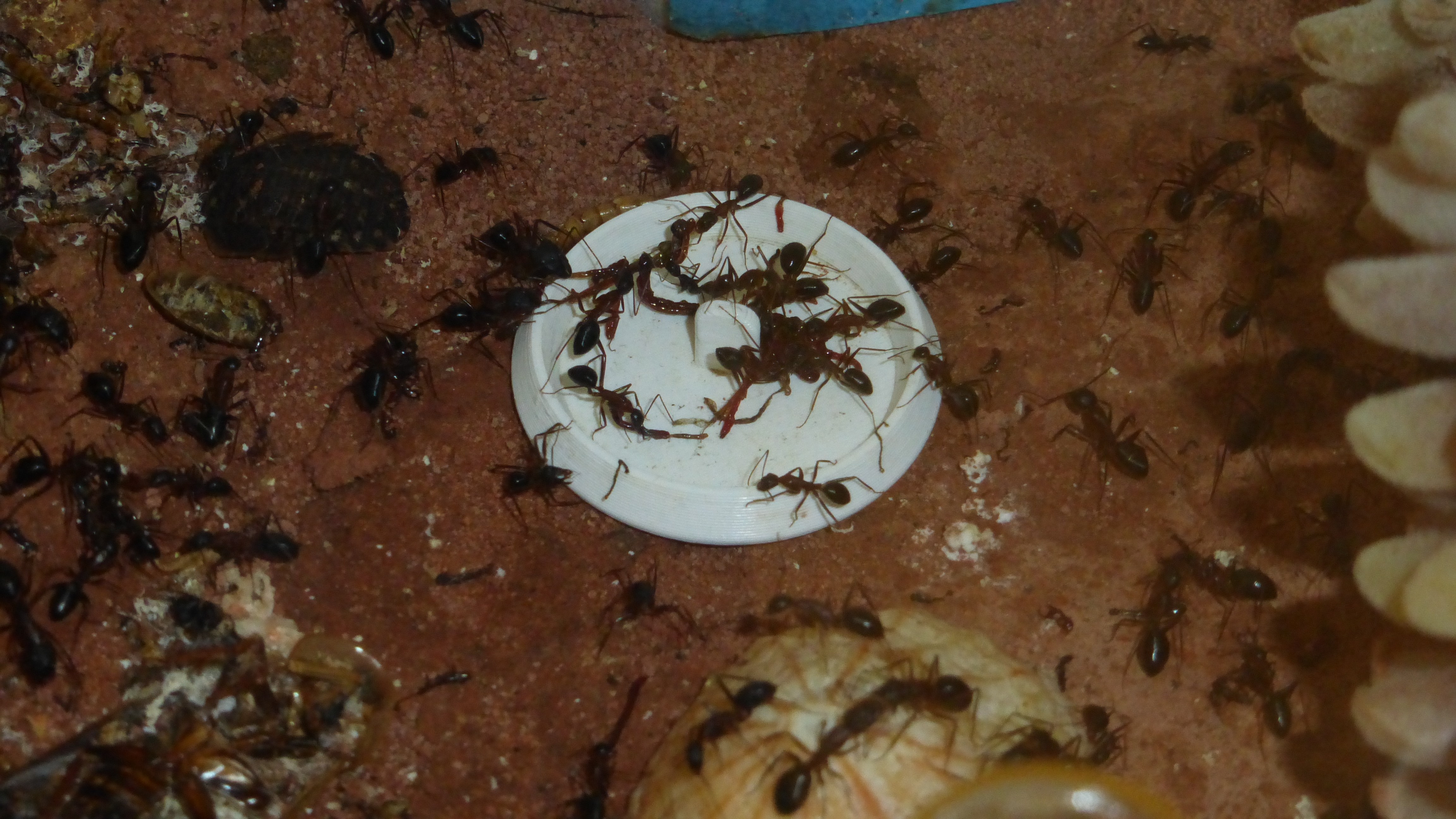 Sie fangen an den Appetit der Ameisen zu überflügeln, wobei die Ameisen in letzter Zeit doch wieder deutlich hungriger geworden sind (sie essen so 5-6 größere Schaben pro Tag, wobei sie die ganz großen nicht sonderlich mögen).