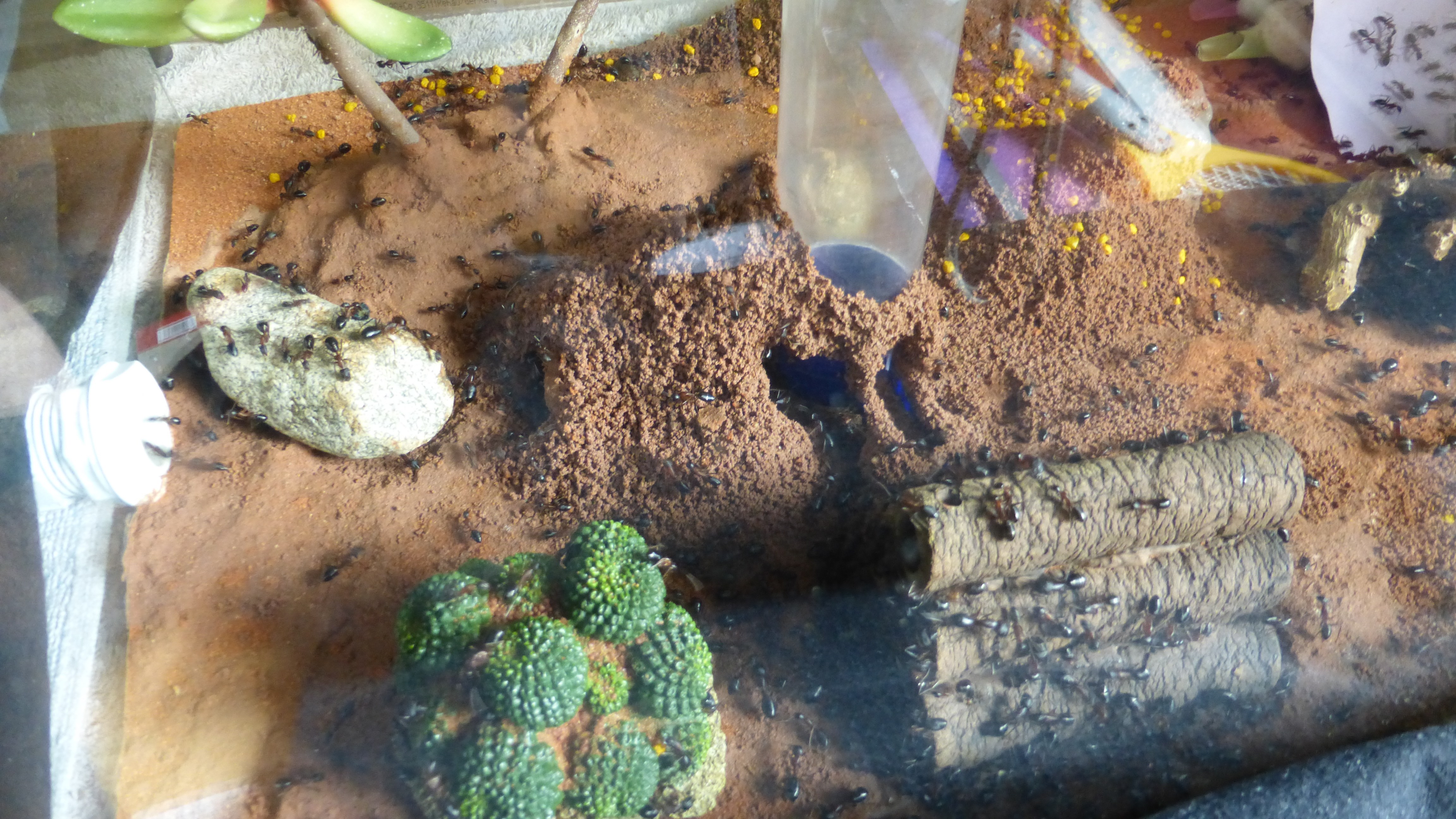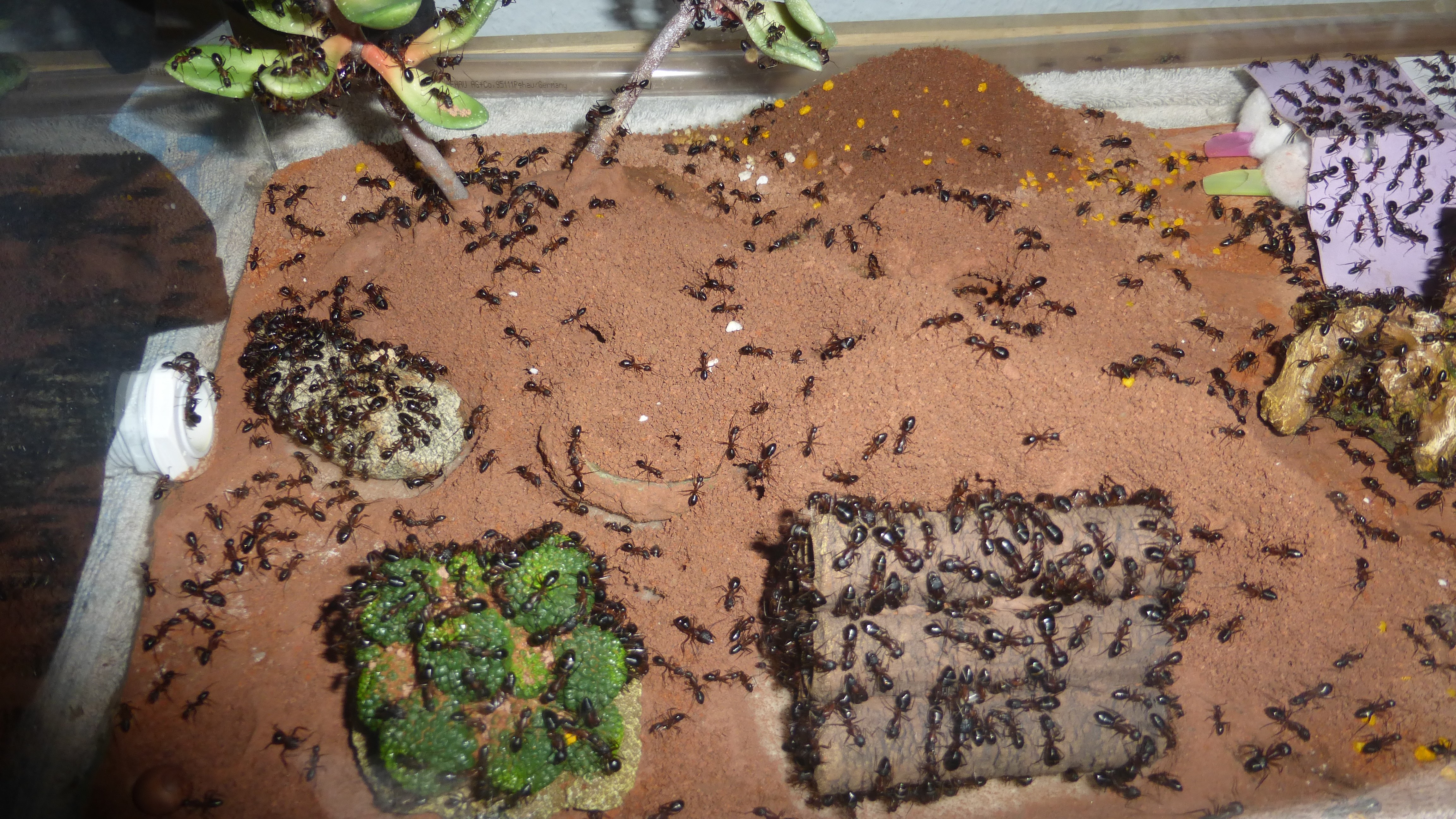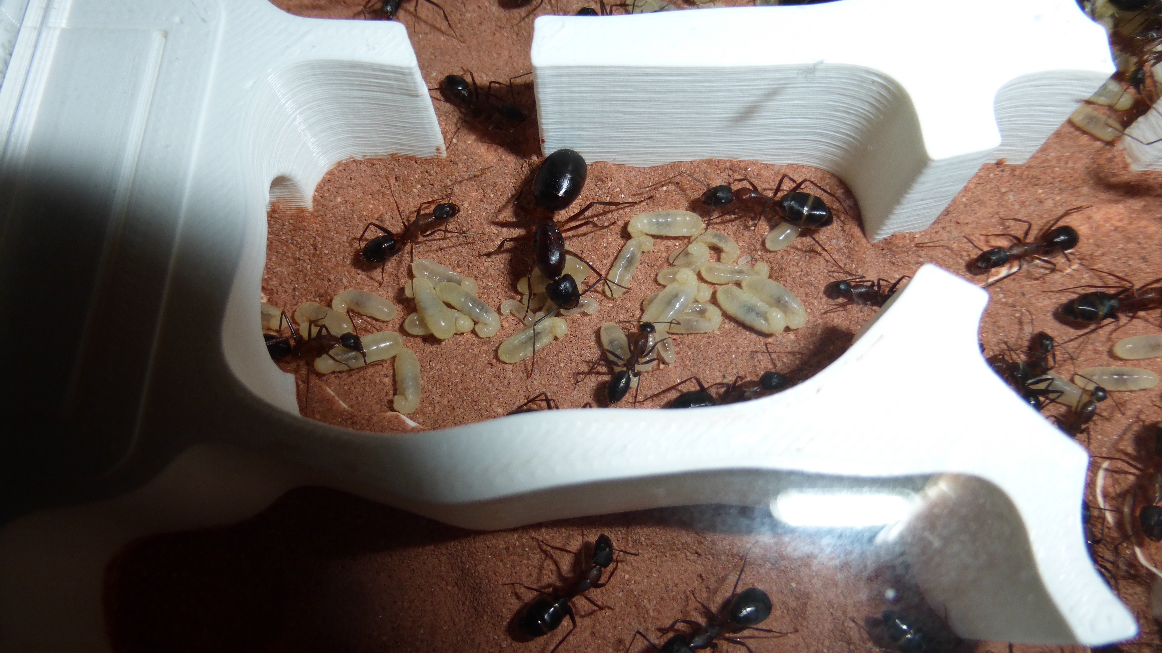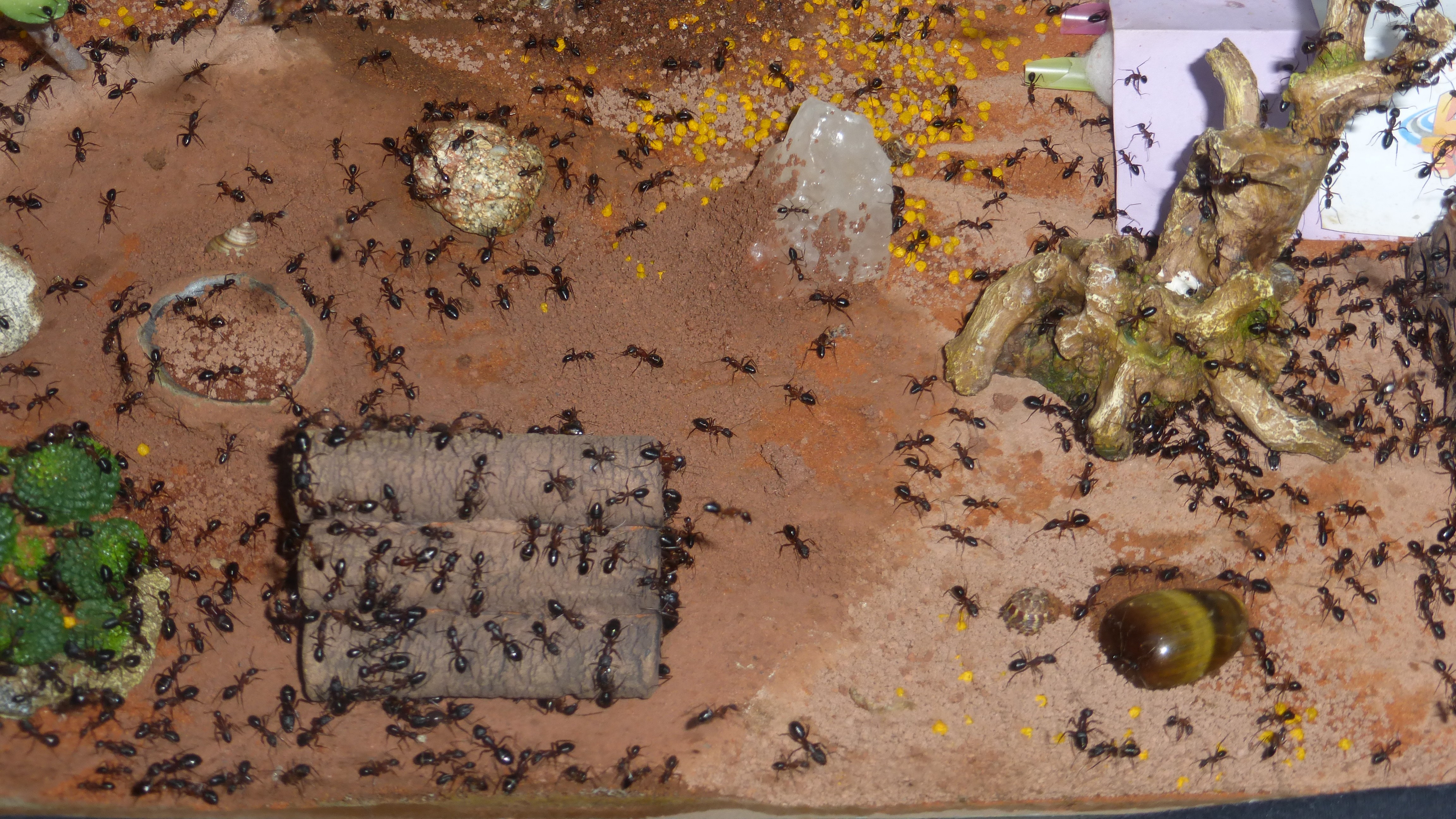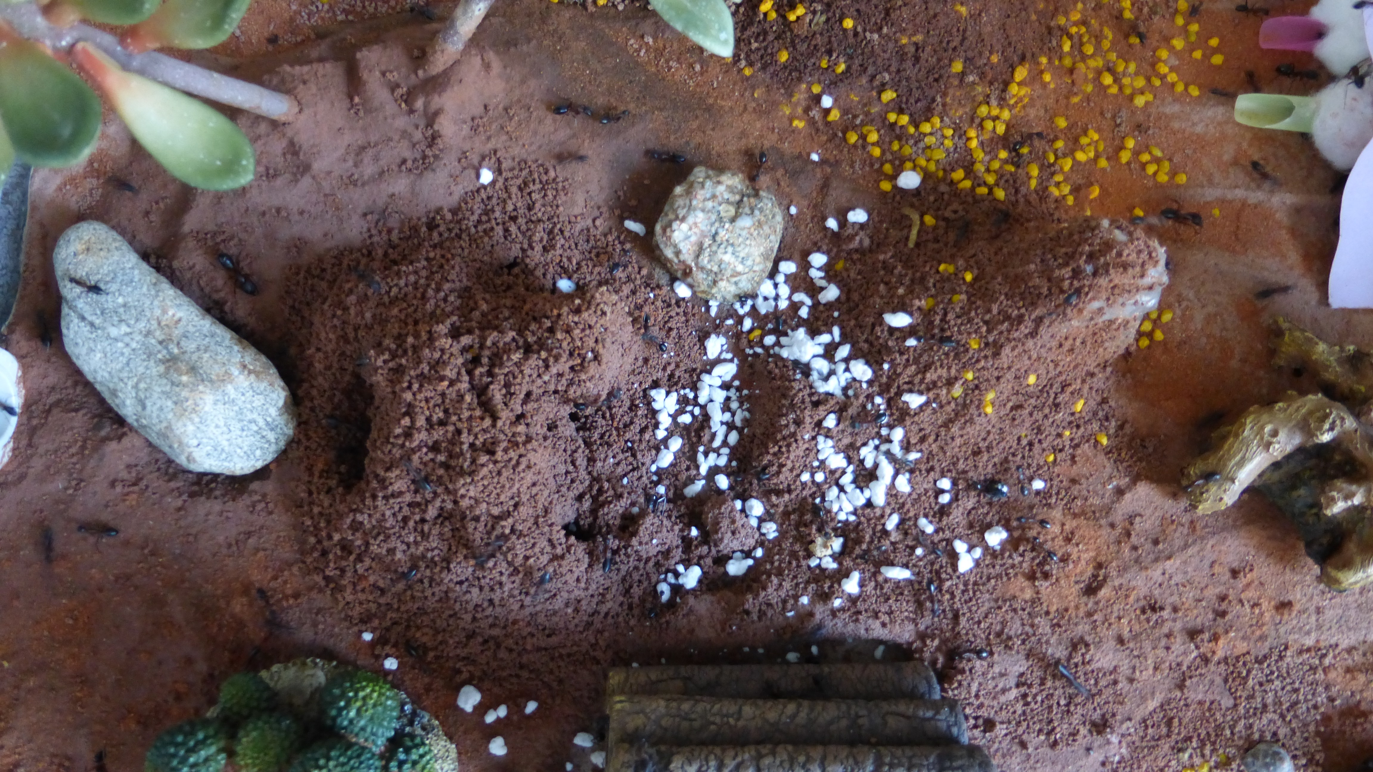 Die andere Box hat ein paar frische RGs bekommen. Es halten sich recht viele Ameisen drin auf, die man aber nicht sehen kann weil sie alle an der Zimmerwandseite sitzen.