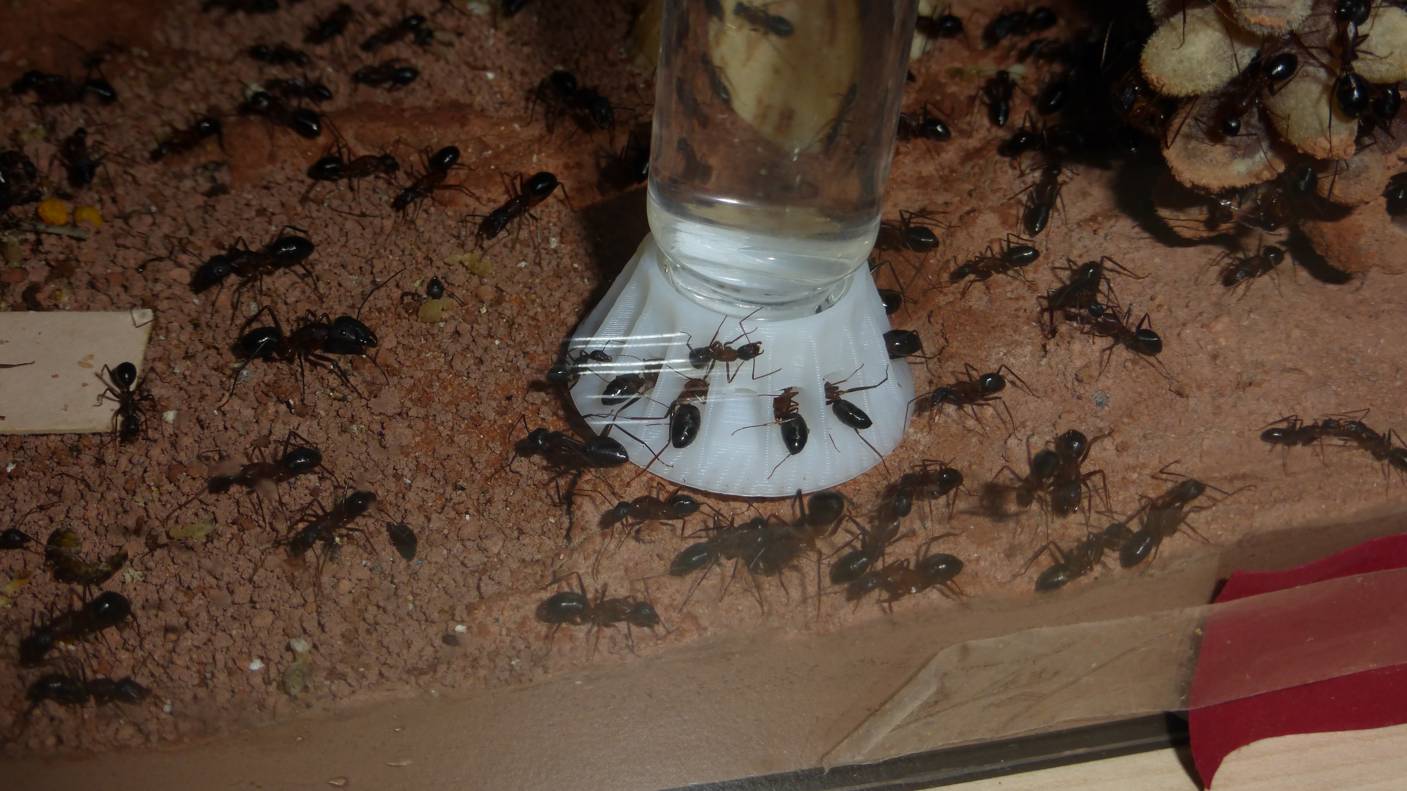 Interessanterweise sind an der Fläschchentränke oft weniger Ameisen, aber sie wird trotzdem schneller leer als die BYfromicatränke.