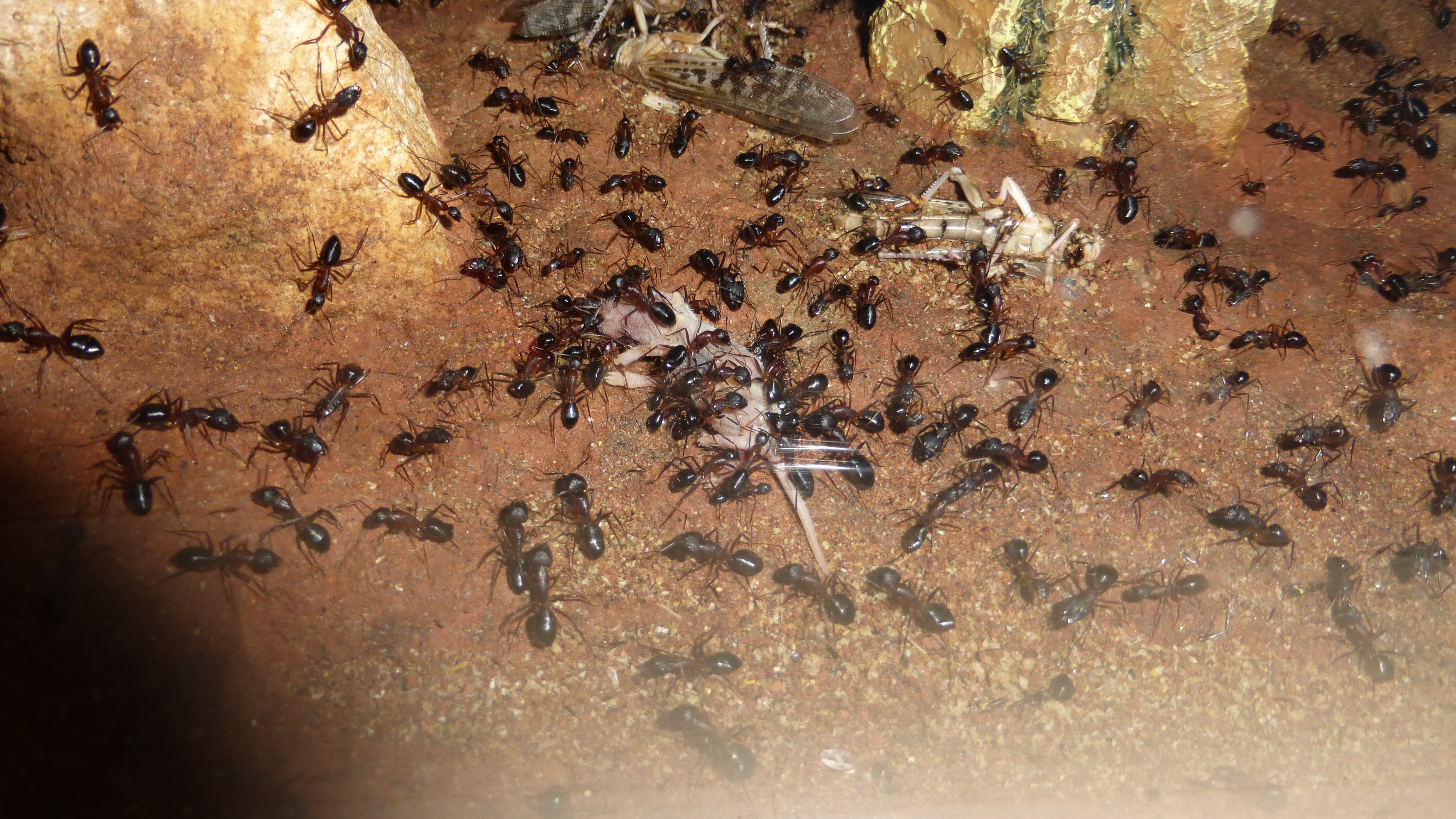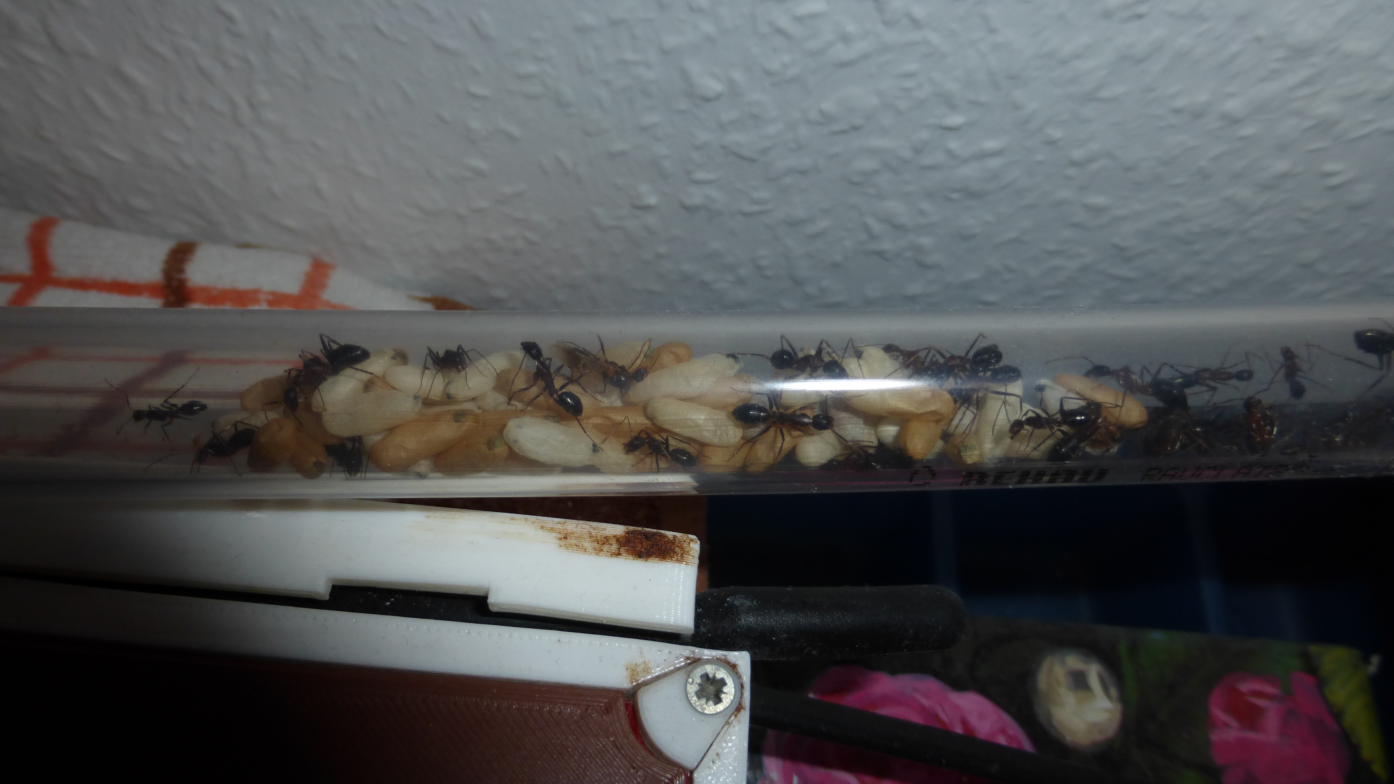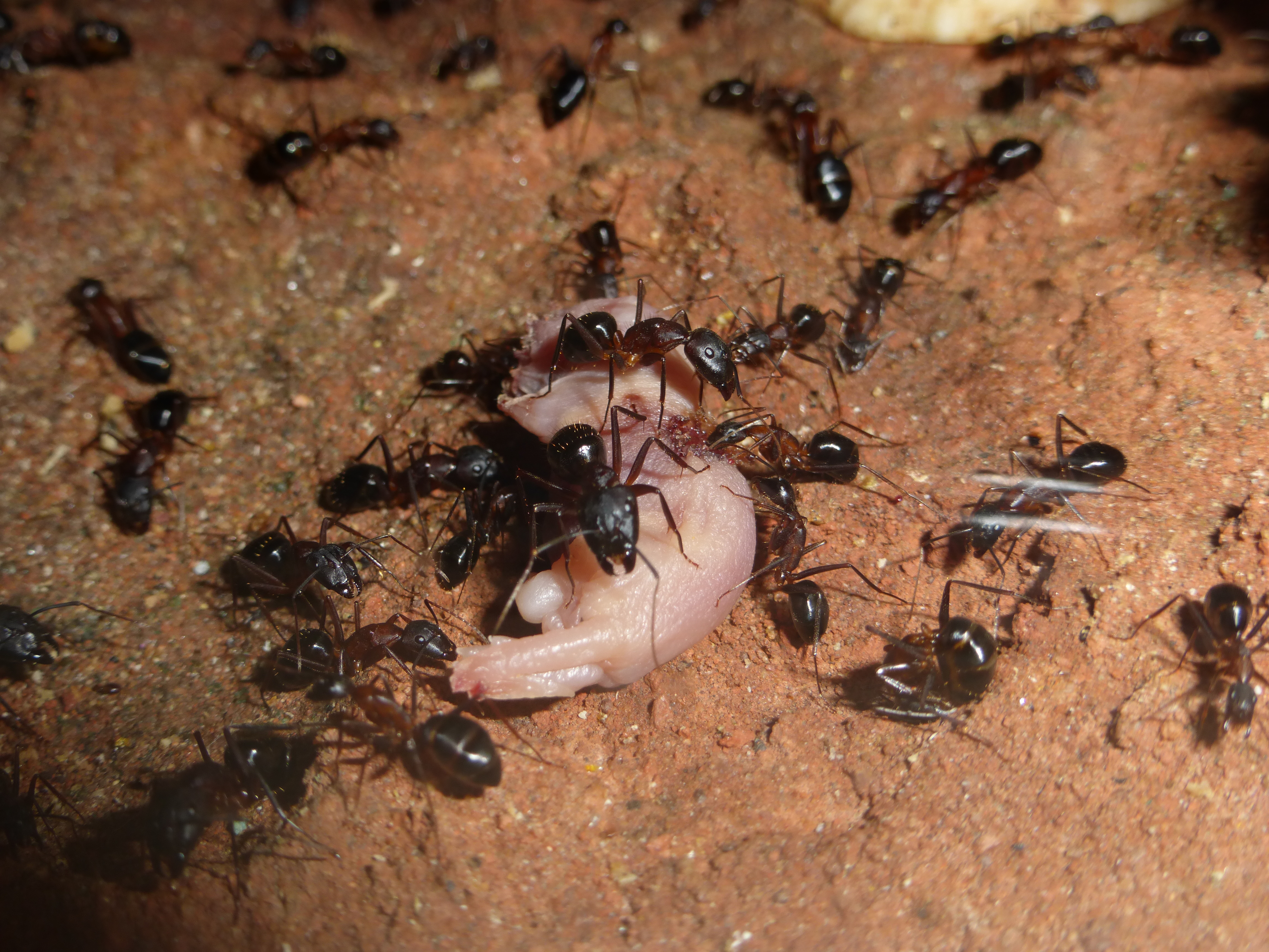 Larven sind zwar noch im Wintermodus, aber die Arbeiterinnen verwerten eine Maus jetzt innerhalb von 2-3 Tagen.
