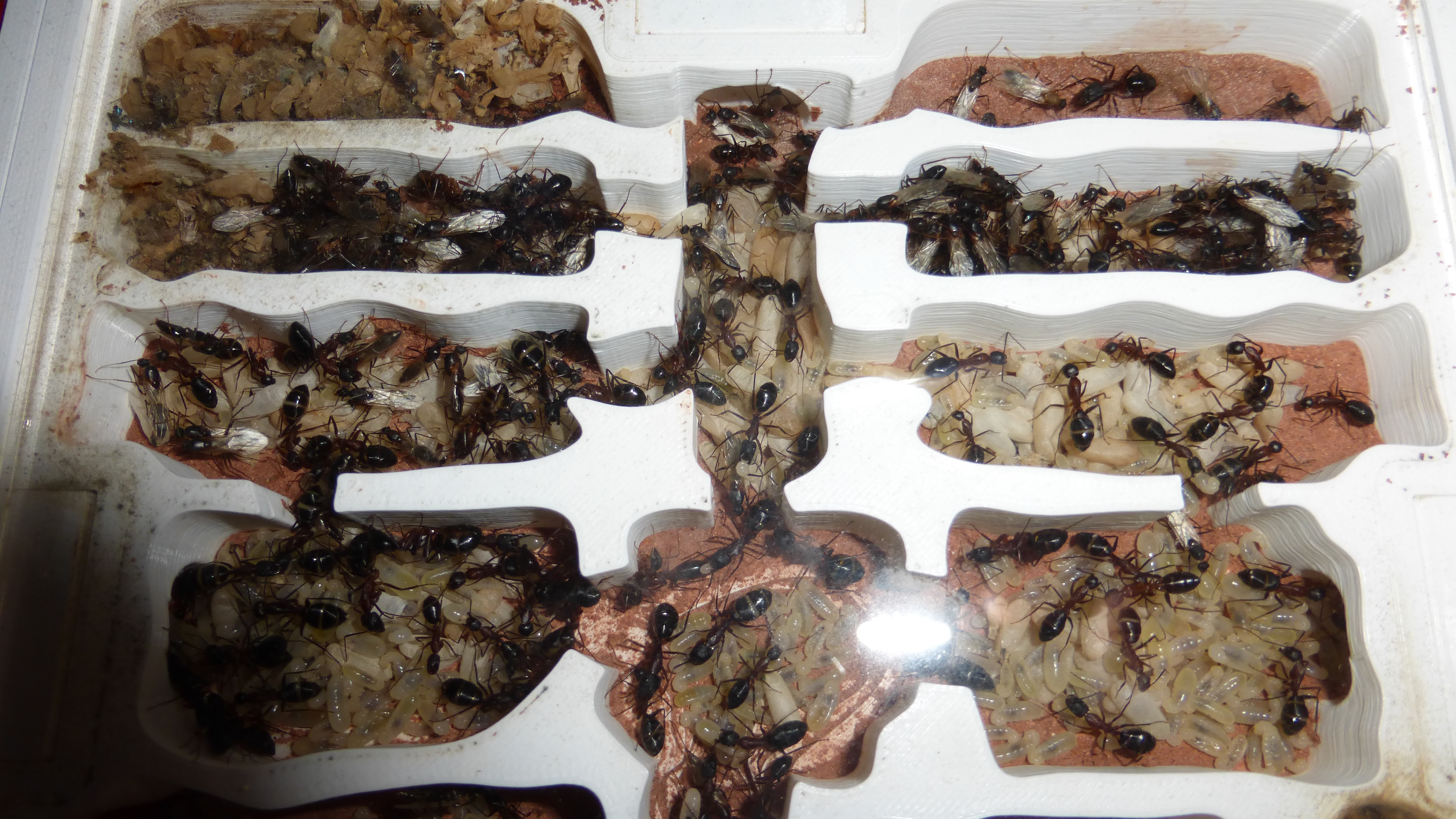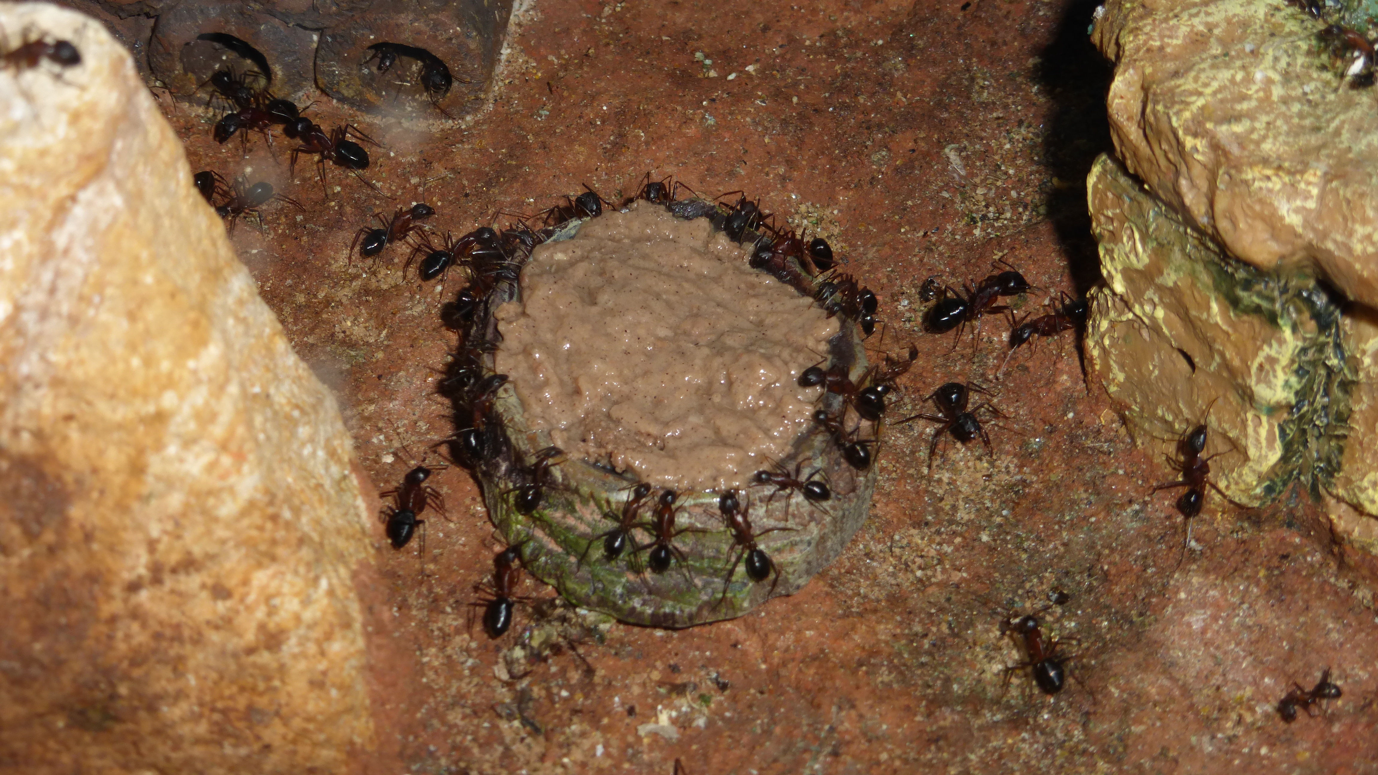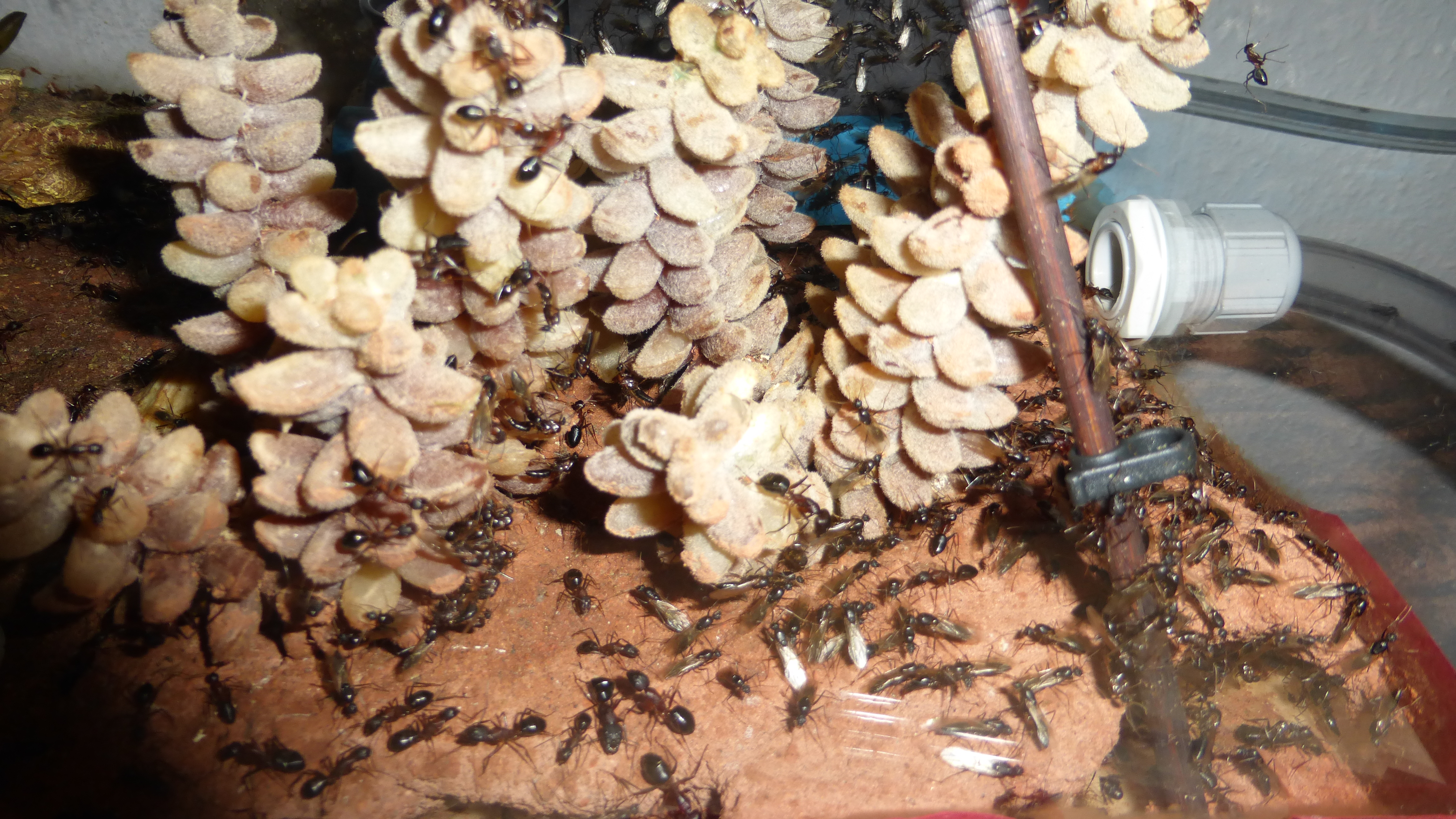 Larven sind zwar noch im Wintermodus, aber die Arbeiterinnen verwerten eine Maus jetzt innerhalb von 2-3 Tagen.